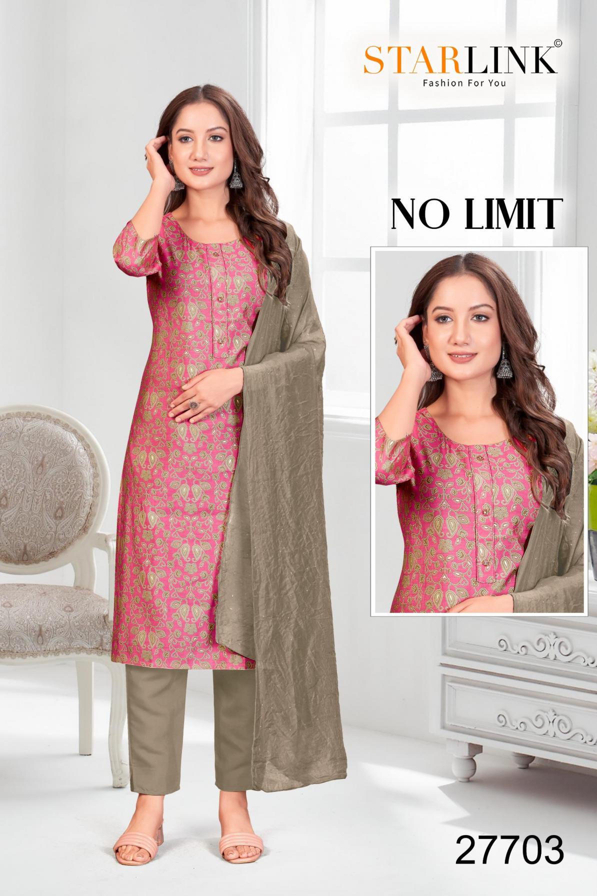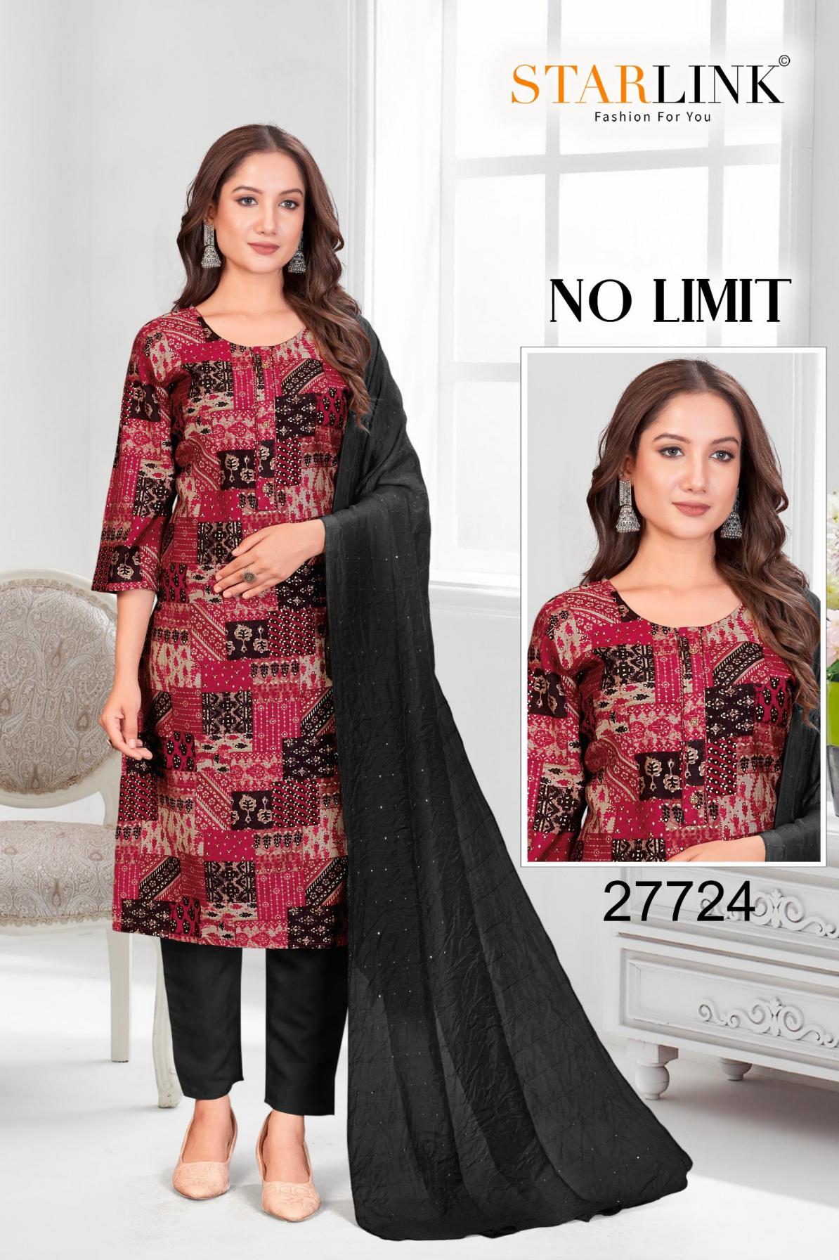 Looking for STARLINK 27701-27725 MODAL FOIL PRINT FULL STITCH STYLISH COMBO SUIT FOR WOMENS Full Catalouge at Best Price? Buy Now STARLINK 27701-27725 MODAL FOIL PRINT FULL STITCH STYLISH COMBO SUIT FOR WOMENS at Wholesale Rate of Rs 42240 with Total 96 Pcs from authroized dealer and supplier of Starlink Brand. Cost of Each piece is just only Rs 440 which is very low and affordable price to resale the product in your retail store. rrgandhi is Surat based Wholesale Supplier & Dealer of Starlink Brand. Click on Brand name to Know more about Brand's products.