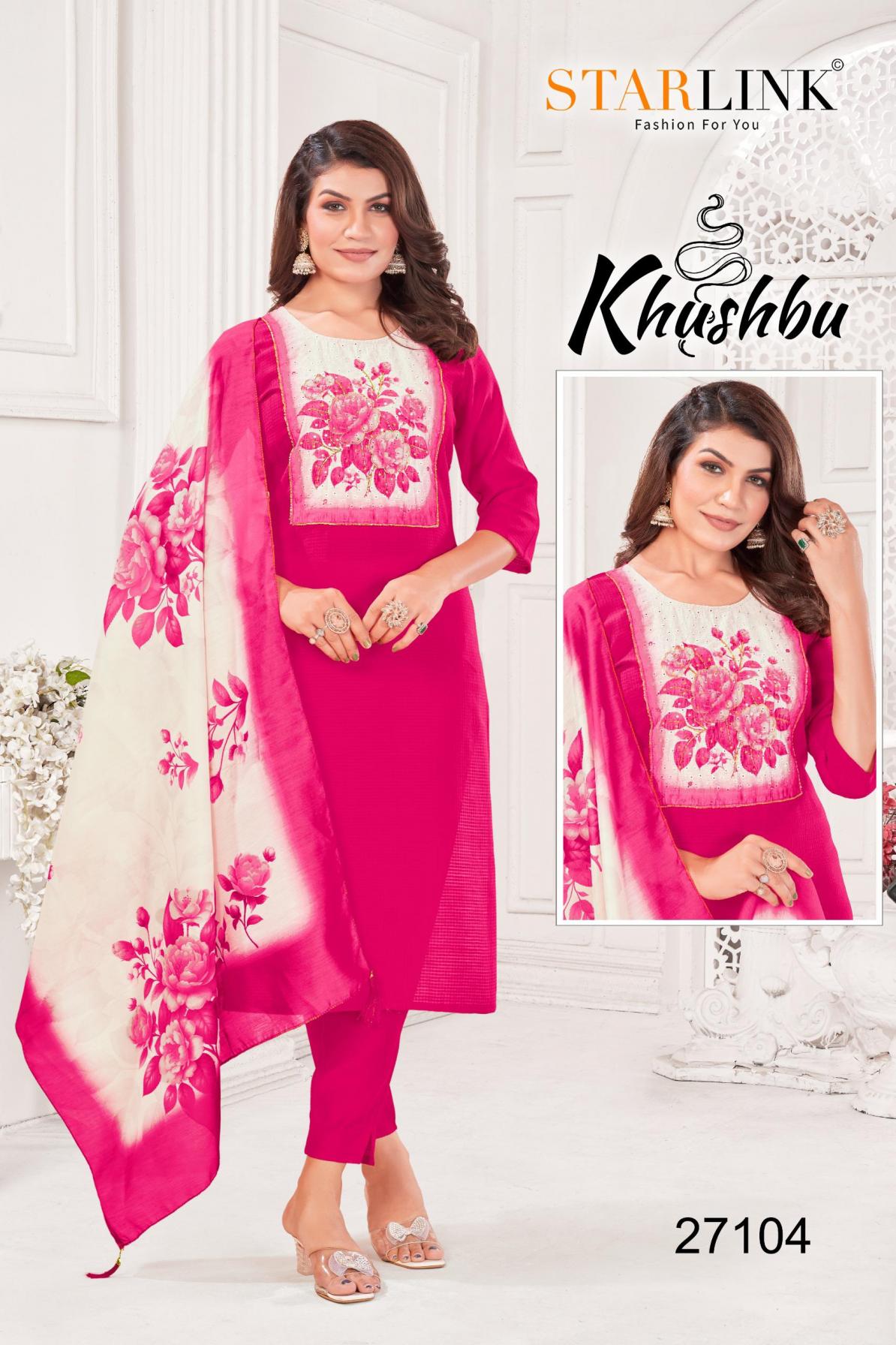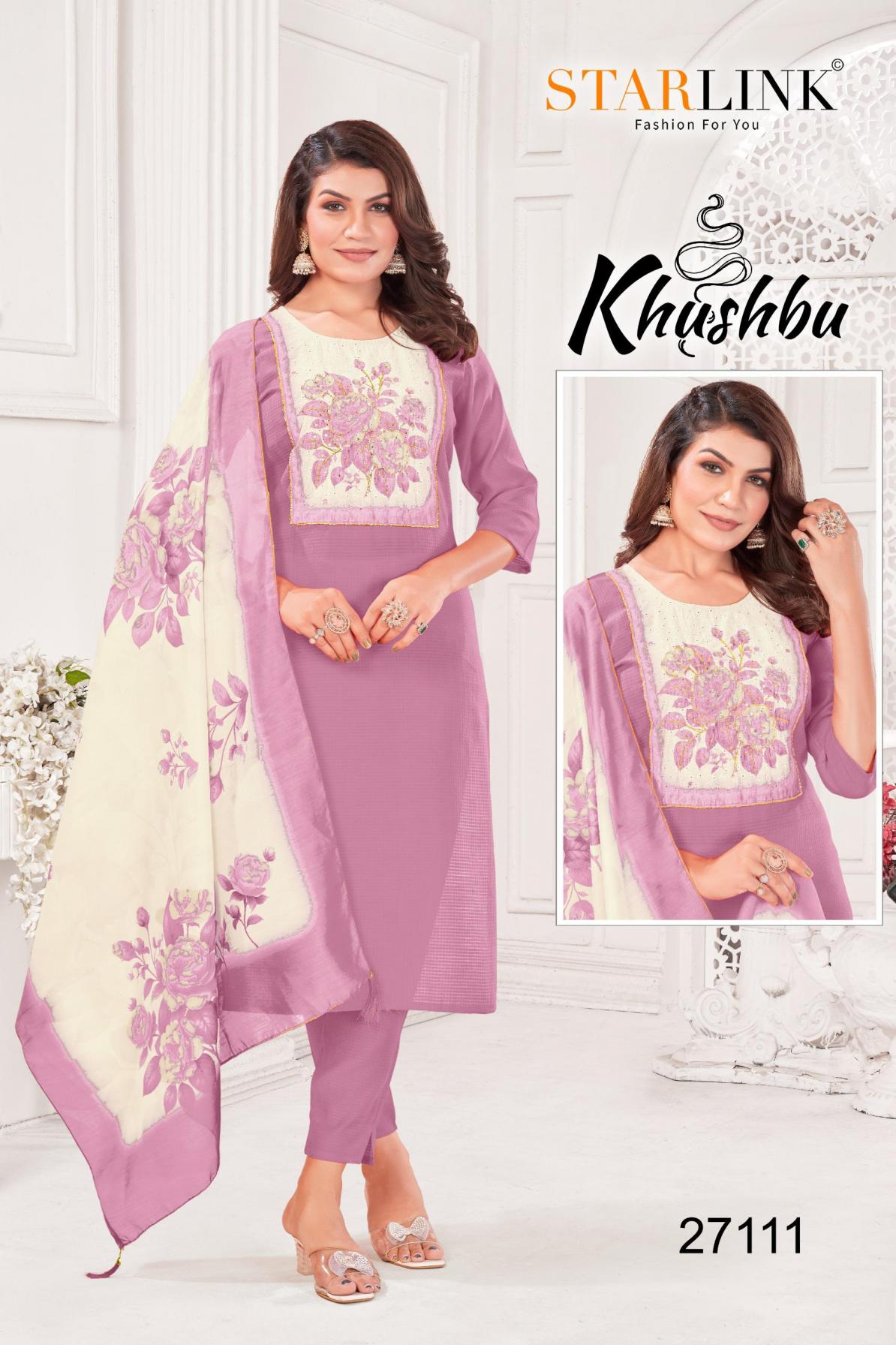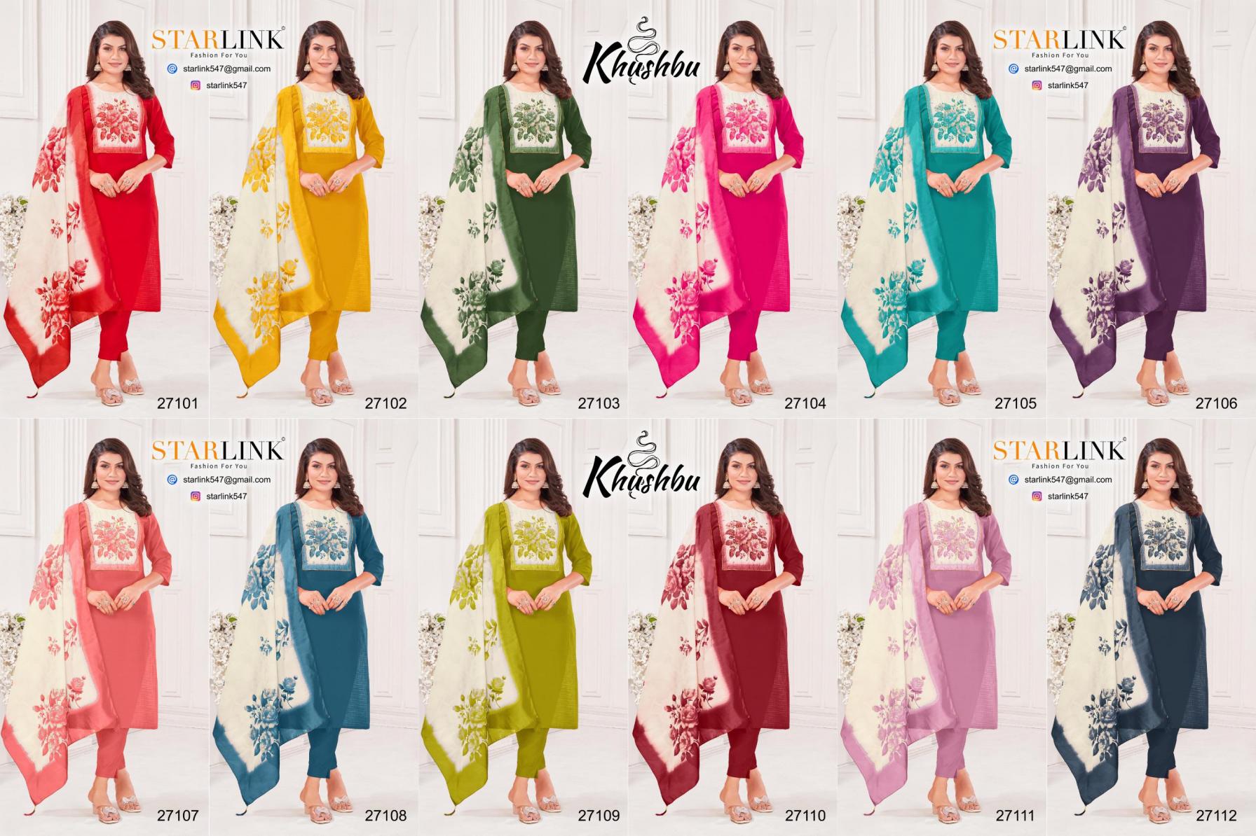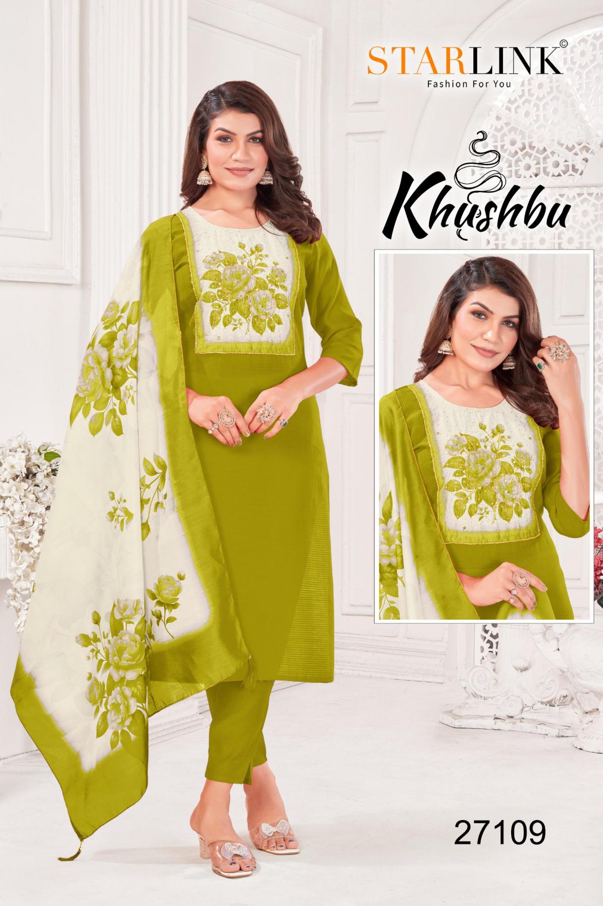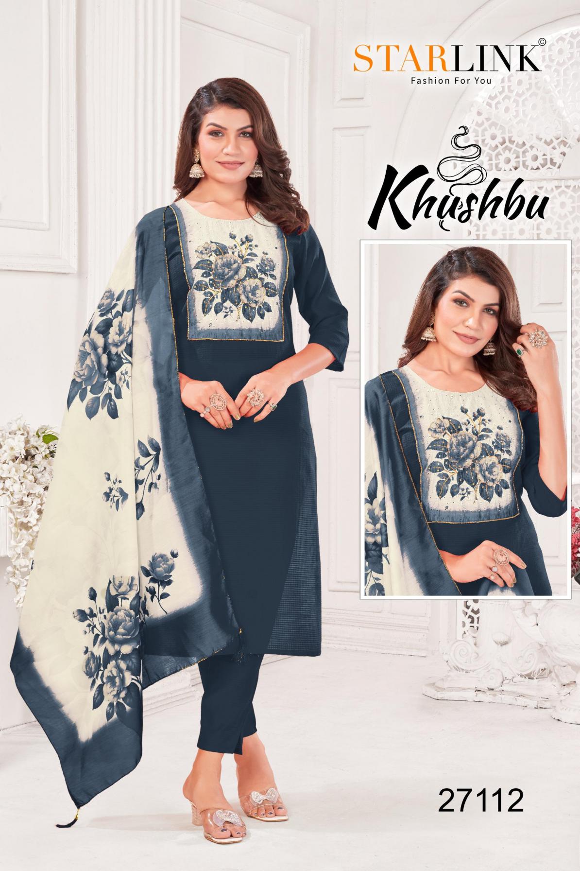 Looking for STARLINK KHUSHBU FULL STITCH BURLIN PETTERN COMBO 3PCS DRESS Full Catalouge at Best Price? Buy Now STARLINK KHUSHBU FULL STITCH BURLIN PETTERN COMBO 3PCS DRESS at Wholesale Rate of Rs 47940 with Total 60 Pcs from authroized dealer and supplier of Starlink Brand. Cost of Each piece is just only Rs 799 which is very low and affordable price to resale the product in your retail store. rrgandhi is Surat based Wholesale Supplier & Dealer of Starlink Brand. Click on Brand name to Know more about Brand's products.