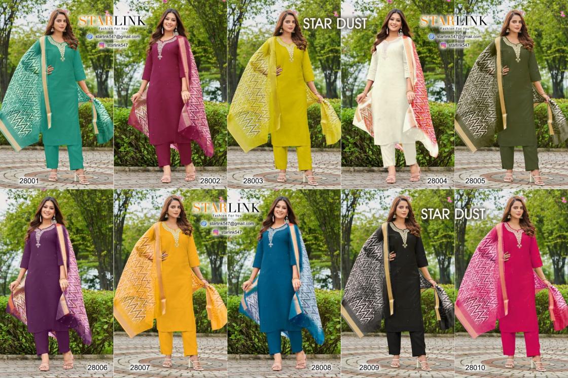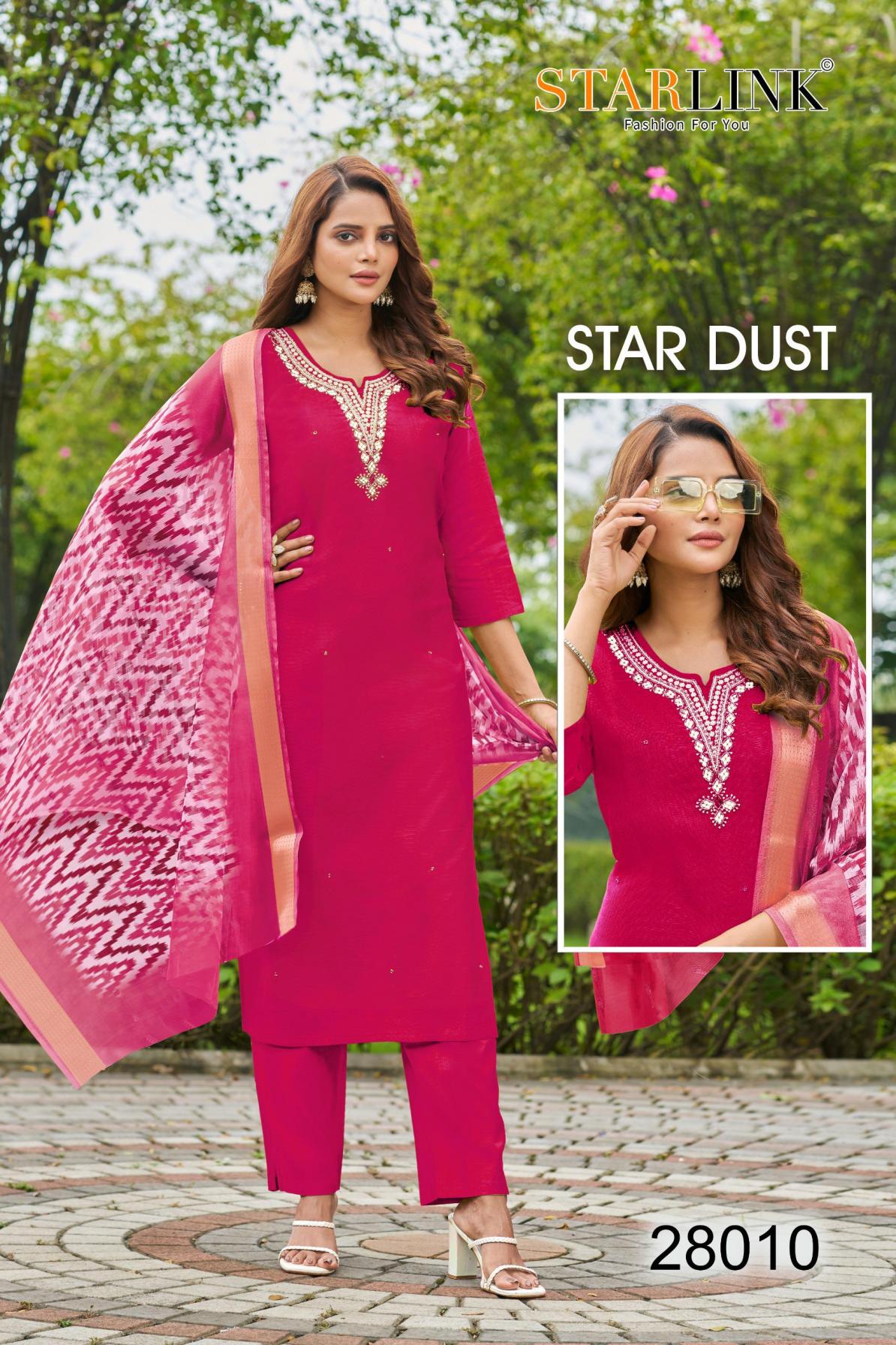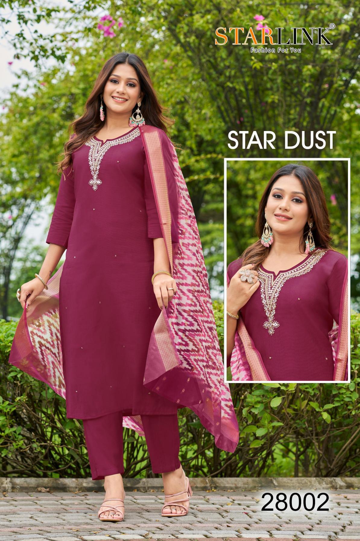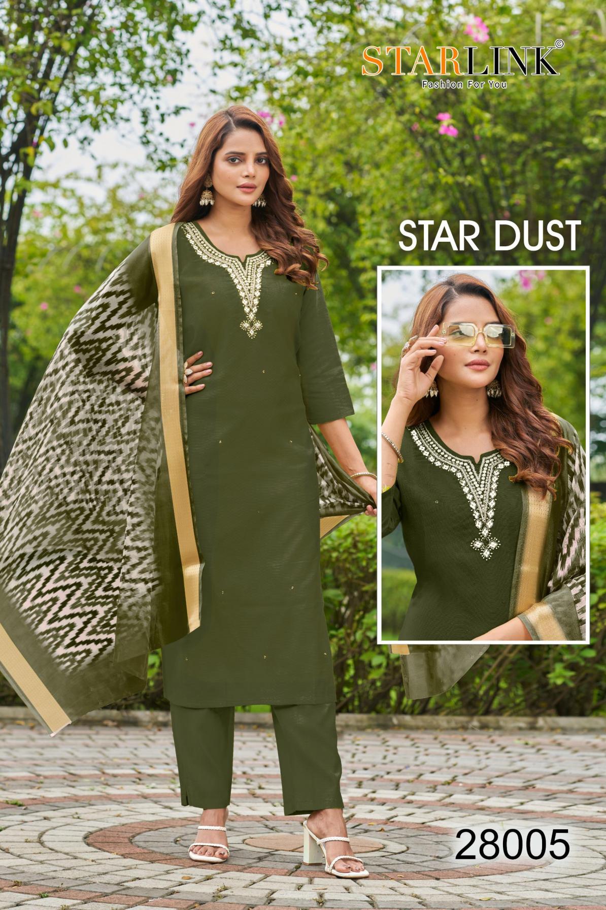 Looking for STARLINK STAR DUST VATRICAN DYED FULLY STITCH CLASSIC COMBO SUITS Full Catalouge at Best Price? Buy Now STARLINK STAR DUST VATRICAN DYED FULLY STITCH CLASSIC COMBO SUITS at Wholesale Rate of Rs 48250 with Total 50 Pcs from authroized dealer and supplier of Starlink Brand. Cost of Each piece is just only Rs 965 which is very low and affordable price to resale the product in your retail store. rrgandhi is Surat based Wholesale Supplier & Dealer of Starlink Brand. Click on Brand name to Know more about Brand's products.