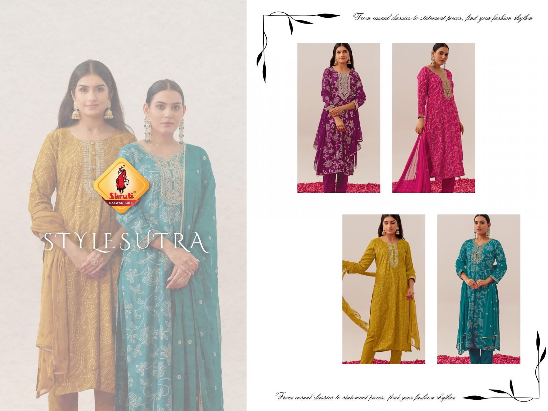 Looking for STYLES UTRA BY SHRUTI READYMADE PRETTY VISCOSE VATICAN SILK 3PCS DRESS Full Catalouge at Best Price? Buy Now STYLES UTRA BY SHRUTI READYMADE PRETTY VISCOSE VATICAN SILK 3PCS DRESS at Wholesale Rate of Rs 3560 with Total 4 Pcs from authroized dealer and supplier of Shruti Brand. Cost of Each piece is just only Rs 890 which is very low and affordable price to resale the product in your retail store. rrgandhi is Surat based Wholesale Supplier & Dealer of Shruti Brand. Click on Brand name to Know more about Brand's products.