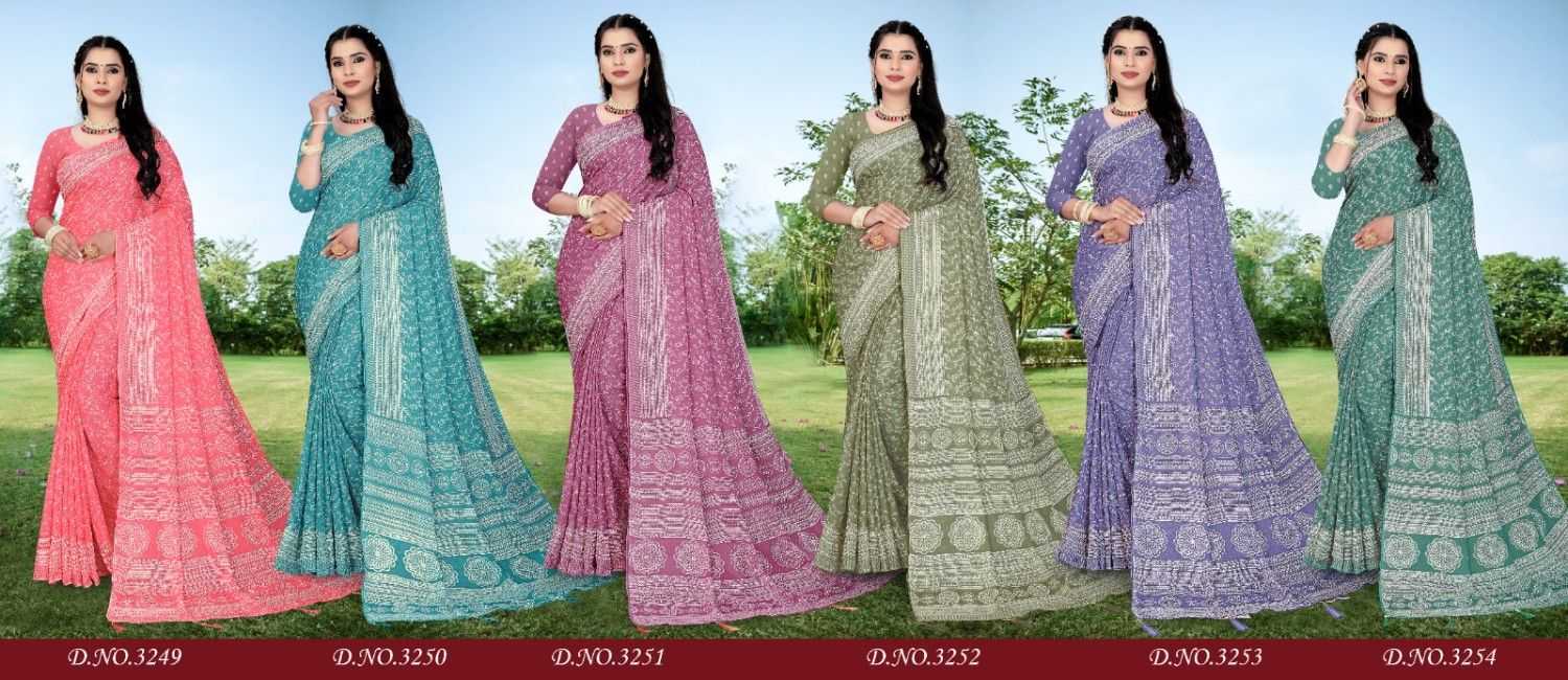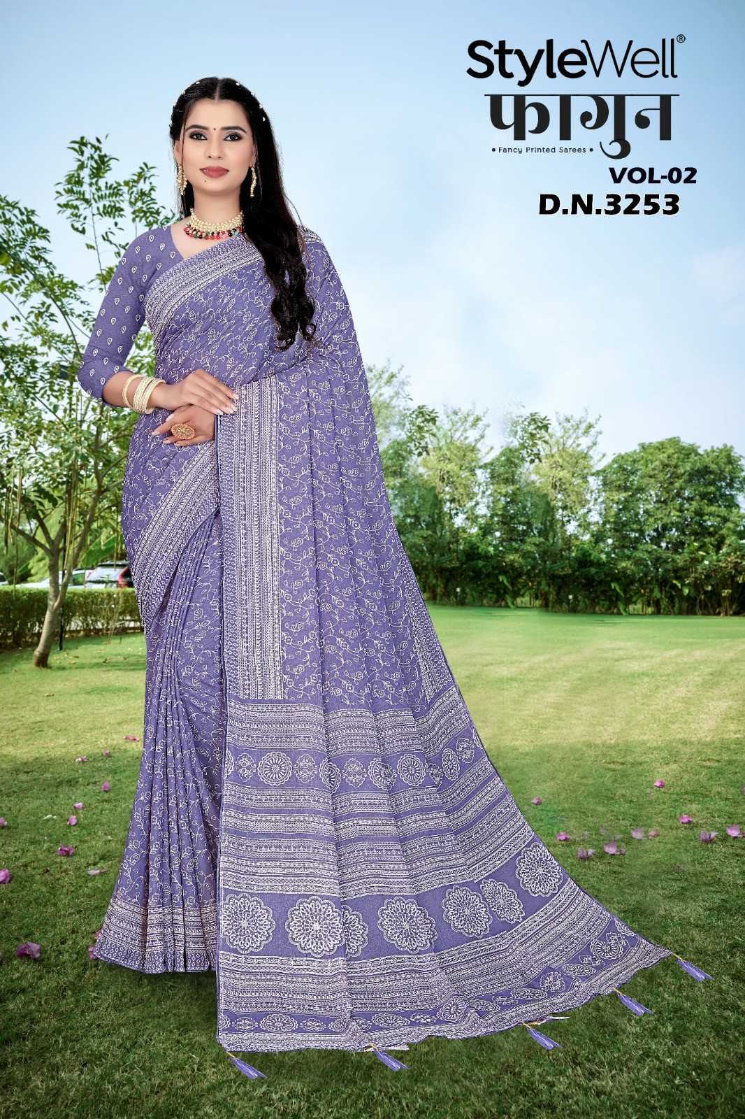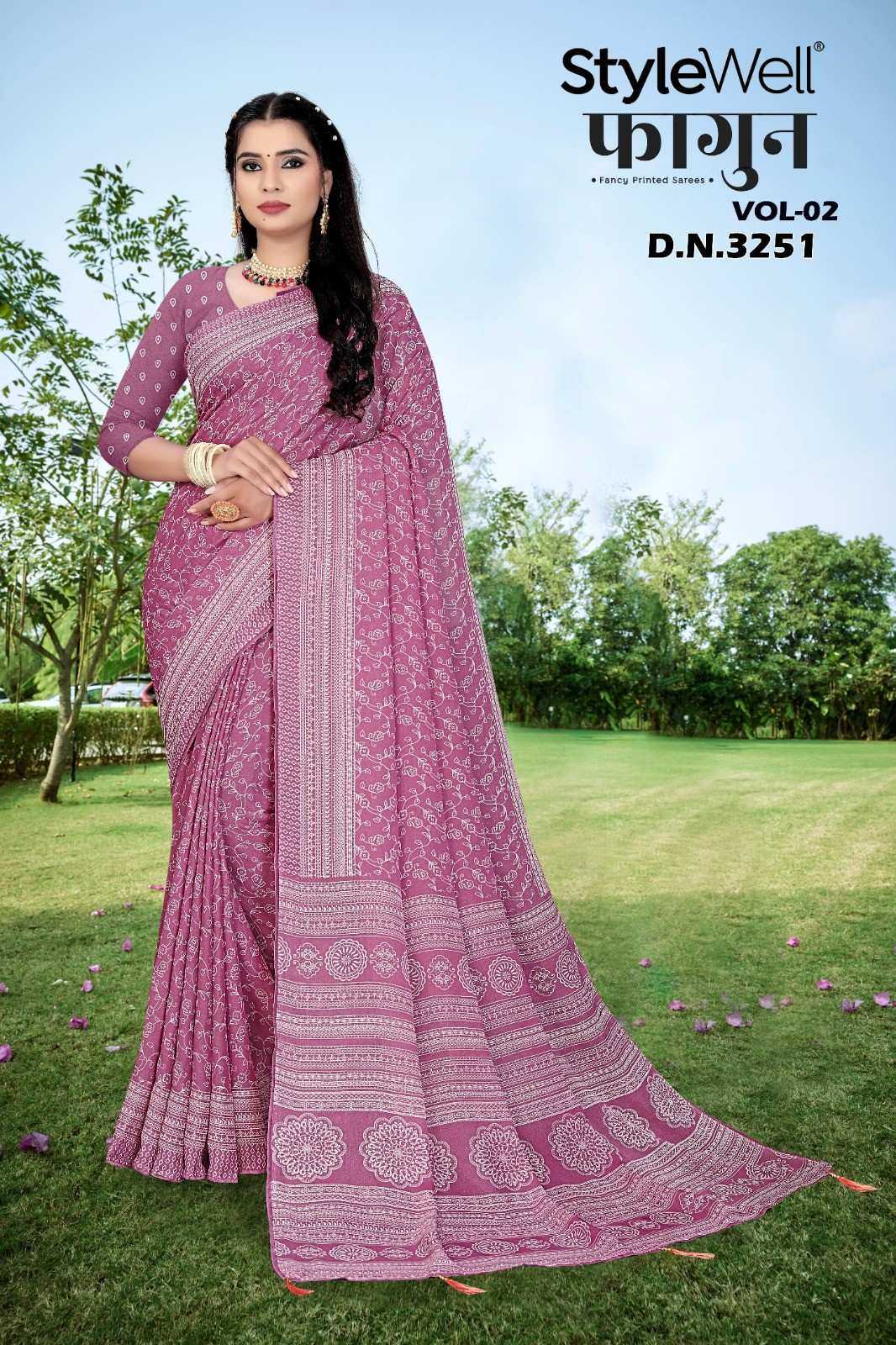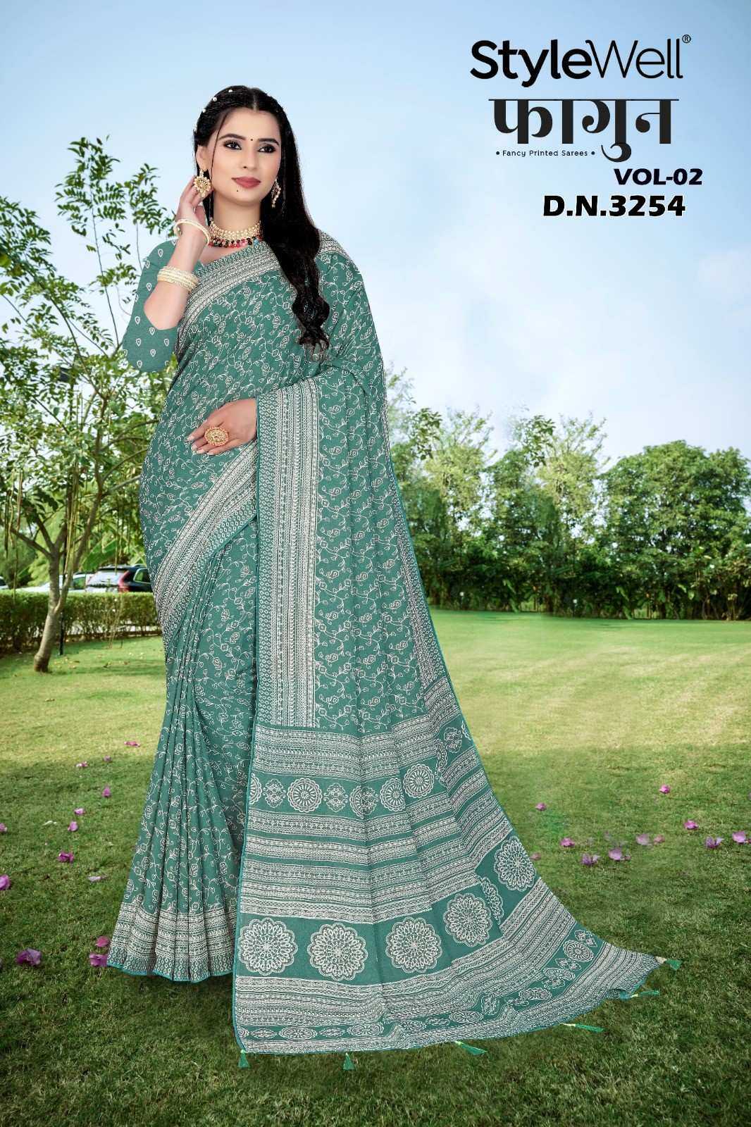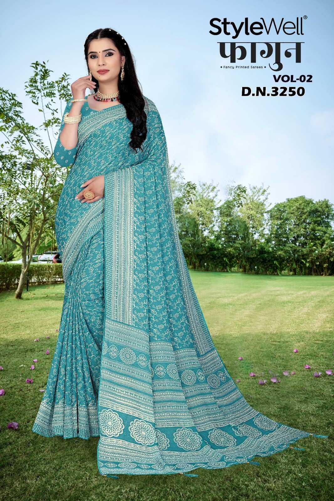 Looking for stylewell faagun vol 2 chiffon pattern unique print saree with blouse Full Catalouge at Best Price? Buy Now stylewell faagun vol 2 chiffon pattern unique print saree with blouse at Wholesale Rate of Rs 3600 with Total 6 Pcs from authroized dealer and supplier of Brand. Cost of Each piece is just only Rs 600 which is very low and affordable price to resale the product in your retail store. rrgandhi is Surat based Wholesale Supplier & Dealer of Brand. Click on Brand name to Know more about Brand's products.
