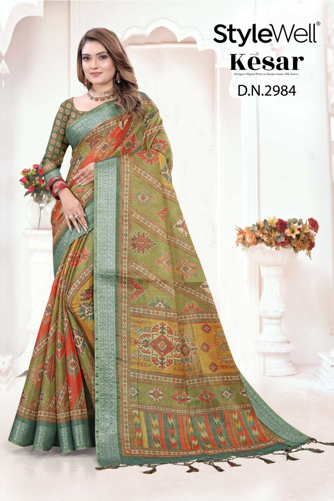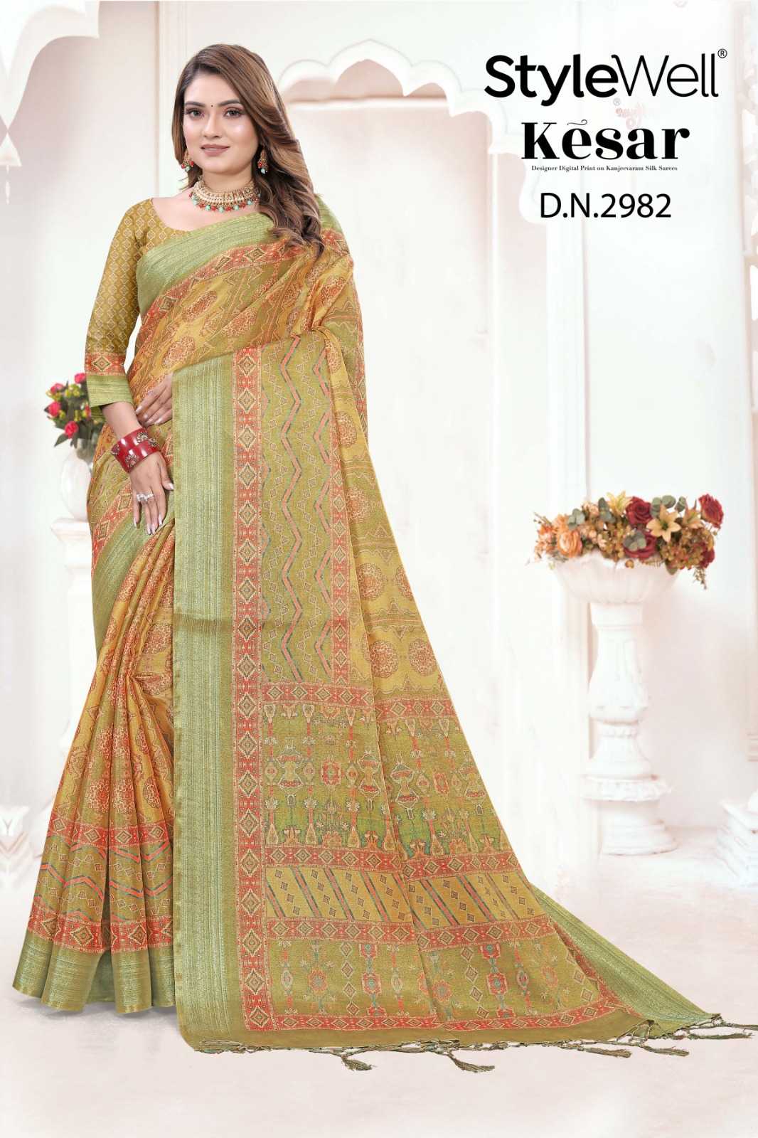 Looking for stylewell kesar pretty look silk printed saree with blouse Full Catalouge at Best Price? Buy Now stylewell kesar pretty look silk printed saree with blouse at Wholesale Rate of Rs 9270 with Total 9 Pcs from authroized dealer and supplier of Brand. Cost of Each piece is just only Rs 1030 which is very low and affordable price to resale the product in your retail store. rrgandhi is Surat based Wholesale Supplier & Dealer of Brand. Click on Brand name to Know more about Brand's products.