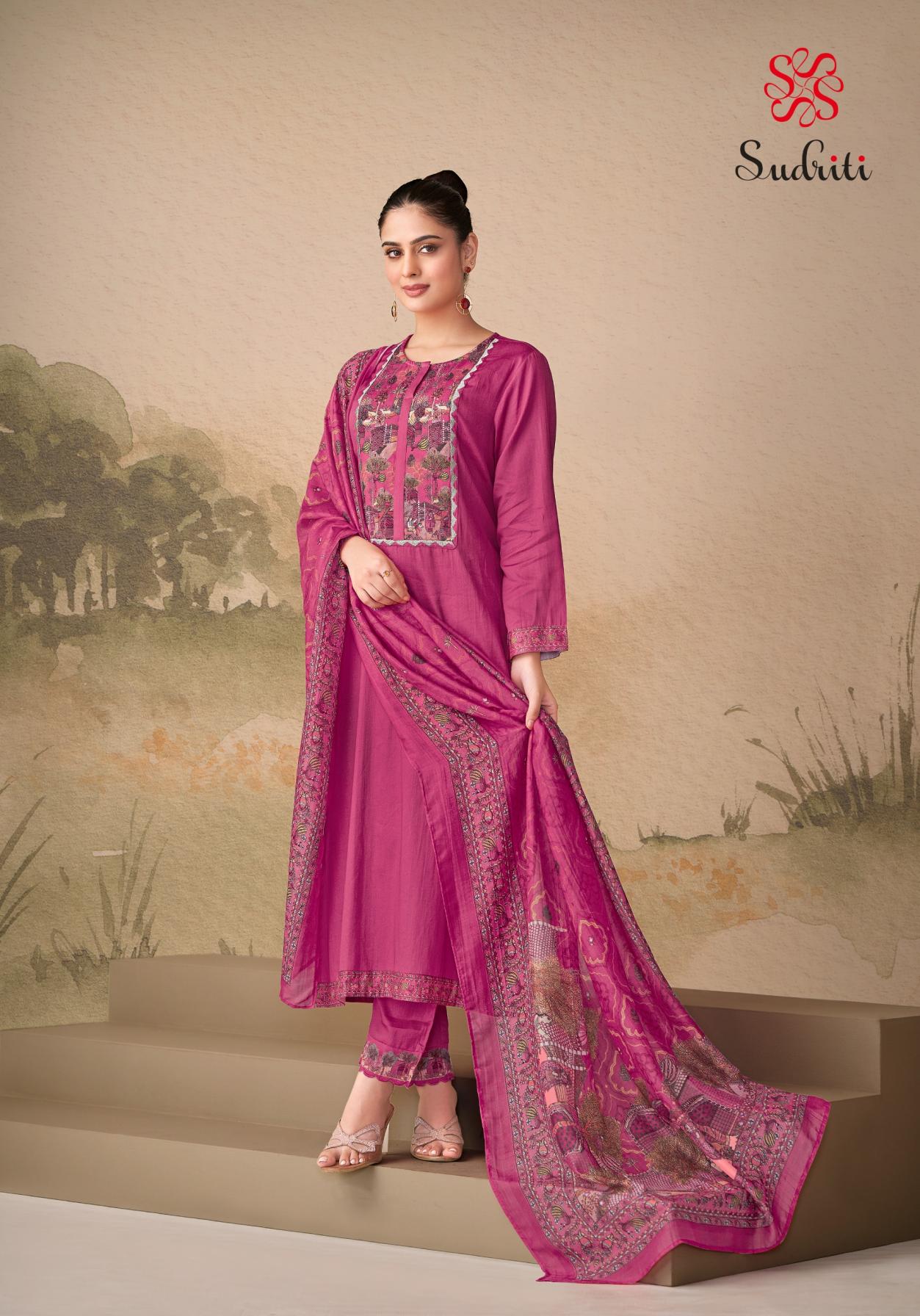 Looking for SUDRITI SAHIBA KIYARI COLOUR ADDITION COSMOS SATIN 3PCS DRESS Full Catalouge at Best Price? Buy Now SUDRITI SAHIBA KIYARI COLOUR ADDITION COSMOS SATIN 3PCS DRESS at Wholesale Rate of Rs 7770 with Total 6 Pcs from authroized dealer and supplier of Sudriti Brand. Cost of Each piece is just only Rs 1295 which is very low and affordable price to resale the product in your retail store. rrgandhi is Surat based Wholesale Supplier & Dealer of Sudriti Brand. Click on Brand name to Know more about Brand's products.