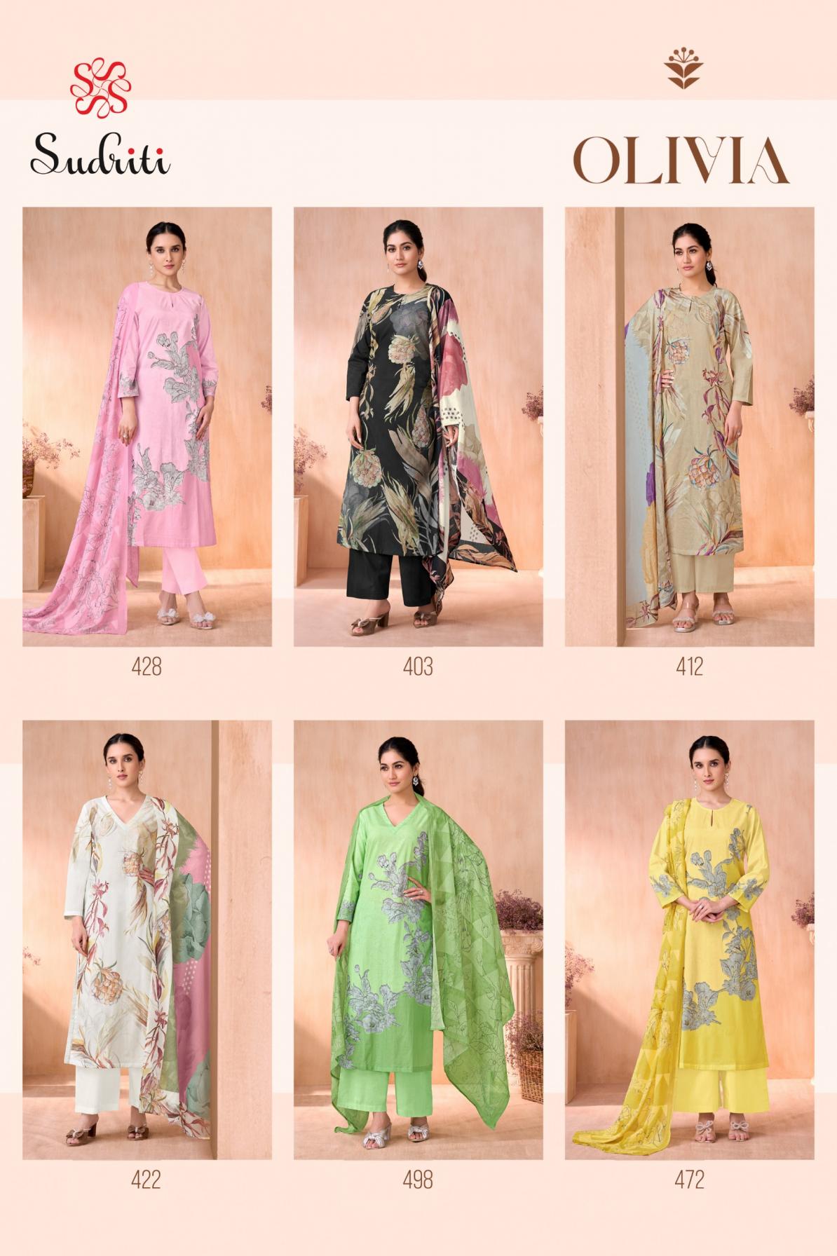 Looking for SUDRITI SAHIBA OLIVIA LAWN COTTON FANCY UNSTITCH 3PCS DRESS Full Catalouge at Best Price? Buy Now SUDRITI SAHIBA OLIVIA LAWN COTTON FANCY UNSTITCH 3PCS DRESS at Wholesale Rate of Rs 6570 with Total 6 Pcs from authroized dealer and supplier of Sudriti Brand. Cost of Each piece is just only Rs 1095 which is very low and affordable price to resale the product in your retail store. rrgandhi is Surat based Wholesale Supplier & Dealer of Sudriti Brand. Click on Brand name to Know more about Brand's products.