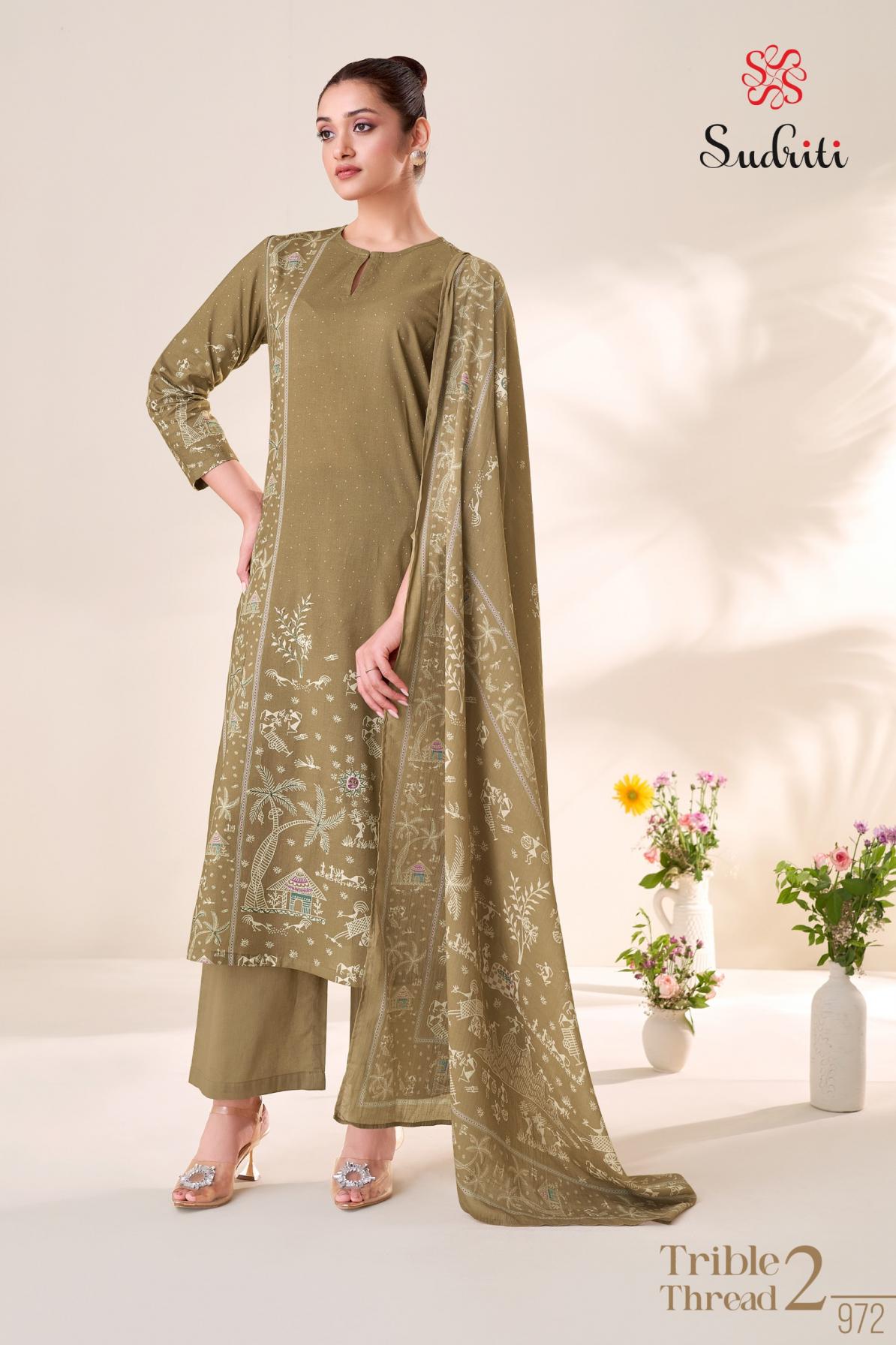 Looking for SUDRITI SAHIBA TRIBLE THREAD VOL 2 LAWN COTTON SUITS Full Catalouge at Best Price? Buy Now SUDRITI SAHIBA TRIBLE THREAD VOL 2 LAWN COTTON SUITS at Wholesale Rate of Rs 8760 with Total 8 Pcs from authroized dealer and supplier of Sahiba Brand. Cost of Each piece is just only Rs 1095 which is very low and affordable price to resale the product in your retail store. rrgandhi is Surat based Wholesale Supplier & Dealer of Sahiba Brand. Click on Brand name to Know more about Brand's products.