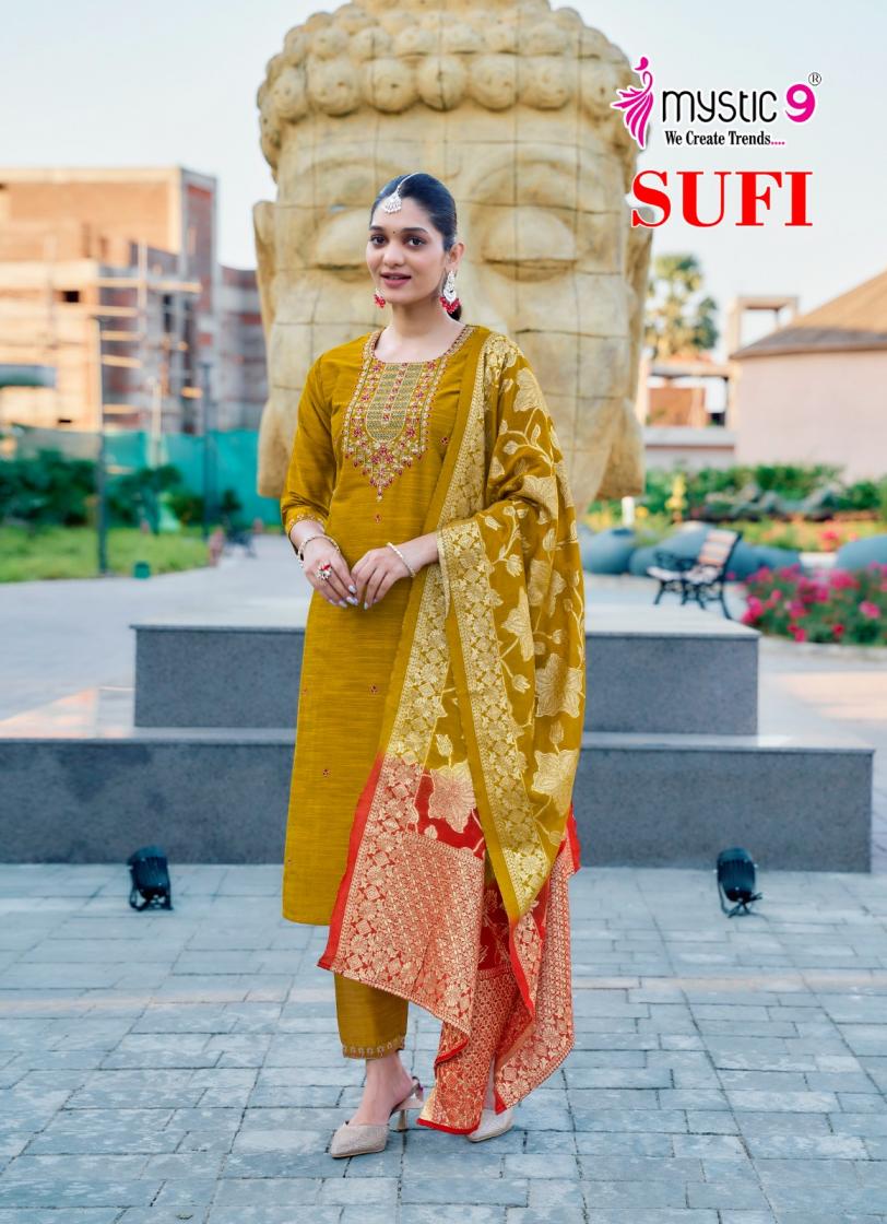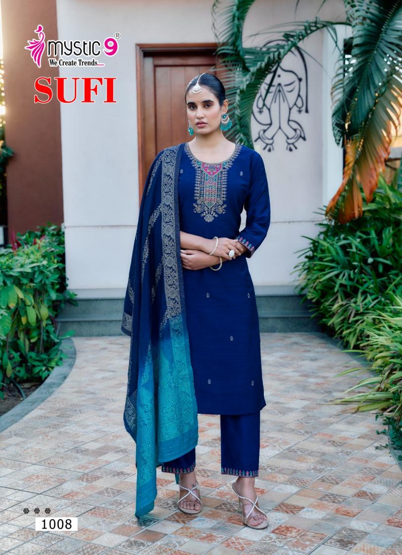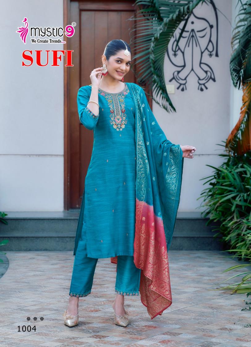 Looking for sufi vol 1 by mystic9 readymade unique banglore silk suit for womens Full Catalouge at Best Price? Buy Now sufi vol 1 by mystic9 readymade unique banglore silk suit for womens at Wholesale Rate of Rs 6600 with Total 8 Pcs from authroized dealer and supplier of Mystic9 Brand. Cost of Each piece is just only Rs 825 which is very low and affordable price to resale the product in your retail store. rrgandhi is Surat based Wholesale Supplier & Dealer of Mystic9 Brand. Click on Brand name to Know more about Brand's products.