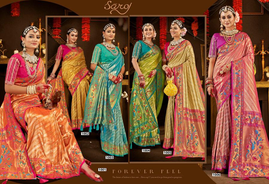 Looking for Sukhmani tissue paithani Saroj vol.3 tissue silk saree Full Catalouge at Best Price? Buy Now Sukhmani tissue paithani Saroj vol.3 tissue silk saree at Wholesale Rate of Rs 8850 with Total 6 Pcs from authroized dealer and supplier of Saroj Textiles Brand. Cost of Each piece is just only Rs 1475 which is very low and affordable price to resale the product in your retail store. rrgandhi is Surat based Wholesale Supplier & Dealer of Saroj Textiles Brand. Click on Brand name to Know more about Brand's products.