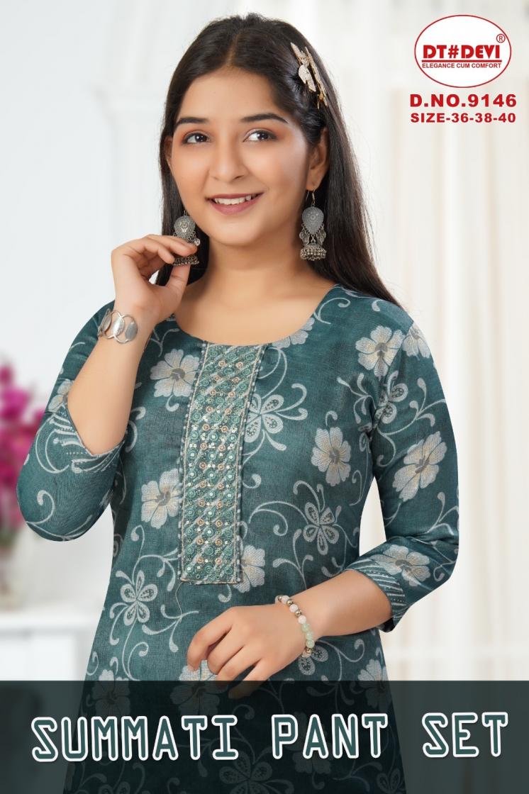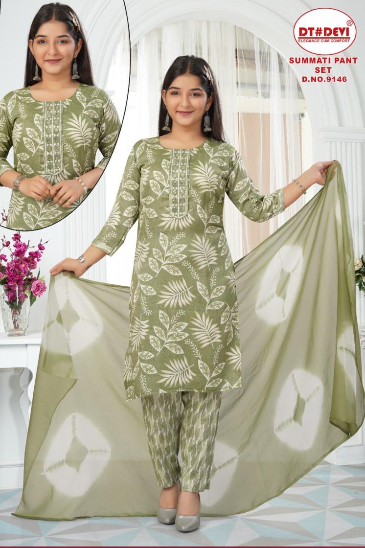 Looking for SUMMATI PANT SET BY DT DEVI READYMADE 9146 CAPSULE COMBO KIDS SUIT Full Catalouge at Best Price? Buy Now SUMMATI PANT SET BY DT DEVI READYMADE 9146 CAPSULE COMBO KIDS SUIT at Wholesale Rate of Rs 5880 with Total 12 Pcs from authroized dealer and supplier of Dt Devi Brand. Cost of Each piece is just only Rs 490 which is very low and affordable price to resale the product in your retail store. rrgandhi is Surat based Wholesale Supplier & Dealer of Dt Devi Brand. Click on Brand name to Know more about Brand's products.