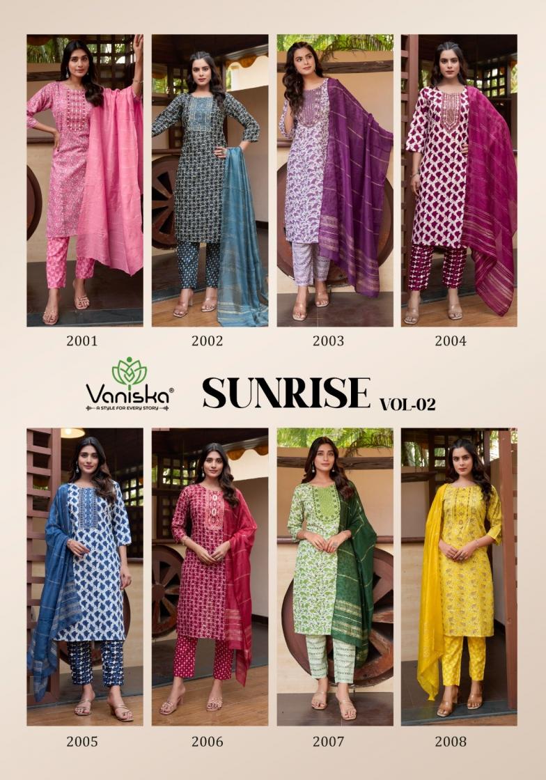 Looking for sunrise vol 2 by vaniska colourpix capsule print stylish 3pcs dress Full Catalouge at Best Price? Buy Now sunrise vol 2 by vaniska colourpix capsule print stylish 3pcs dress at Wholesale Rate of Rs 3800 with Total 8 Pcs from authroized dealer and supplier of Colour Pix Brand. Cost of Each piece is just only Rs 475 which is very low and affordable price to resale the product in your retail store. rrgandhi is Surat based Wholesale Supplier & Dealer of Colour Pix Brand. Click on Brand name to Know more about Brand's products.