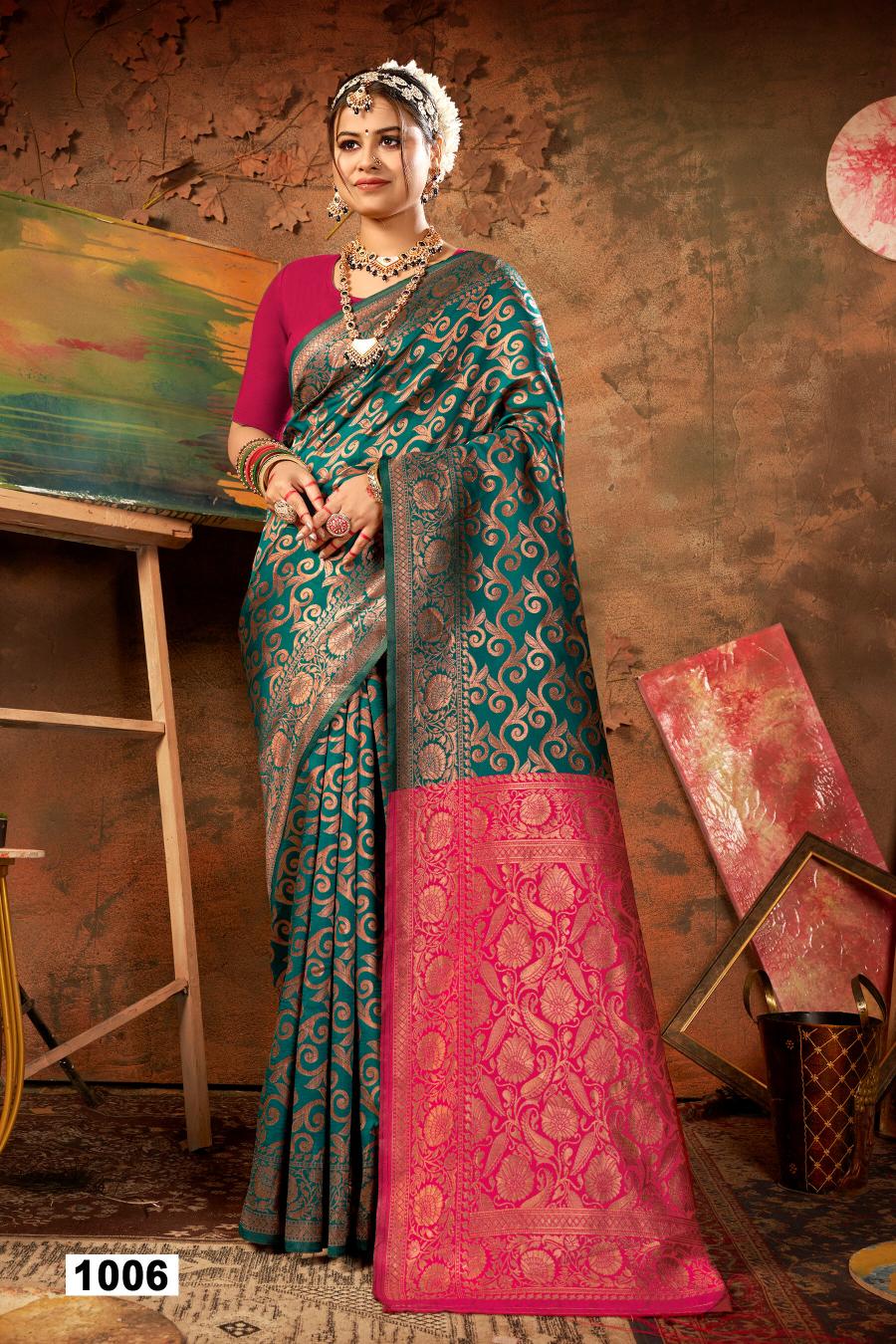 Looking for Suprabhat silk Saroj vol.4 soft silk saree Full Catalouge at Best Price? Buy Now Suprabhat silk Saroj vol.4 soft silk saree at Wholesale Rate of Rs 2460 with Total 6 Pcs from authroized dealer and supplier of Saroj Textiles Brand. Cost of Each piece is just only Rs 410 which is very low and affordable price to resale the product in your retail store. rrgandhi is Surat based Wholesale Supplier & Dealer of Saroj Textiles Brand. Click on Brand name to Know more about Brand's products.