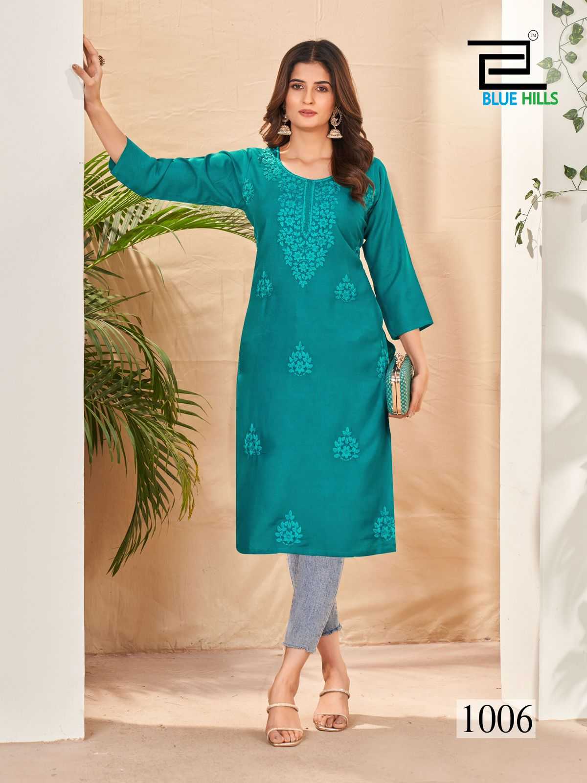 Looking for supriya by blue hills rayon amazing chikankari work readymade long kurti exports Full Catalouge at Best Price? Buy Now supriya by blue hills rayon amazing chikankari work readymade long kurti exports at Wholesale Rate of Rs 2280 with Total 6 Pcs from authroized dealer and supplier of Blue Hills Brand. Cost of Each piece is just only Rs 380 which is very low and affordable price to resale the product in your retail store. rrgandhi is Surat based Wholesale Supplier & Dealer of Blue Hills Brand. Click on Brand name to Know more about Brand's products.
