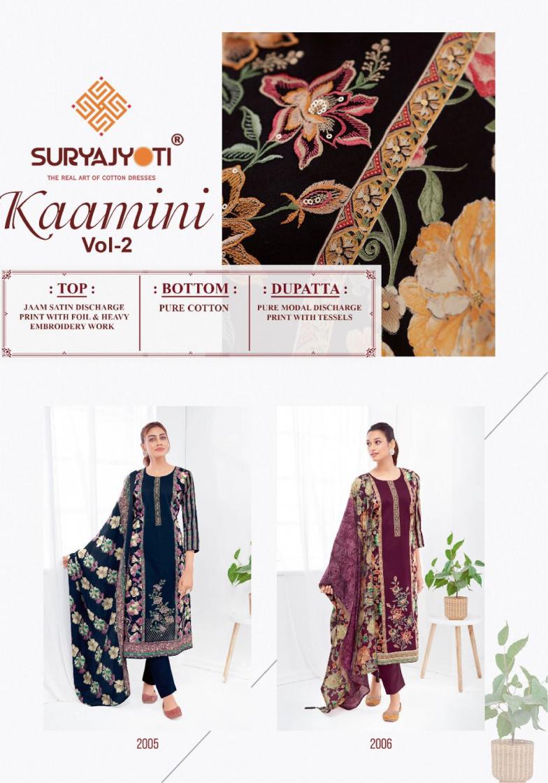 Looking for SURYAJYOTI KAAMINI VOL 2 POPULAR DESIGN JAM SATIN DRESS MATERIALS Full Catalouge at Best Price? Buy Now SURYAJYOTI KAAMINI VOL 2 POPULAR DESIGN JAM SATIN DRESS MATERIALS at Wholesale Rate of Rs 5550 with Total 6 Pcs from authroized dealer and supplier of Suryajyoti Cotton Brand. Cost of Each piece is just only Rs 925 which is very low and affordable price to resale the product in your retail store. rrgandhi is Surat based Wholesale Supplier & Dealer of Suryajyoti Cotton Brand. Click on Brand name to Know more about Brand's products.