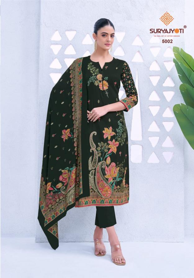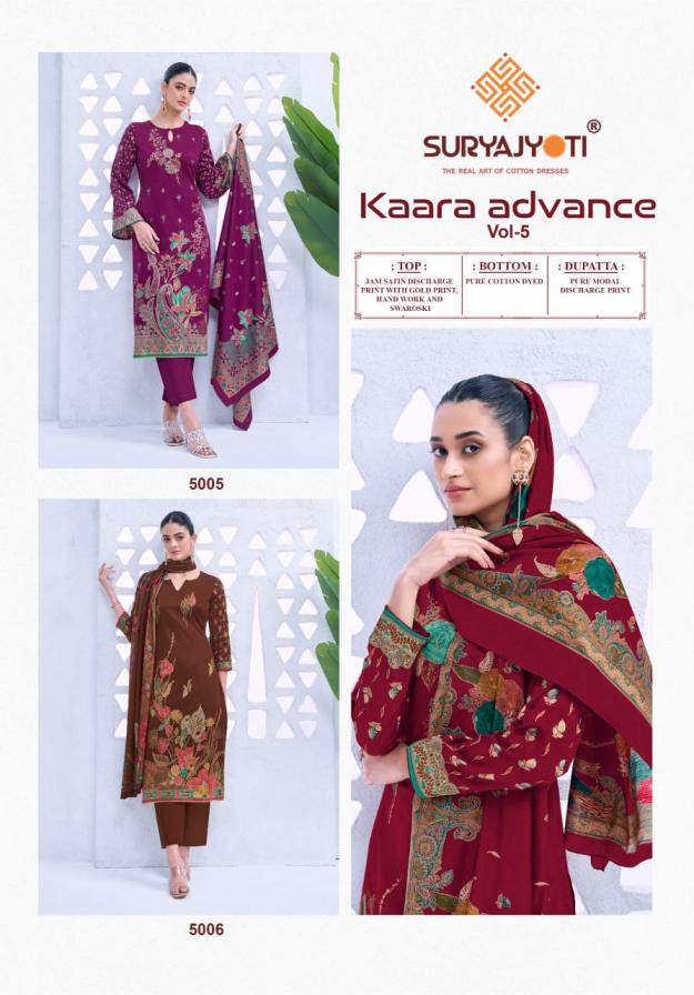 Looking for SURYAJYOTI KAARA ADVANCE VOL 5 JAM SATIN PRETTY DRESS MATERIALS Full Catalouge at Best Price? Buy Now SURYAJYOTI KAARA ADVANCE VOL 5 JAM SATIN PRETTY DRESS MATERIALS at Wholesale Rate of Rs 4950 with Total 6 Pcs from authroized dealer and supplier of Suryajyoti Cotton Brand. Cost of Each piece is just only Rs 825 which is very low and affordable price to resale the product in your retail store. rrgandhi is Surat based Wholesale Supplier & Dealer of Suryajyoti Cotton Brand. Click on Brand name to Know more about Brand's products.