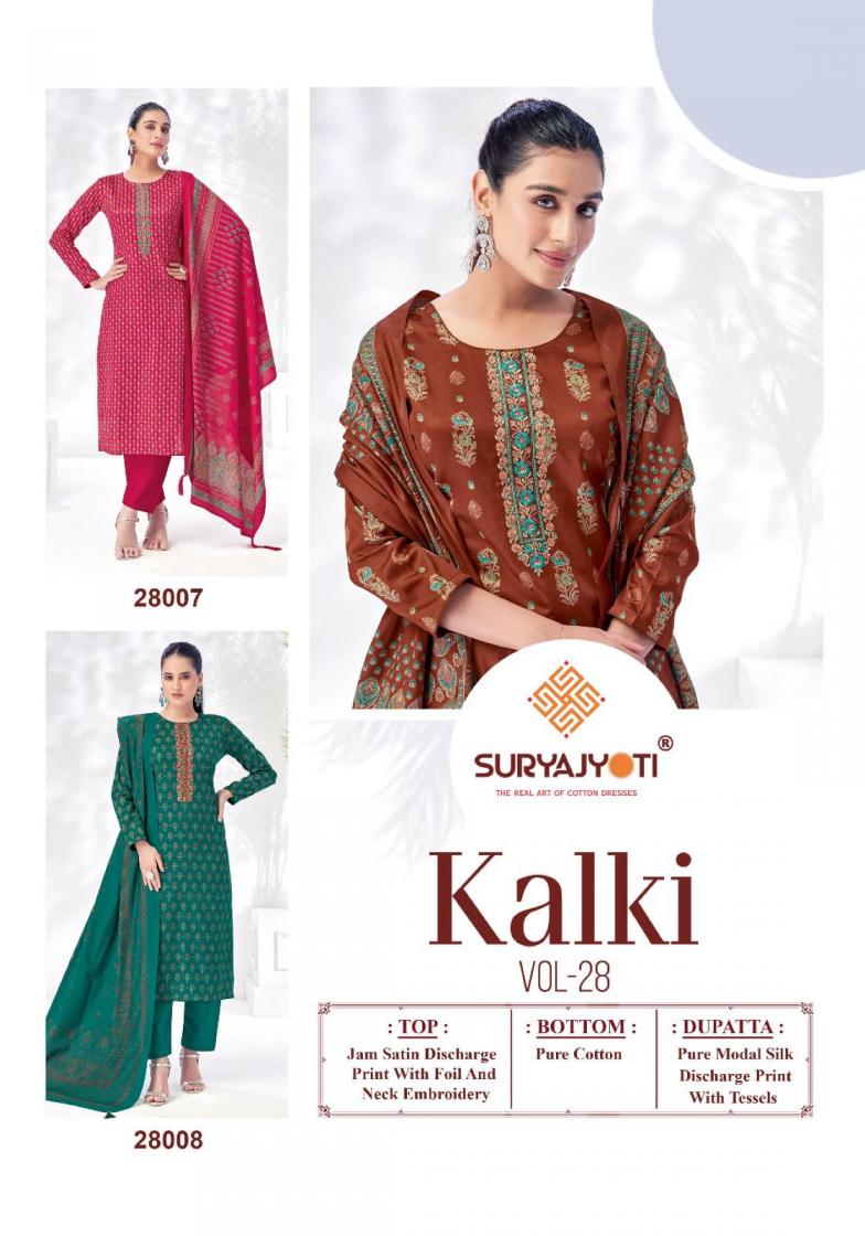 Looking for SURYAJYOTI KALKI VOL 28 JAM SATIN UNIQUE DRESS MATERIALS Full Catalouge at Best Price? Buy Now SURYAJYOTI KALKI VOL 28 JAM SATIN UNIQUE DRESS MATERIALS at Wholesale Rate of Rs 6088 with Total 8 Pcs from authroized dealer and supplier of Suryajyoti Cotton Brand. Cost of Each piece is just only Rs 761 which is very low and affordable price to resale the product in your retail store. rrgandhi is Surat based Wholesale Supplier & Dealer of Suryajyoti Cotton Brand. Click on Brand name to Know more about Brand's products.