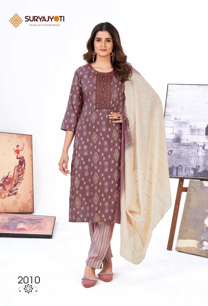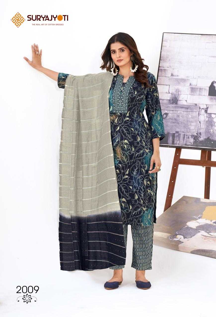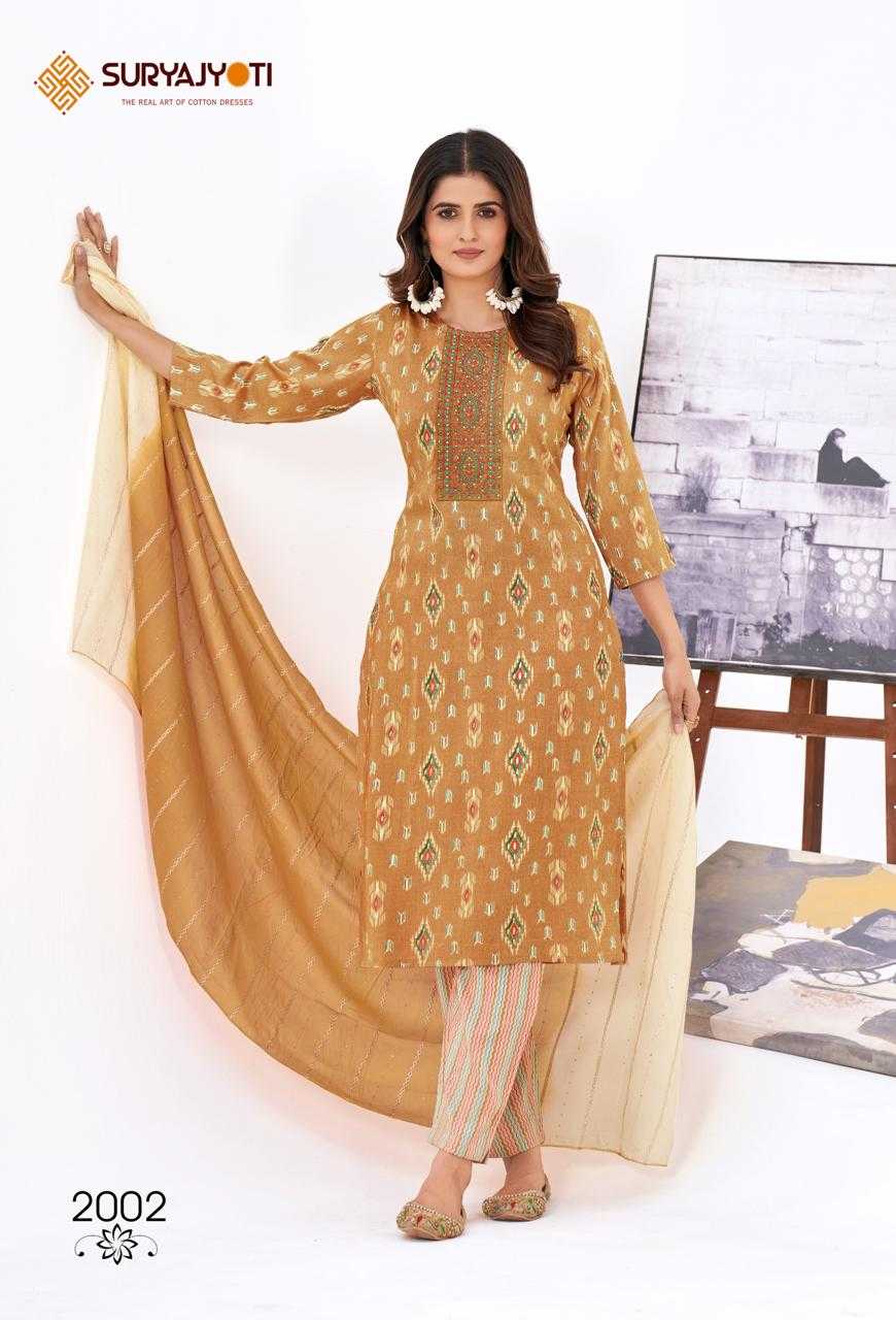 Looking for suryajyoti kritika vol 2 daily wear readymade salwar suit Full Catalouge at Best Price? Buy Now suryajyoti kritika vol 2 daily wear readymade salwar suit at Wholesale Rate of Rs 5550 with Total 10 Pcs from authroized dealer and supplier of Suryajyoti Cotton Brand. Cost of Each piece is just only Rs 555 which is very low and affordable price to resale the product in your retail store. rrgandhi is Surat based Wholesale Supplier & Dealer of Suryajyoti Cotton Brand. Click on Brand name to Know more about Brand's products.