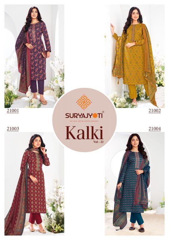 Looking for suryajyoti launch kalki vol 21 jam satin hit design unstitch 3pcs dress supplier Full Catalouge at Best Price? Buy Now suryajyoti launch kalki vol 21 jam satin hit design unstitch 3pcs dress supplier at Wholesale Rate of Rs 6120 with Total 8 Pcs from authroized dealer and supplier of Suryajyoti Cotton Brand. Cost of Each piece is just only Rs 765 which is very low and affordable price to resale the product in your retail store. rrgandhi is Surat based Wholesale Supplier & Dealer of Suryajyoti Cotton Brand. Click on Brand name to Know more about Brand's products.
