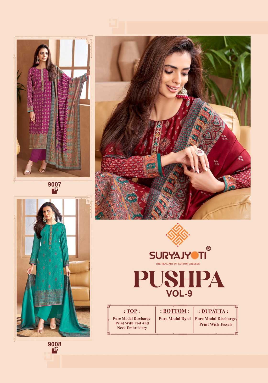 Looking for suryajyoti pushpa vol 9 unique discharge print modal suits Full Catalouge at Best Price? Buy Now suryajyoti pushpa vol 9 unique discharge print modal suits at Wholesale Rate of Rs 4530 with Total 6 Pcs from authroized dealer and supplier of Suryajyoti Cotton Brand. Cost of Each piece is just only Rs 755 which is very low and affordable price to resale the product in your retail store. rrgandhi is Surat based Wholesale Supplier & Dealer of Suryajyoti Cotton Brand. Click on Brand name to Know more about Brand's products.