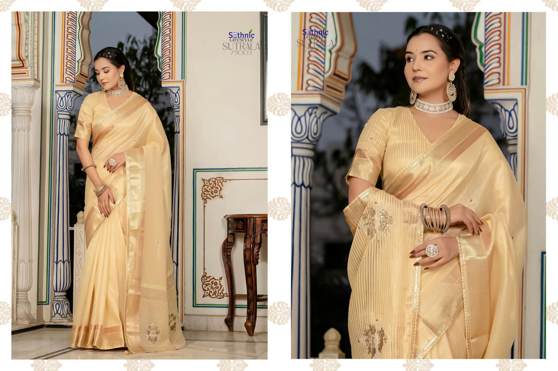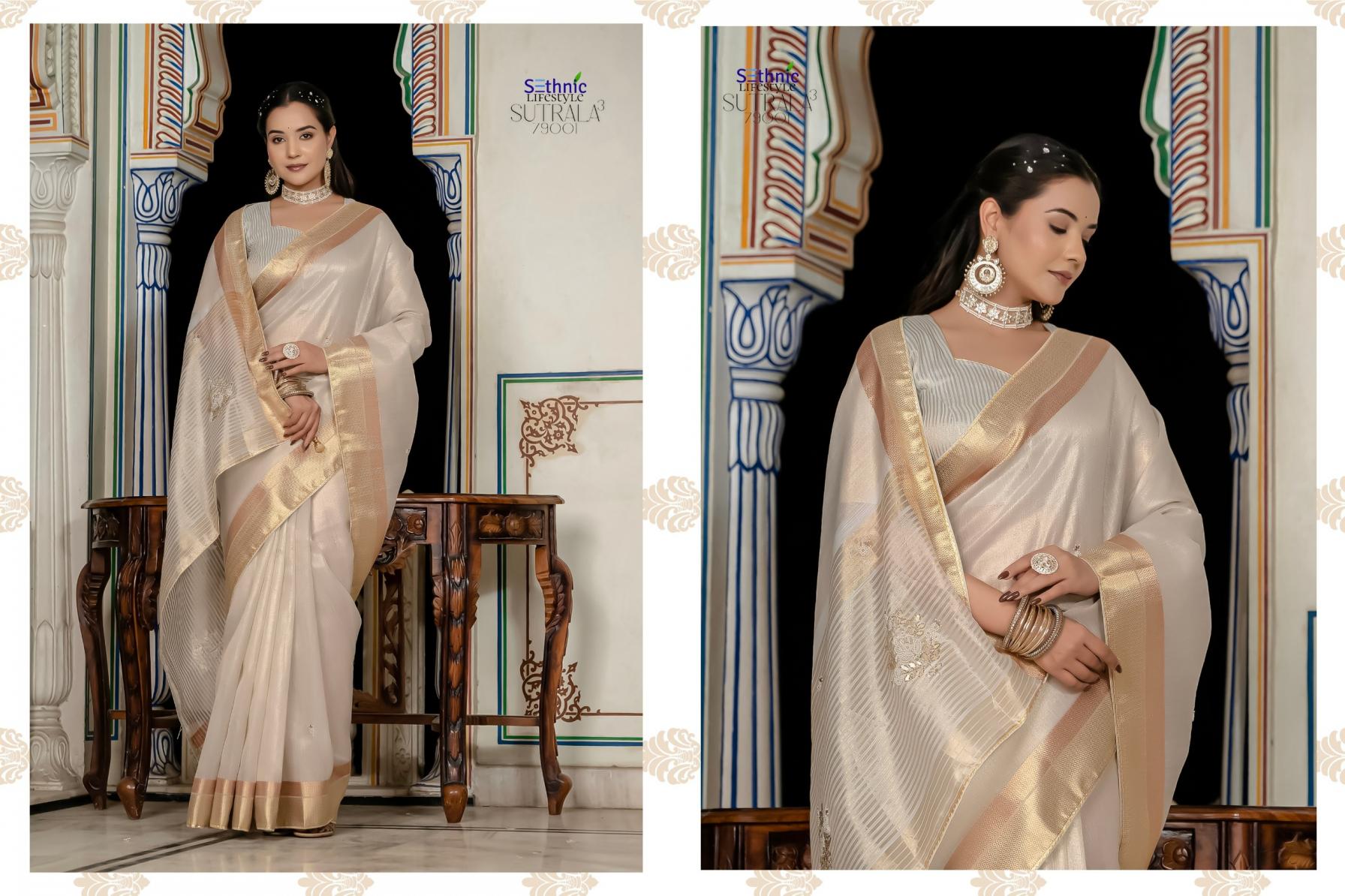 Looking for SUTARALA VOL 3 BY SETHNIC LIFESTYLE NEW LATEST SAREE Full Catalouge at Best Price? Buy Now SUTARALA VOL 3 BY SETHNIC LIFESTYLE NEW LATEST SAREE at Wholesale Rate of Rs 6475 with Total 5 Pcs from authroized dealer and supplier of Sethnic Lifestyle Brand. Cost of Each piece is just only Rs 1295 which is very low and affordable price to resale the product in your retail store. rrgandhi is Surat based Wholesale Supplier & Dealer of Sethnic Lifestyle Brand. Click on Brand name to Know more about Brand's products.