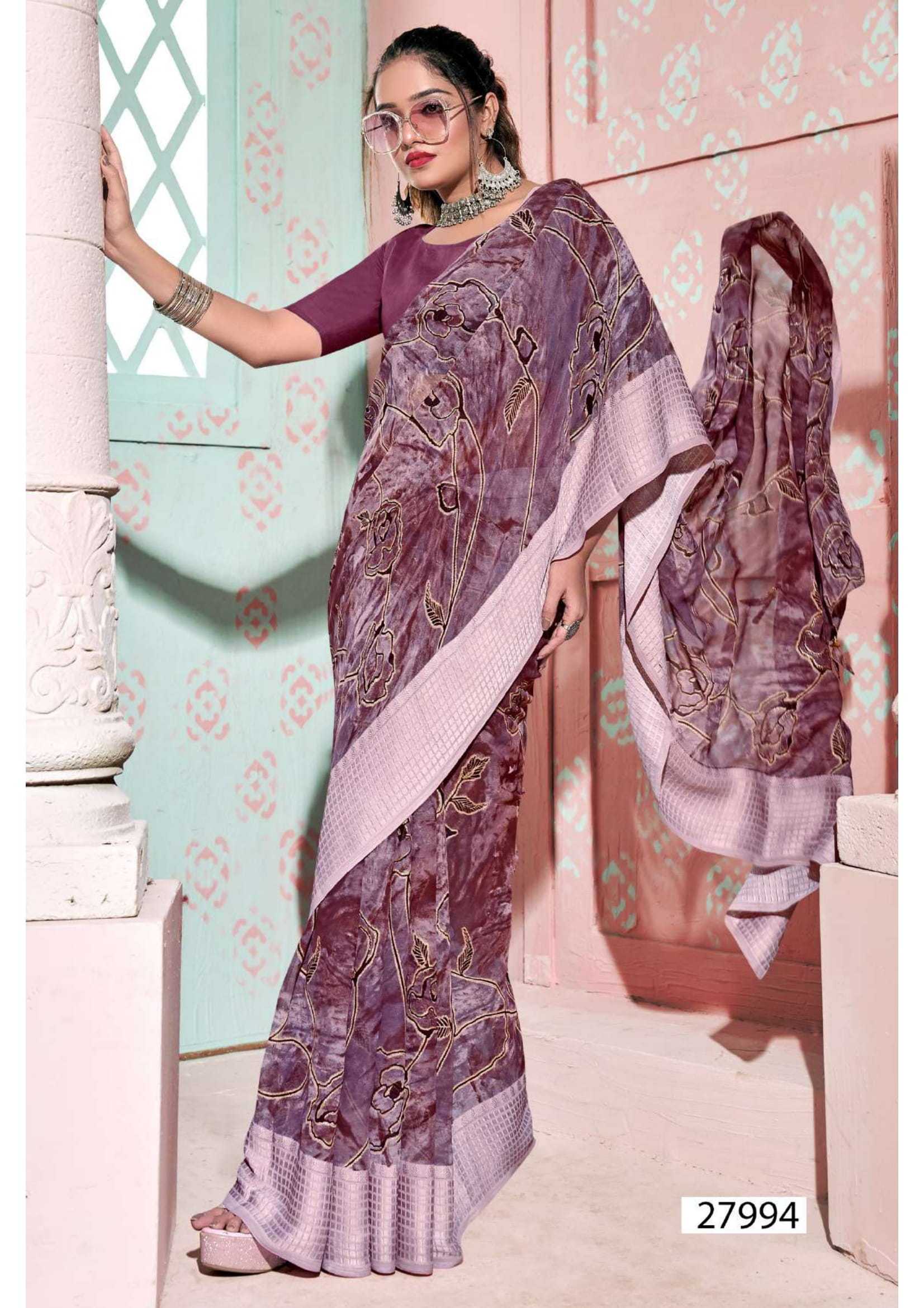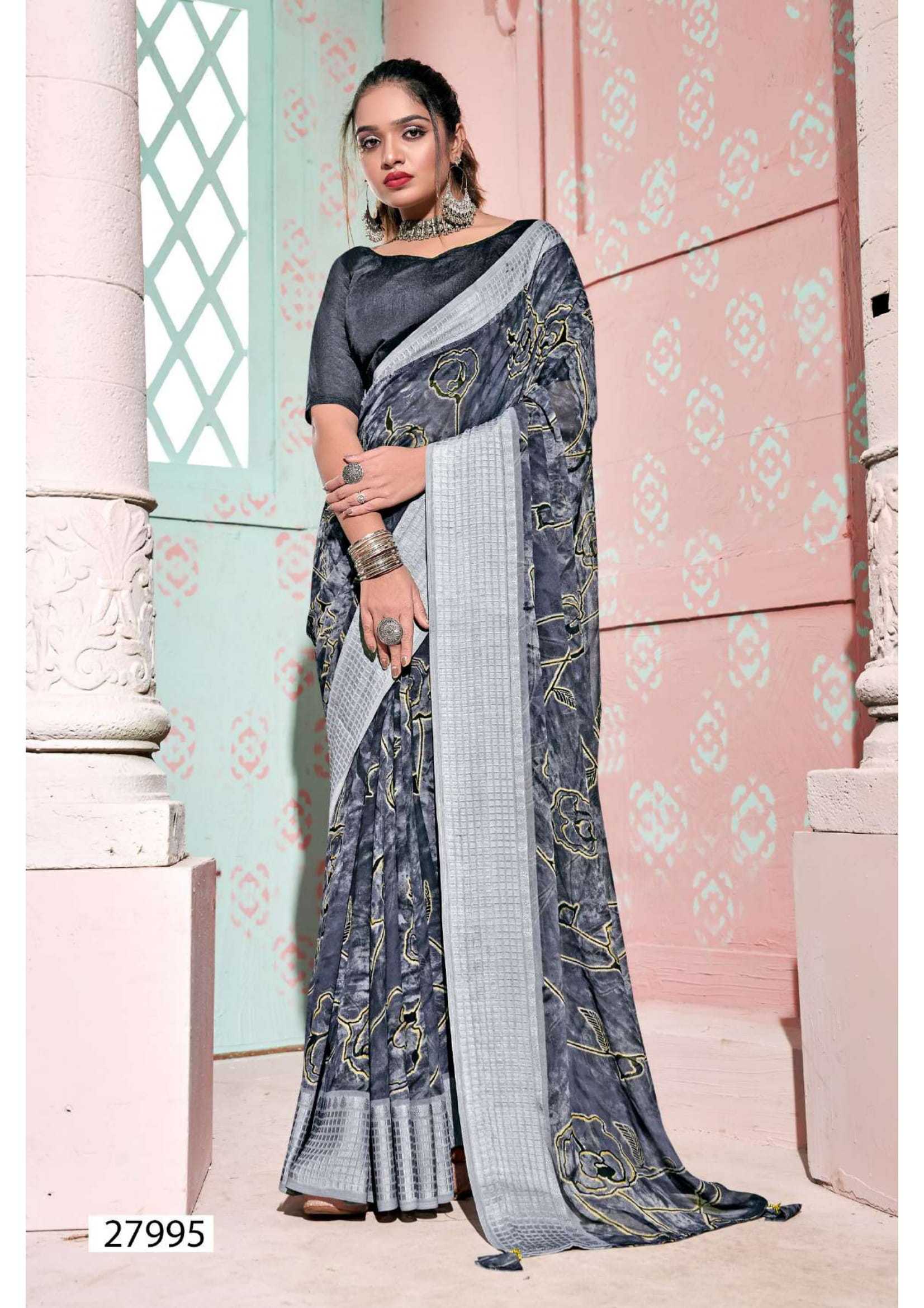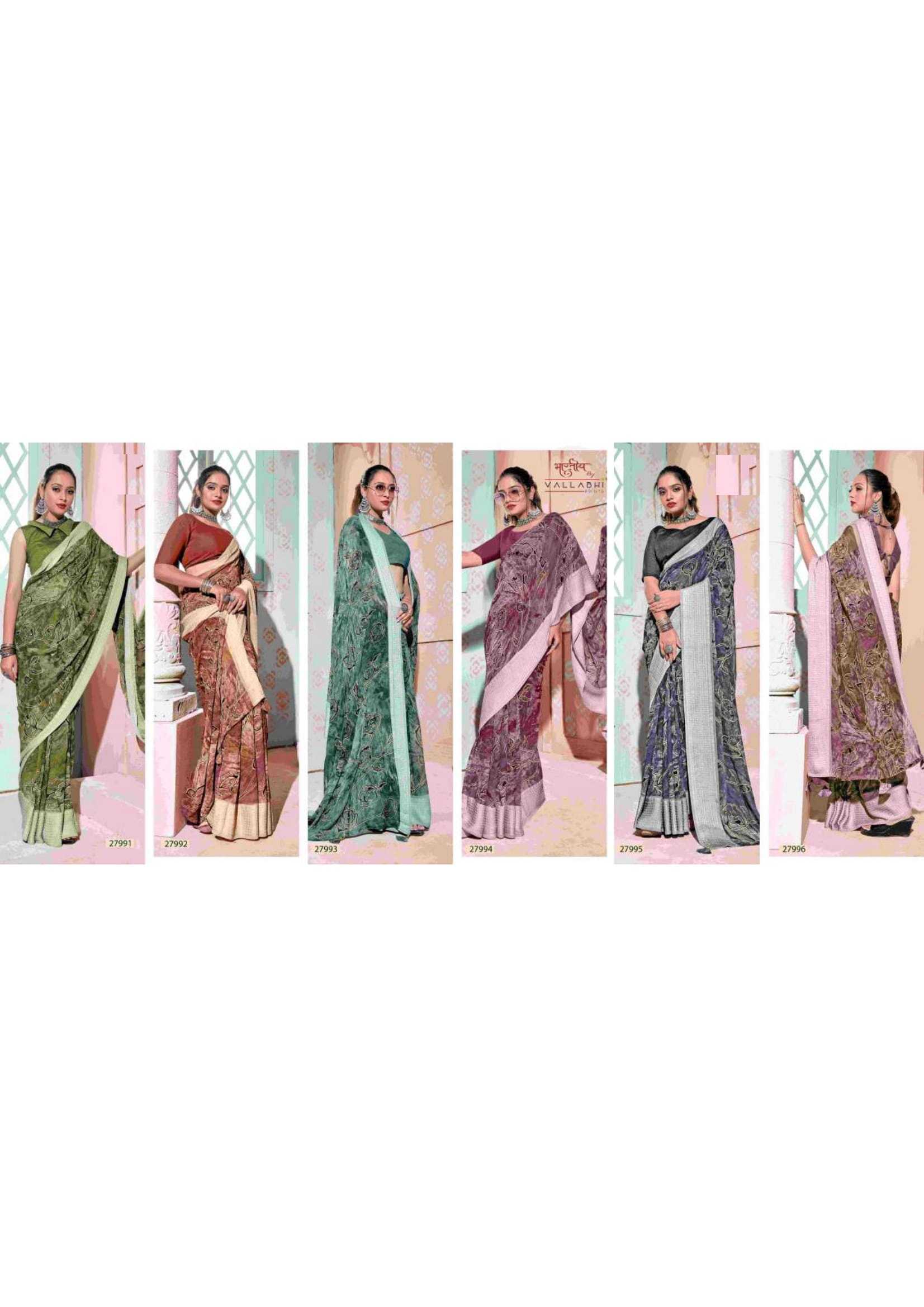 Looking for symphony vol 3 by vallabhi prints georgette pattern saree Full Catalouge at Best Price? Buy Now symphony vol 3 by vallabhi prints georgette pattern saree at Wholesale Rate of Rs 4290 with Total 6 Pcs from authroized dealer and supplier of Brand. Cost of Each piece is just only Rs 715 which is very low and affordable price to resale the product in your retail store. rrgandhi is Surat based Wholesale Supplier & Dealer of Brand. Click on Brand name to Know more about Brand's products.