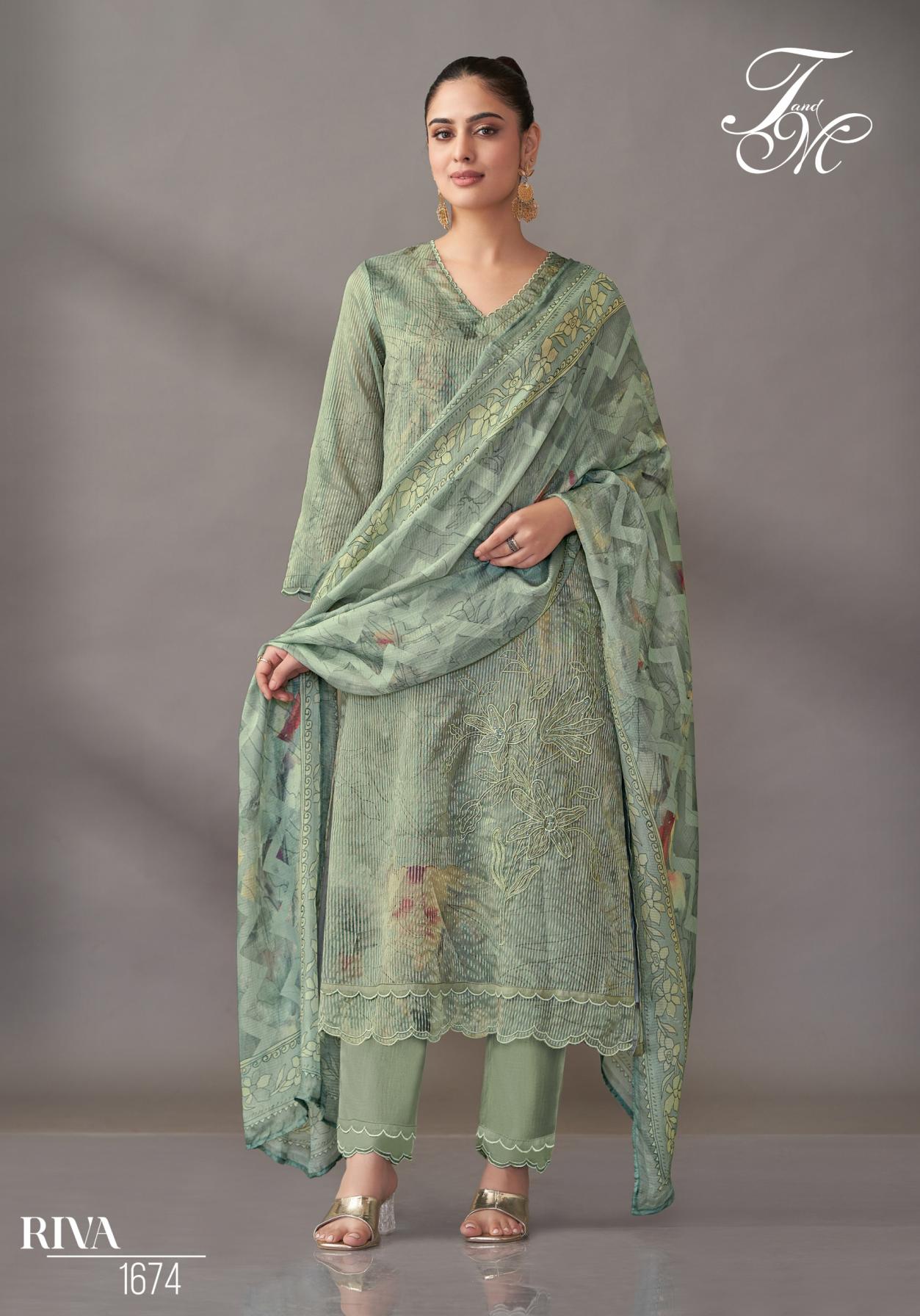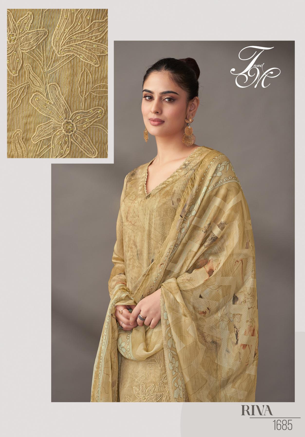 Looking for T&M SAHIBA RIVA UNIQUE SILK DRESS MATERIALS Full Catalouge at Best Price? Buy Now T&M SAHIBA RIVA UNIQUE SILK DRESS MATERIALS at Wholesale Rate of Rs 11580 with Total 4 Pcs from authroized dealer and supplier of T and M Designer Brand. Cost of Each piece is just only Rs 2895 which is very low and affordable price to resale the product in your retail store. rrgandhi is Surat based Wholesale Supplier & Dealer of T and M Designer Brand. Click on Brand name to Know more about Brand's products.