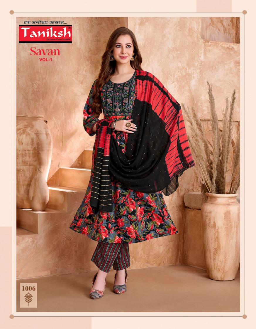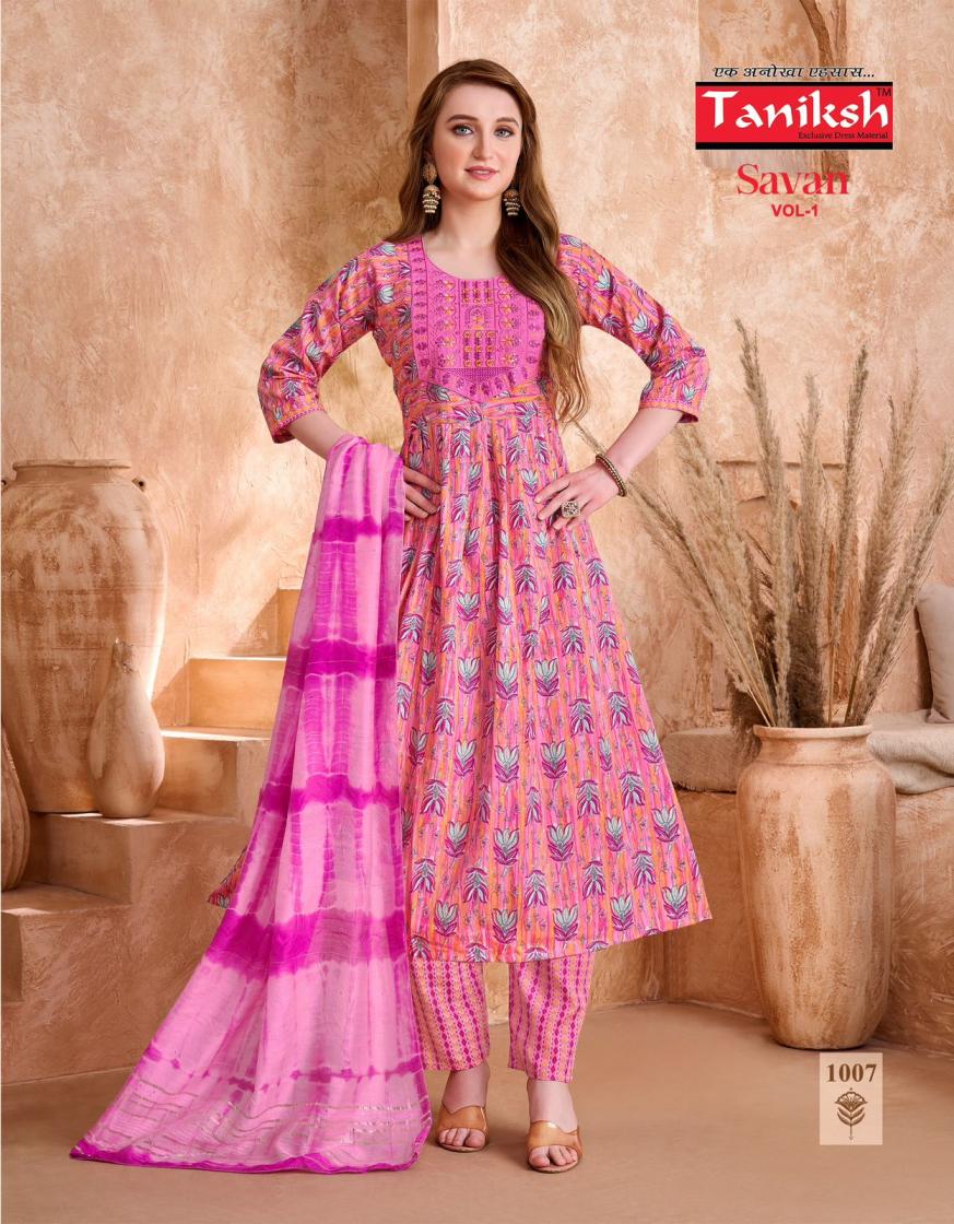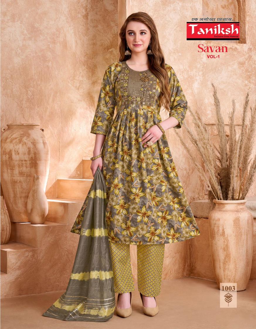 Looking for taniksh presents savan vol 1 readymade unique anarkali suits Full Catalouge at Best Price? Buy Now taniksh presents savan vol 1 readymade unique anarkali suits at Wholesale Rate of Rs 3360 with Total 8 Pcs from authroized dealer and supplier of Taniksh Brand. Cost of Each piece is just only Rs 420 which is very low and affordable price to resale the product in your retail store. rrgandhi is Surat based Wholesale Supplier & Dealer of Taniksh Brand. Click on Brand name to Know more about Brand's products.