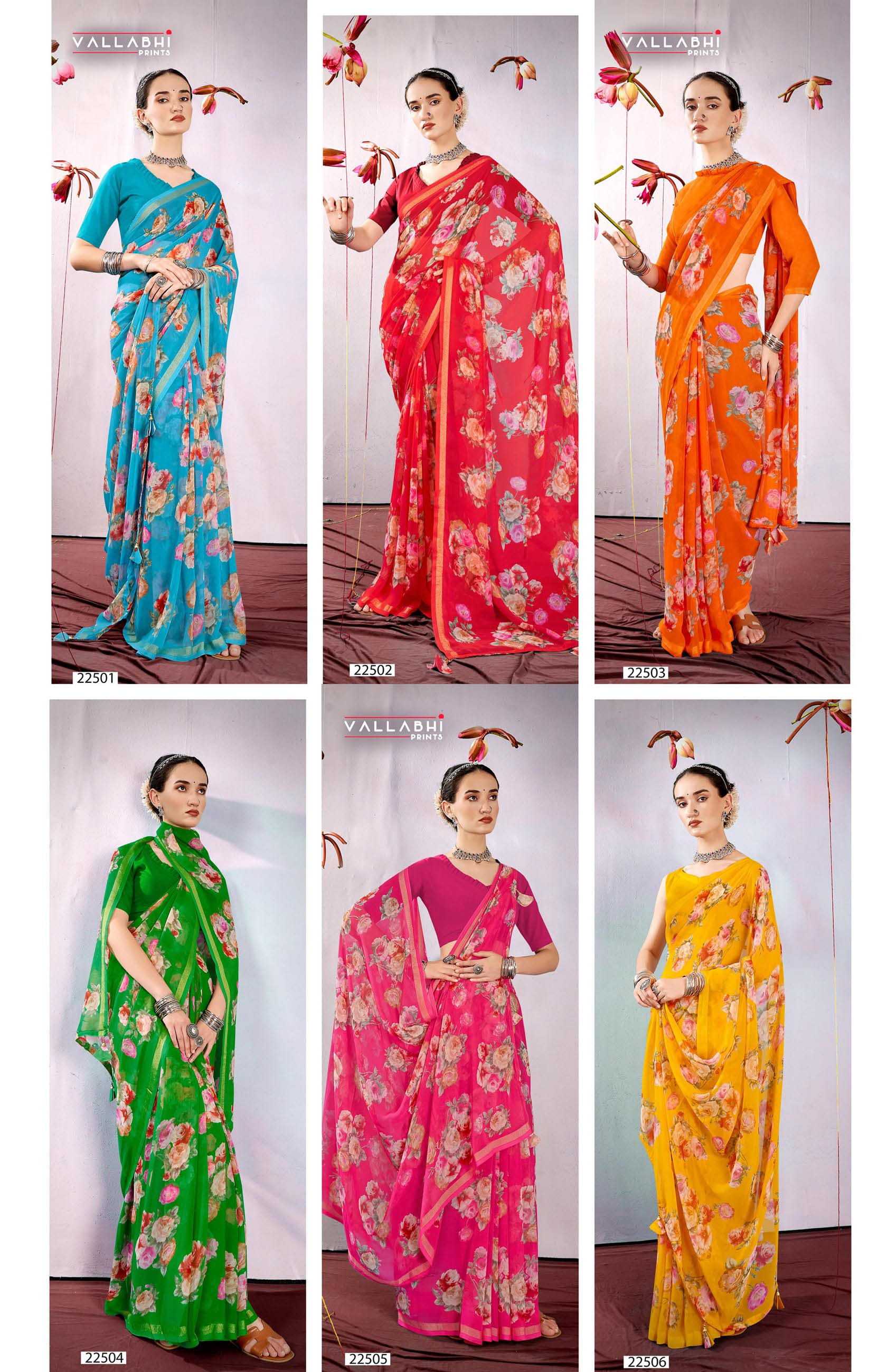 Looking for tarushi by vallabhi prints designer georgette saree with blouse Full Catalouge at Best Price? Buy Now tarushi by vallabhi prints designer georgette saree with blouse at Wholesale Rate of Rs 4350 with Total 6 Pcs from authroized dealer and supplier of Vallabhi Prints Brand. Cost of Each piece is just only Rs 725 which is very low and affordable price to resale the product in your retail store. rrgandhi is Surat based Wholesale Supplier & Dealer of Vallabhi Prints Brand. Click on Brand name to Know more about Brand's products.