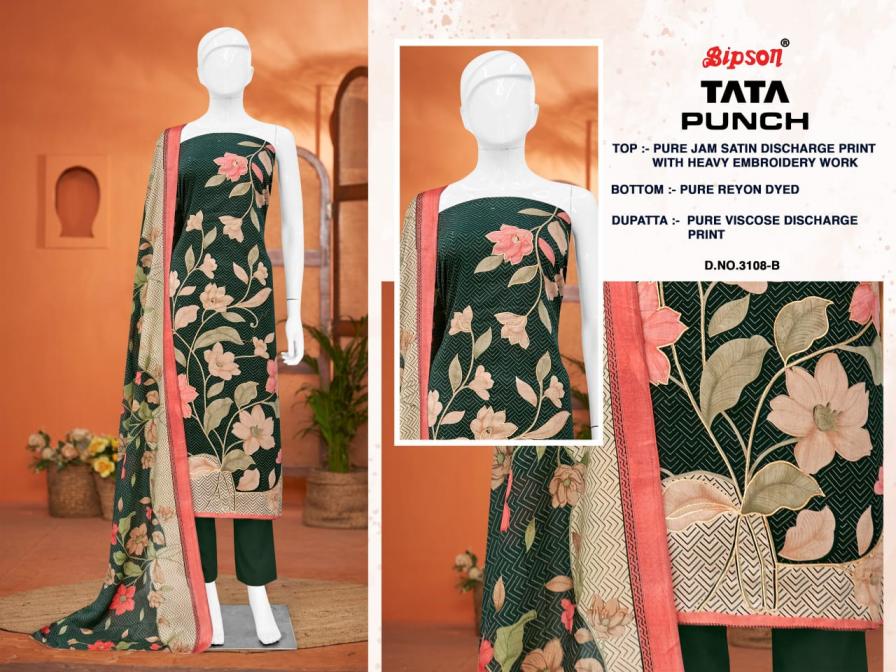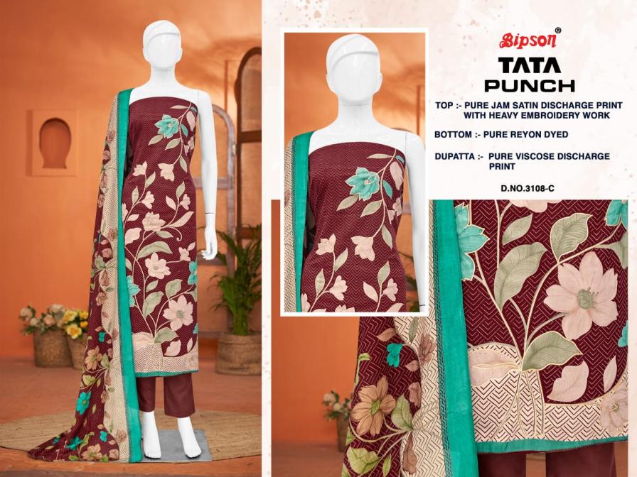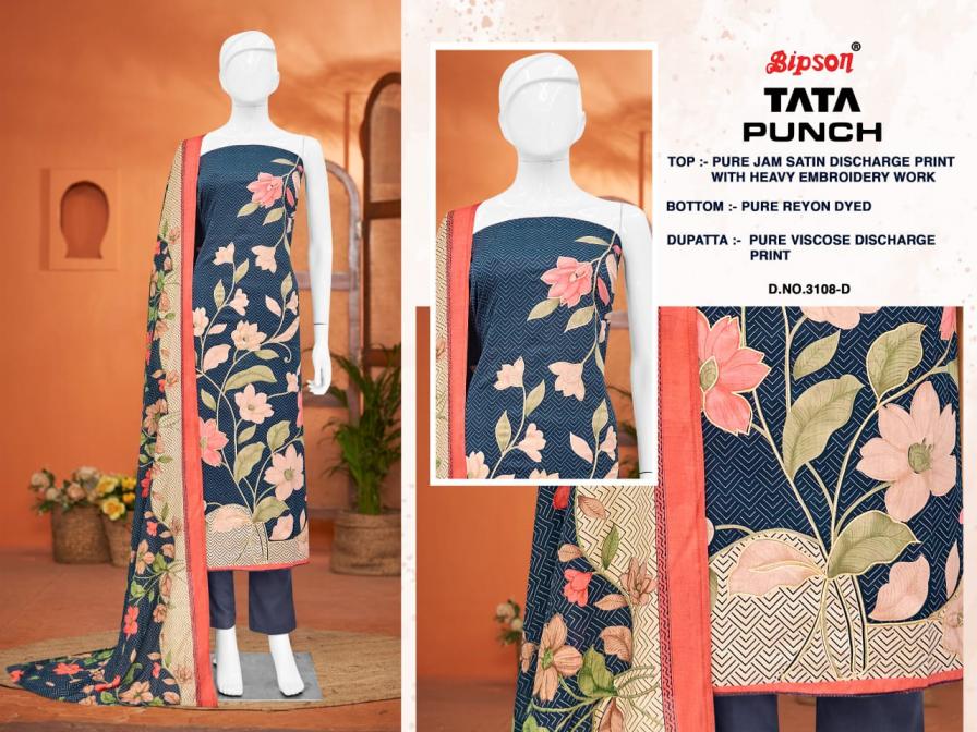 Looking for TATA PUNCH 3284 BY BIPSON PRINTS SATIN UNSTITCHED DAILY WEAR SUITS Full Catalouge at Best Price? Buy Now TATA PUNCH 3284 BY BIPSON PRINTS SATIN UNSTITCHED DAILY WEAR SUITS at Wholesale Rate of Rs 3460 with Total 4 Pcs from authroized dealer and supplier of Bipson Fashion Brand. Cost of Each piece is just only Rs 865 which is very low and affordable price to resale the product in your retail store. rrgandhi is Surat based Wholesale Supplier & Dealer of Bipson Fashion Brand. Click on Brand name to Know more about Brand's products.
