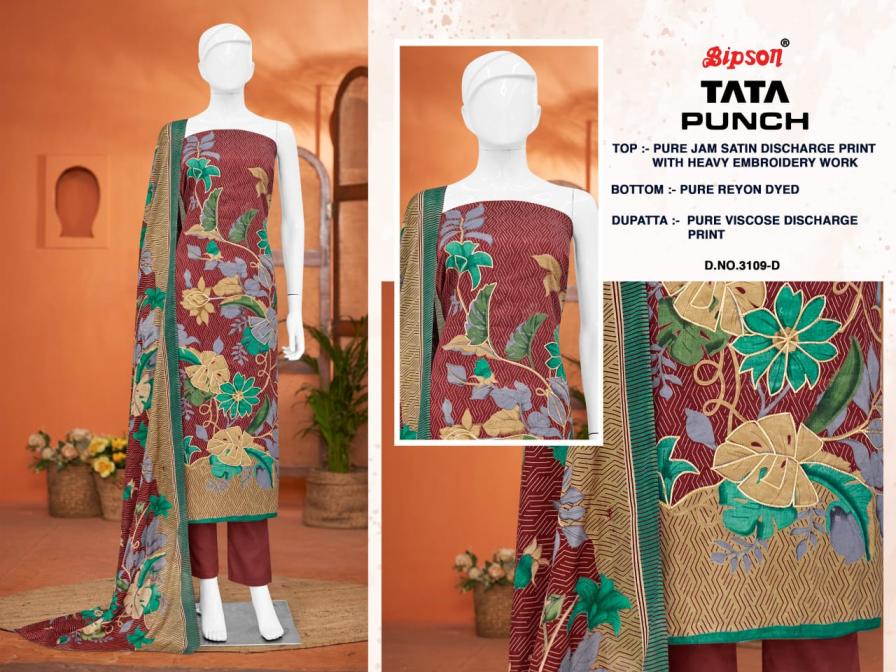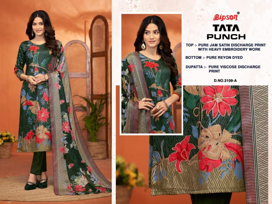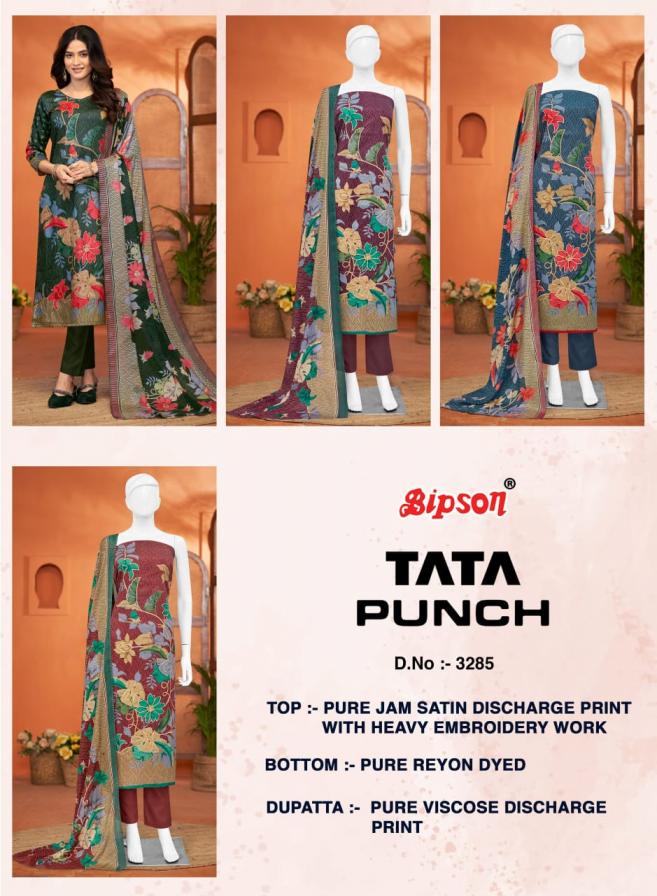 Looking for TATA PUNCH 3285 BY BIPSON PRINTS SATIN UNSTITCHED DAILY WEAR SUITS Full Catalouge at Best Price? Buy Now TATA PUNCH 3285 BY BIPSON PRINTS SATIN UNSTITCHED DAILY WEAR SUITS at Wholesale Rate of Rs 3460 with Total 4 Pcs from authroized dealer and supplier of Bipson Fashion Brand. Cost of Each piece is just only Rs 865 which is very low and affordable price to resale the product in your retail store. rrgandhi is Surat based Wholesale Supplier & Dealer of Bipson Fashion Brand. Click on Brand name to Know more about Brand's products.