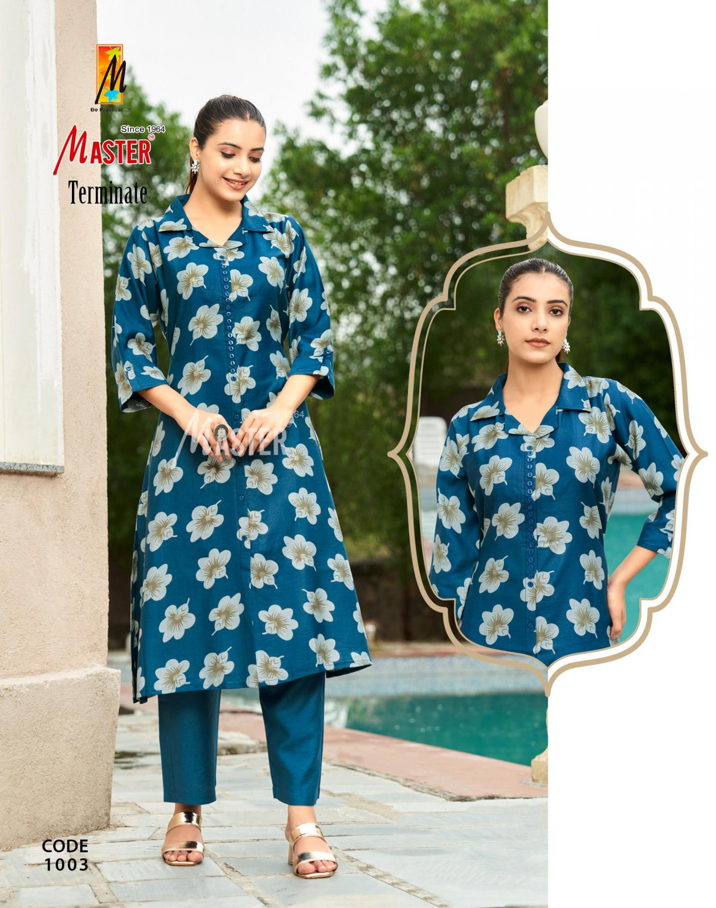 Looking for TERMINATE BY MASTER FULL STITCH CLASSIC VERTICAN PRINT KURTI WITH PANT Full Catalouge at Best Price? Buy Now TERMINATE BY MASTER FULL STITCH CLASSIC VERTICAN PRINT KURTI WITH PANT at Wholesale Rate of Rs 4440 with Total 8 Pcs from authroized dealer and supplier of Master Kurti Brand. Cost of Each piece is just only Rs 555 which is very low and affordable price to resale the product in your retail store. rrgandhi is Surat based Wholesale Supplier & Dealer of Master Kurti Brand. Click on Brand name to Know more about Brand's products.