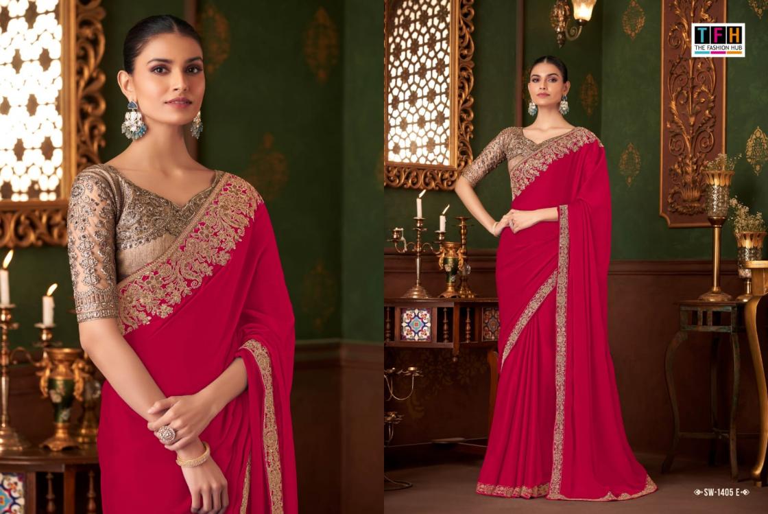 Looking for TFH SANDALWOOD 1405 HIT UNIQUE SILK CHIFFON SAREE EXPORTS Full Catalouge at Best Price? Buy Now TFH SANDALWOOD 1405 HIT UNIQUE SILK CHIFFON SAREE EXPORTS at Wholesale Rate of Rs 11700 with Total 6 Pcs from authroized dealer and supplier of TFH Brand. Cost of Each piece is just only Rs 1950 which is very low and affordable price to resale the product in your retail store. rrgandhi is Surat based Wholesale Supplier & Dealer of TFH Brand. Click on Brand name to Know more about Brand's products.