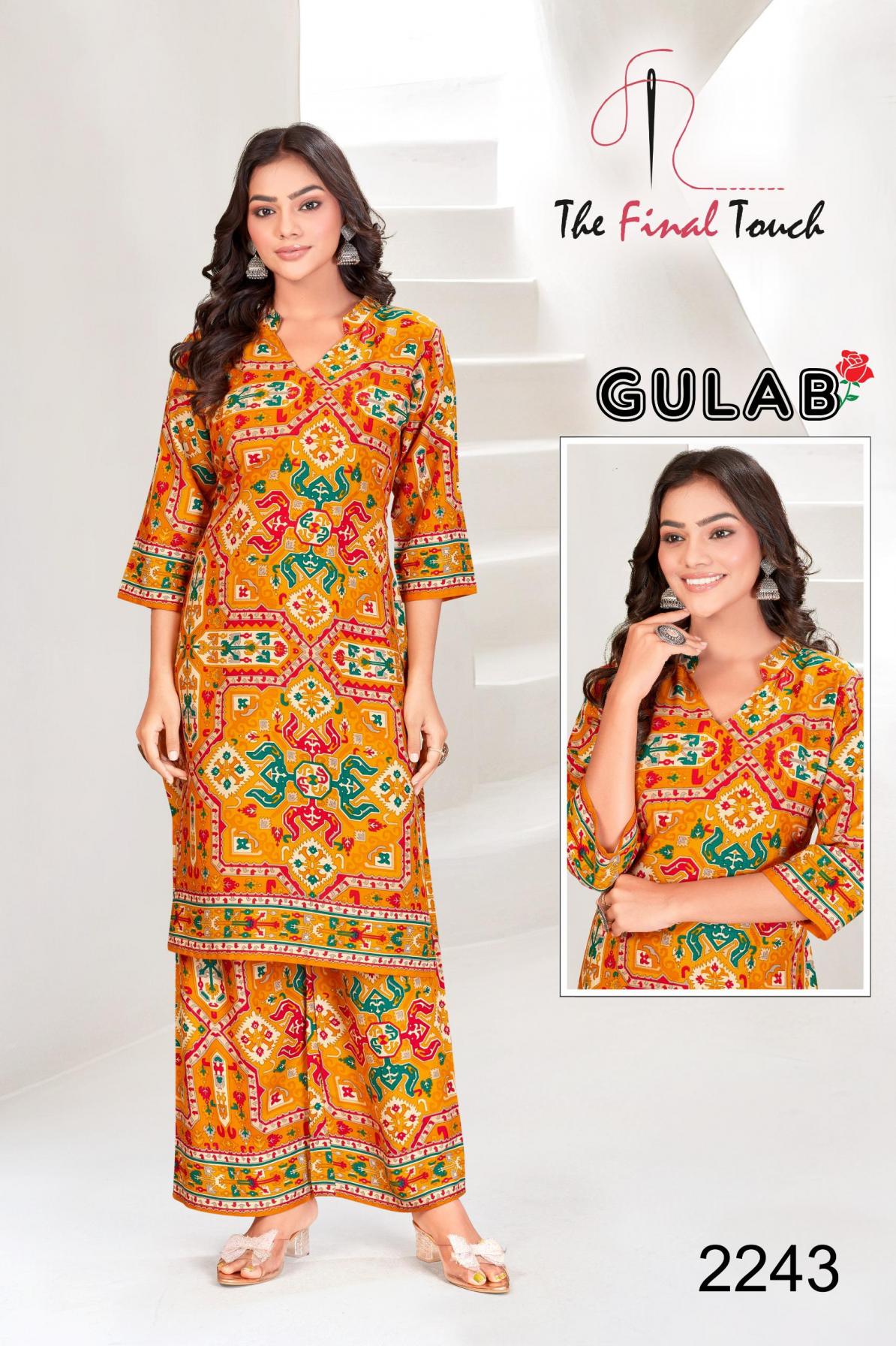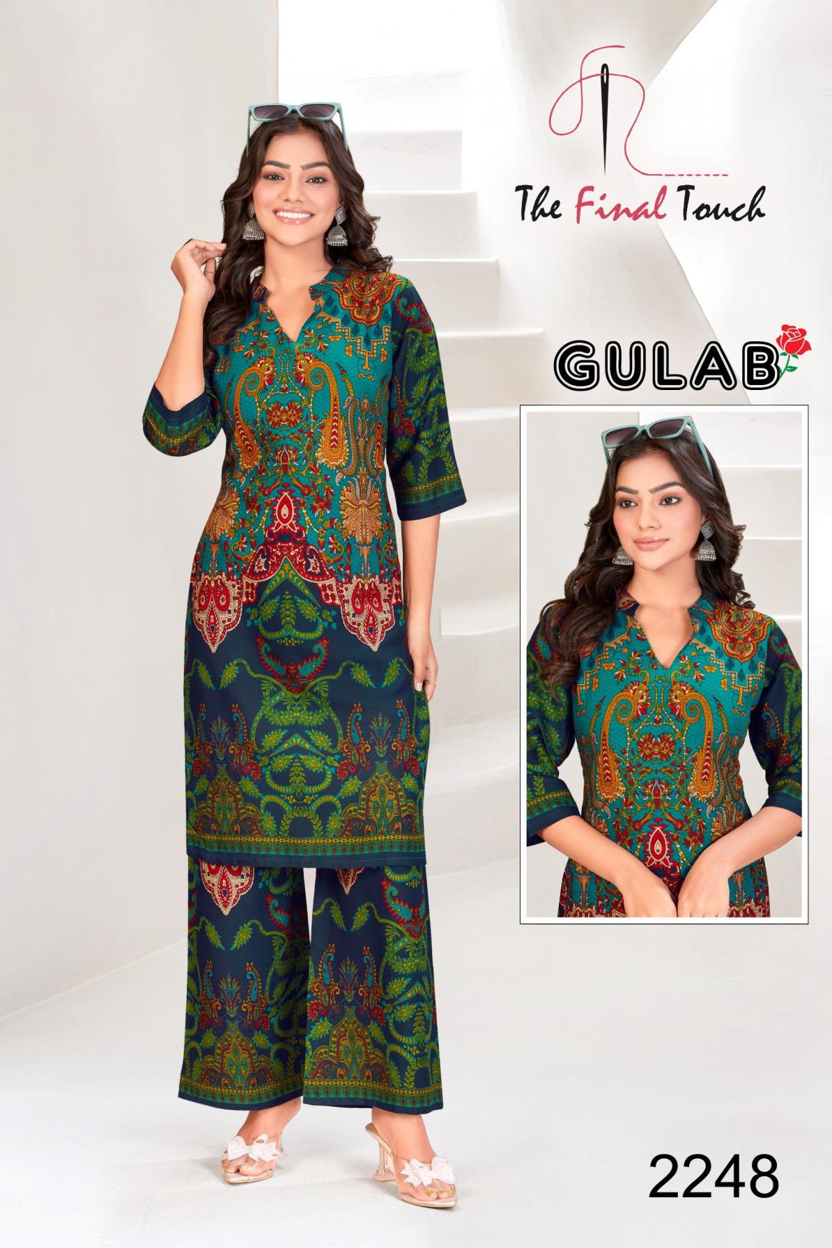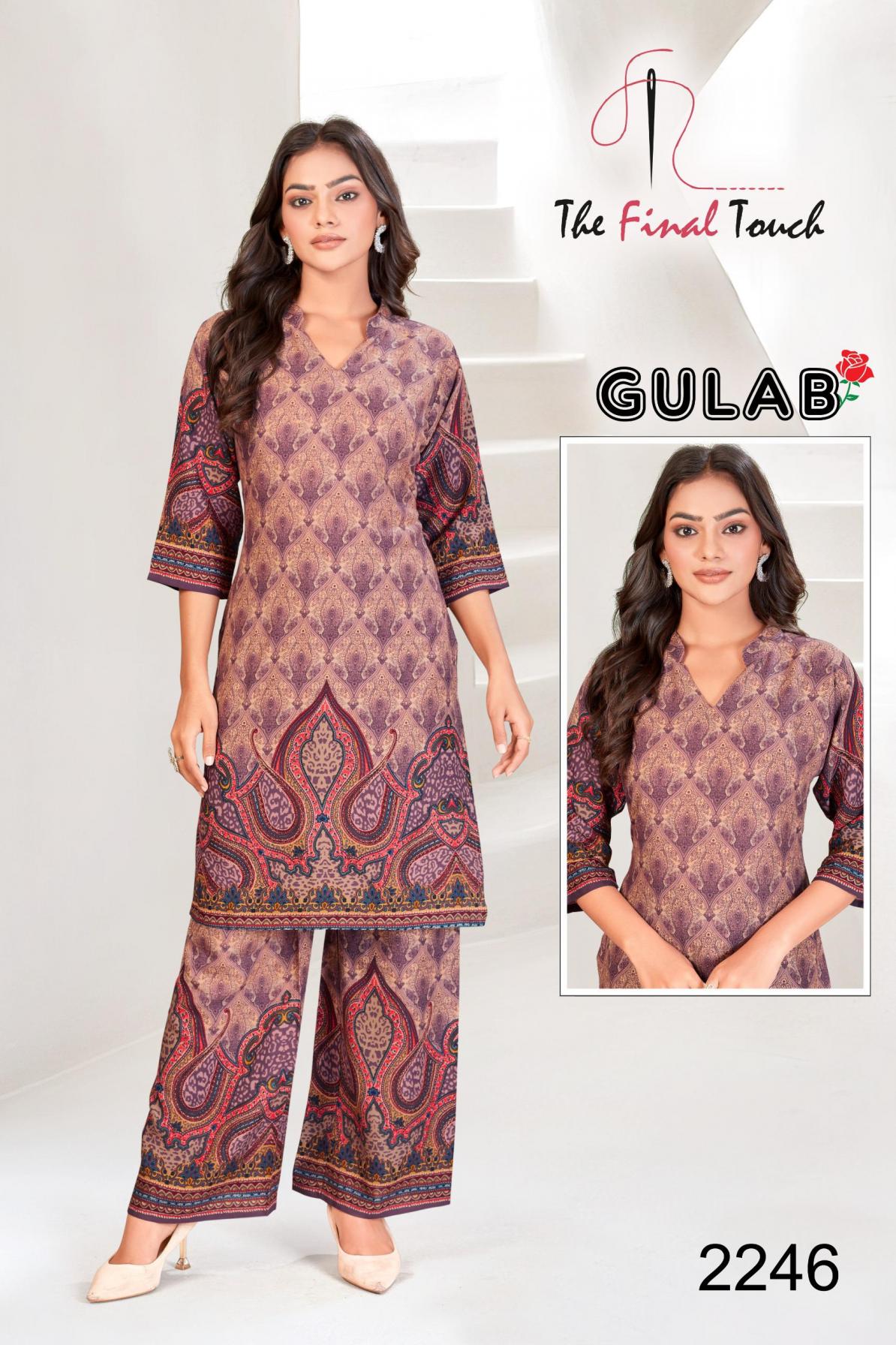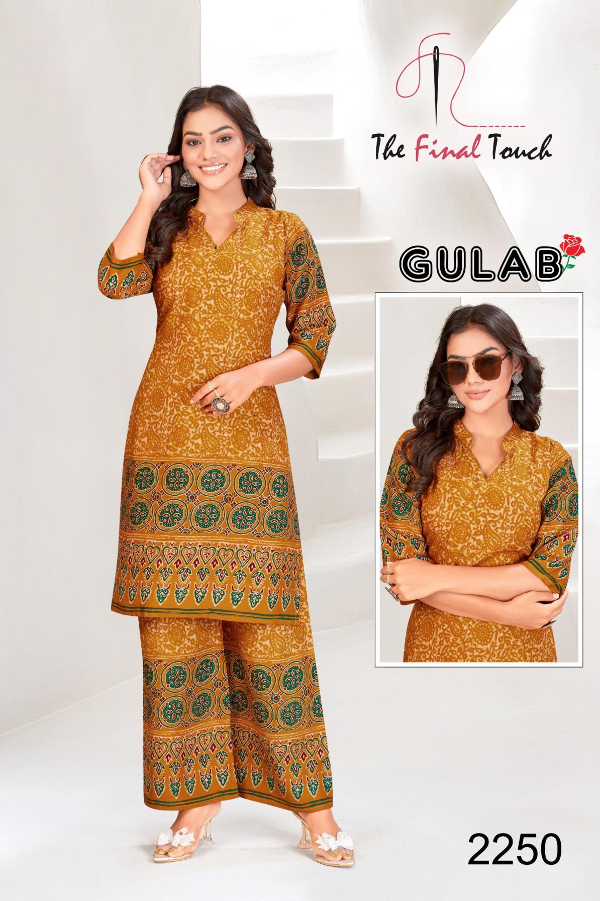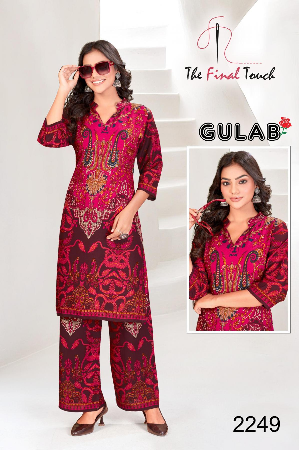 Looking for THE FINAL TOUCH R R FASHION GULAB DAILY WEAR FULL STITCH RAYON CO-ORD Full Catalouge at Best Price? Buy Now THE FINAL TOUCH R R FASHION GULAB DAILY WEAR FULL STITCH RAYON CO-ORD at Wholesale Rate of Rs 39200 with Total 70 Pcs from authroized dealer and supplier of The Final Touch Brand. Cost of Each piece is just only Rs 560 which is very low and affordable price to resale the product in your retail store. rrgandhi is Surat based Wholesale Supplier & Dealer of The Final Touch Brand. Click on Brand name to Know more about Brand's products.