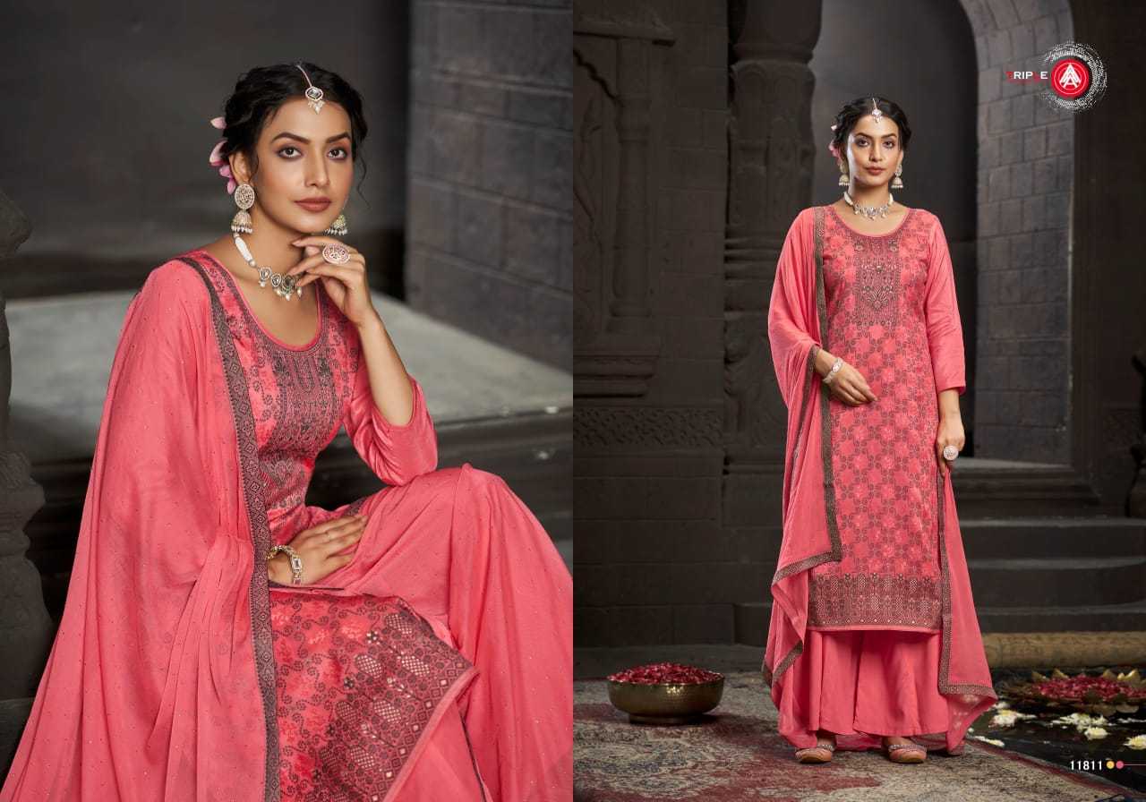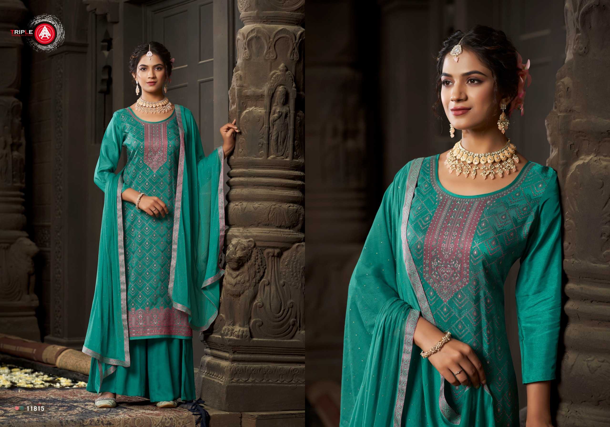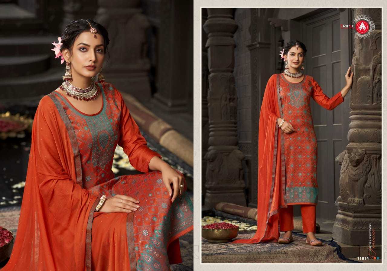 Looking for triple a jenika russian silk traditional wear unstitch 3pcs dress Full Catalouge at Best Price? Buy Now triple a jenika russian silk traditional wear unstitch 3pcs dress at Wholesale Rate of Rs 5094 with Total 6 Pcs from authroized dealer and supplier of Triple A Brand. Cost of Each piece is just only Rs 849 which is very low and affordable price to resale the product in your retail store. rrgandhi is Surat based Wholesale Supplier & Dealer of Triple A Brand. Click on Brand name to Know more about Brand's products.