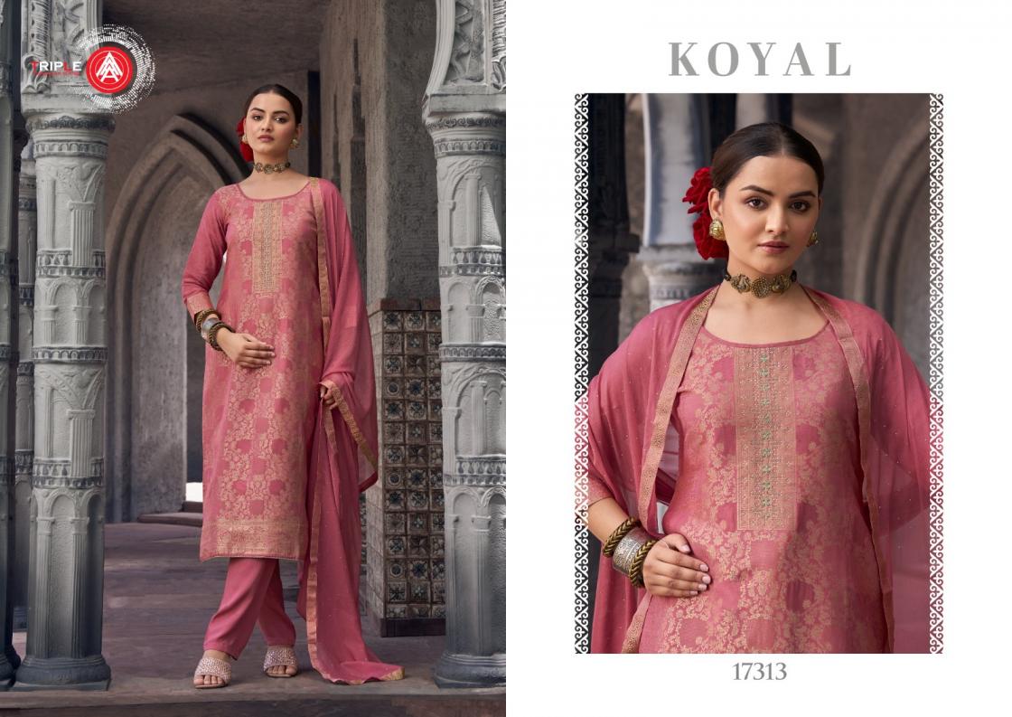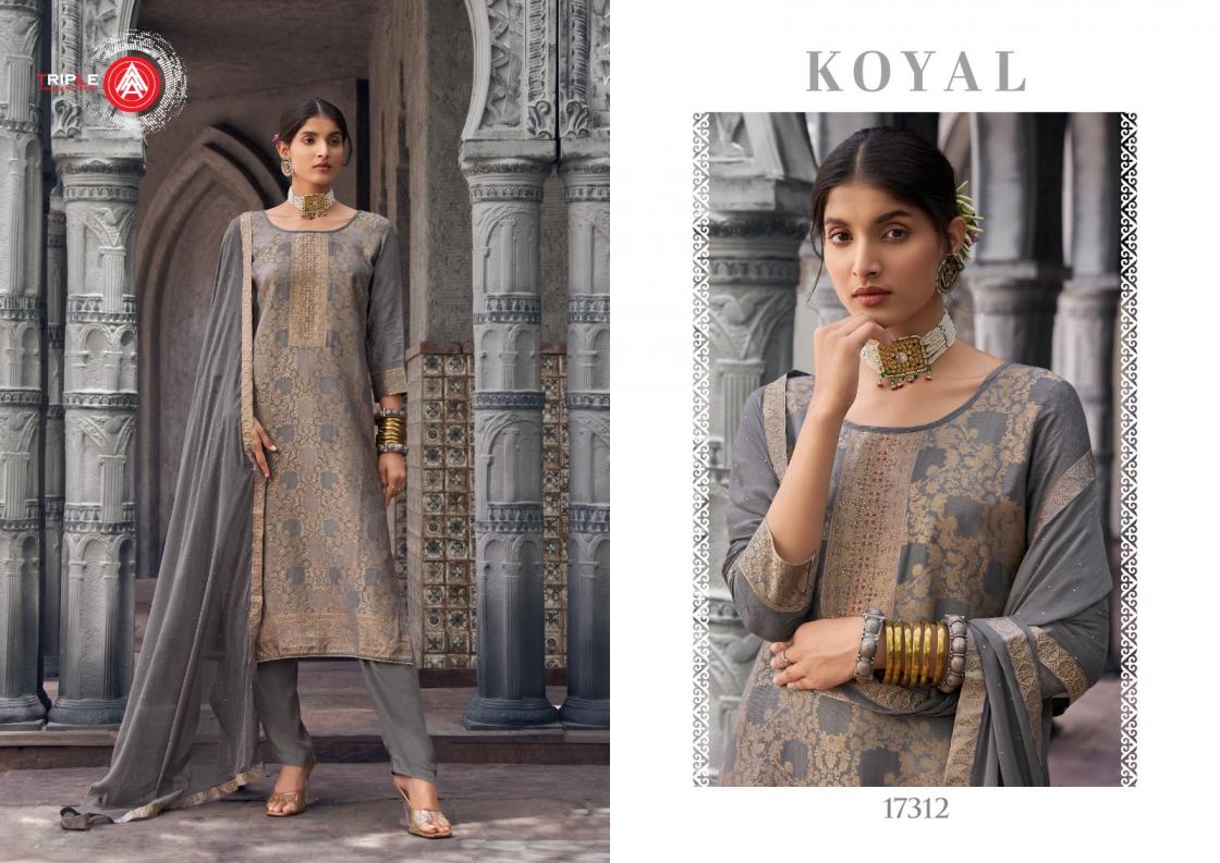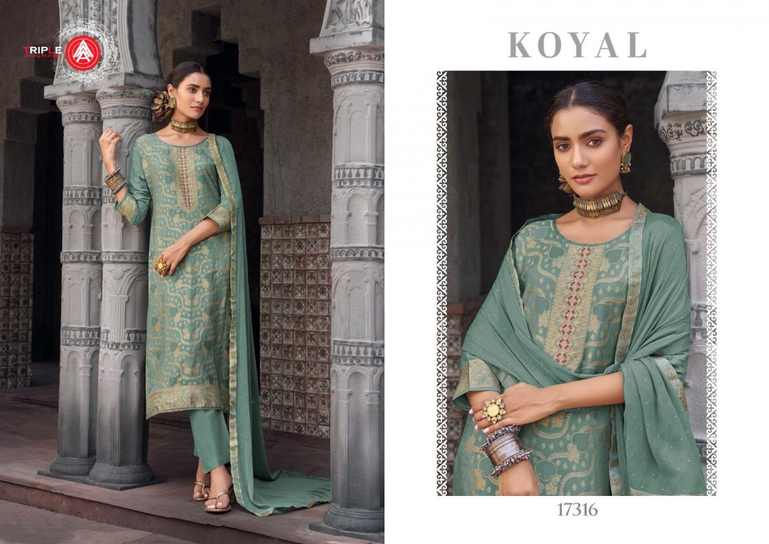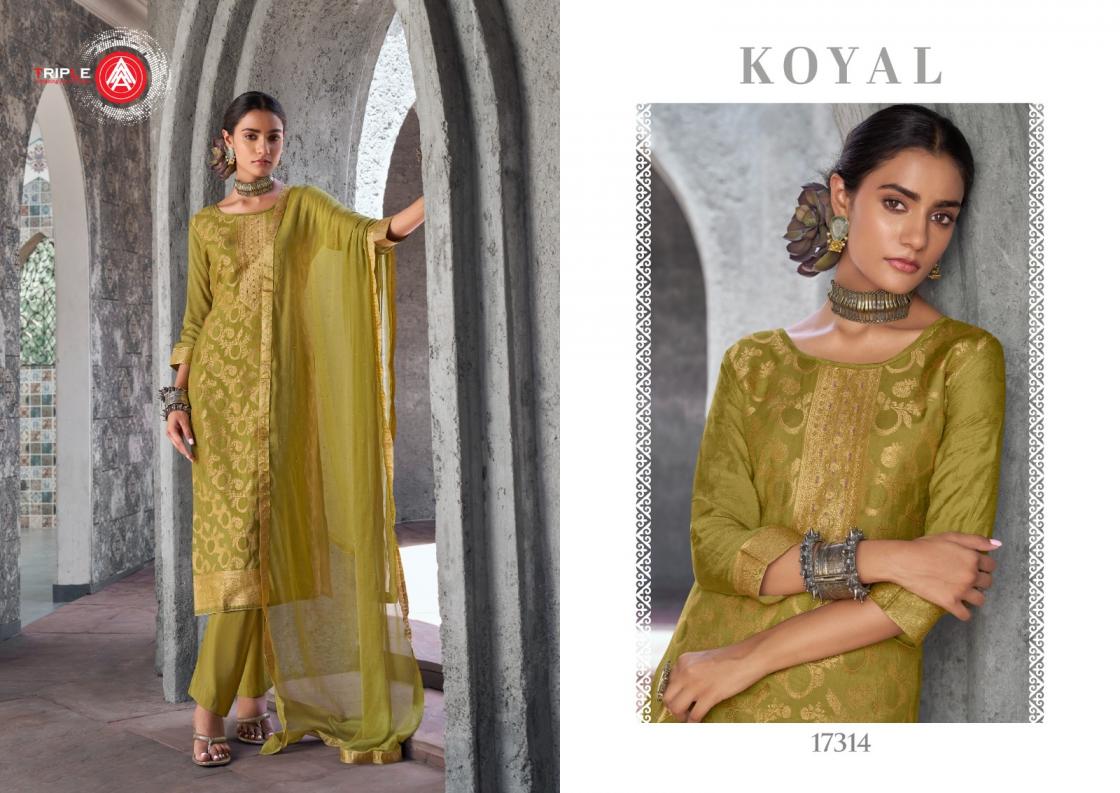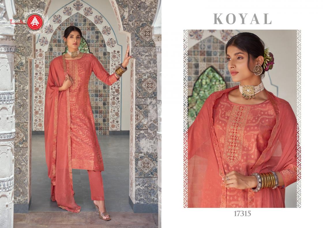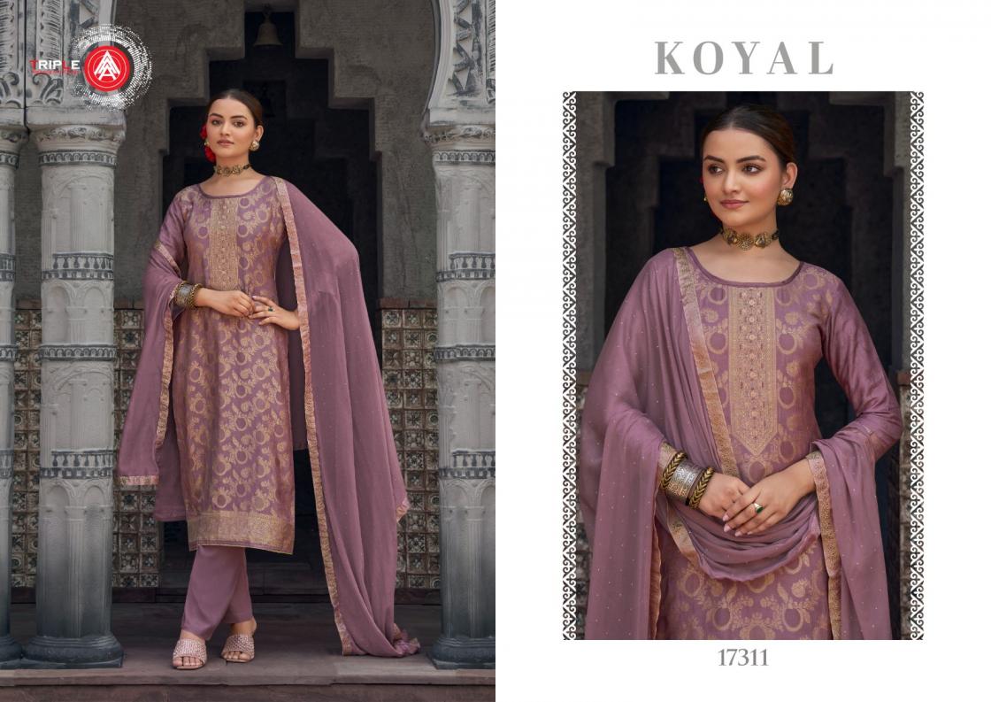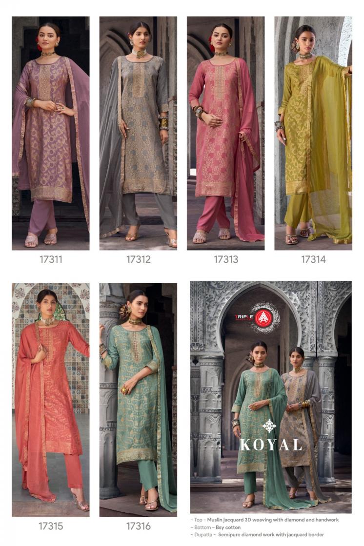 Looking for TRIPLE A KOYAL FULLY STITCH STYLISH MUSLIN JACQUARD PLUS SIZE SUITS Full Catalouge at Best Price? Buy Now TRIPLE A KOYAL FULLY STITCH STYLISH MUSLIN JACQUARD PLUS SIZE SUITS at Wholesale Rate of Rs 6894 with Total 6 Pcs from authroized dealer and supplier of Triple A Brand. Cost of Each piece is just only Rs 1149 which is very low and affordable price to resale the product in your retail store. rrgandhi is Surat based Wholesale Supplier & Dealer of Triple A Brand. Click on Brand name to Know more about Brand's products.