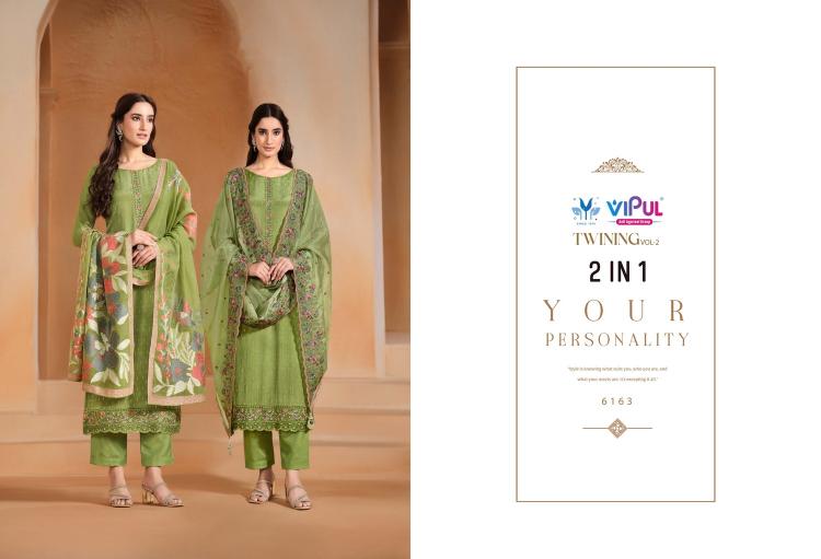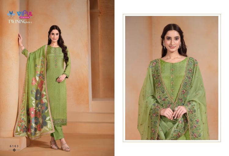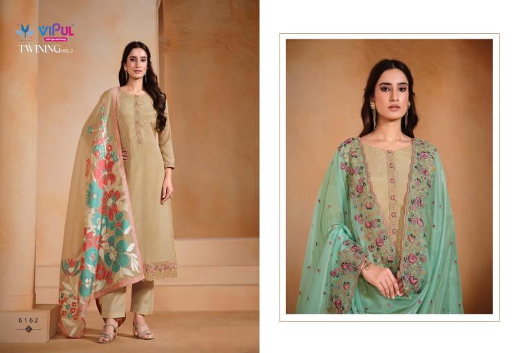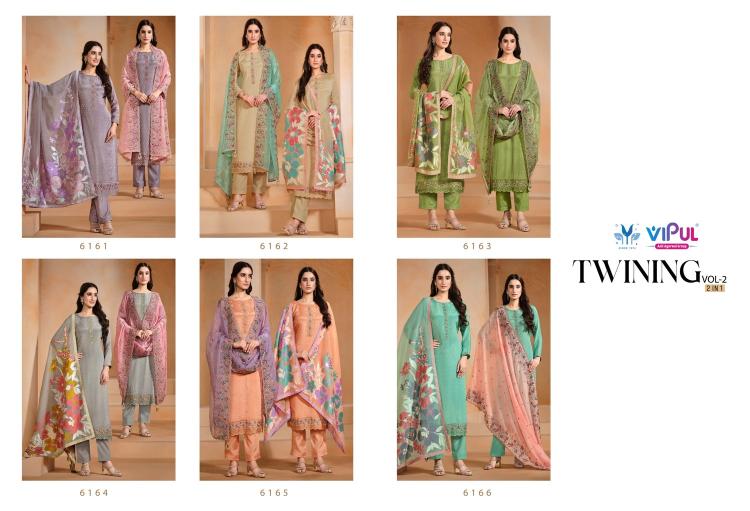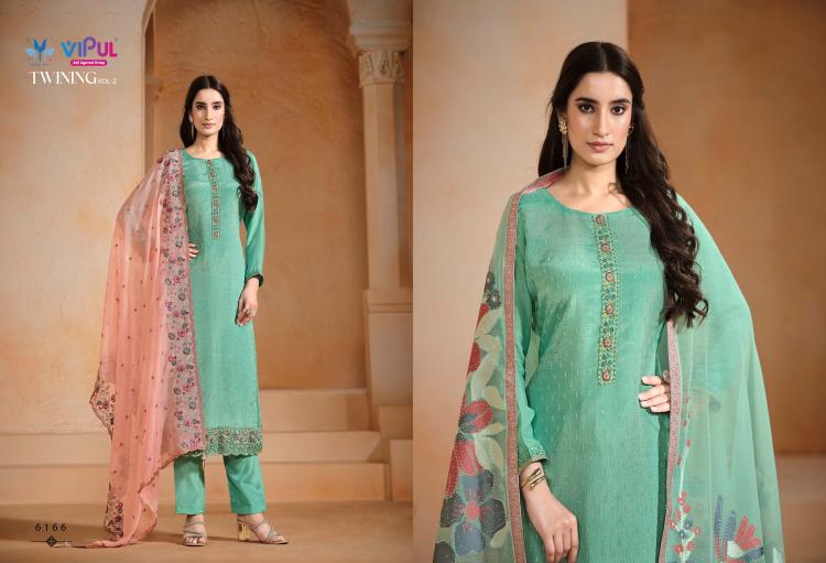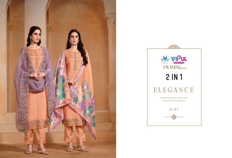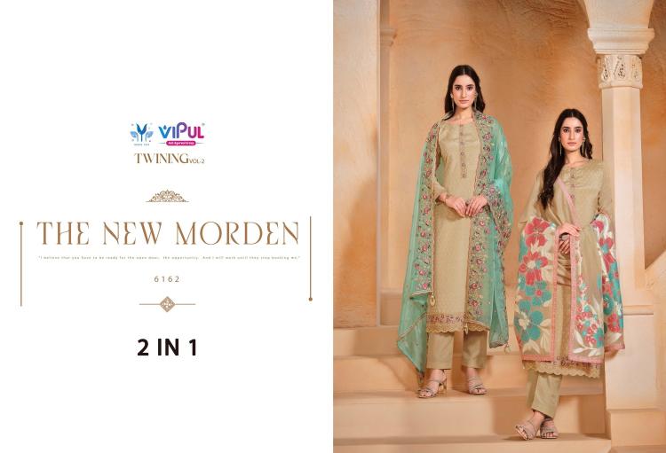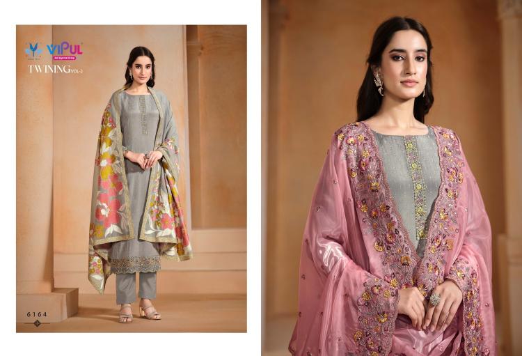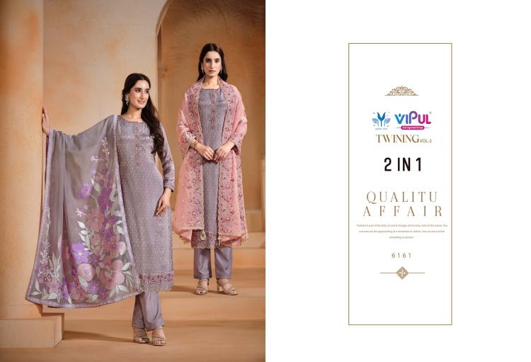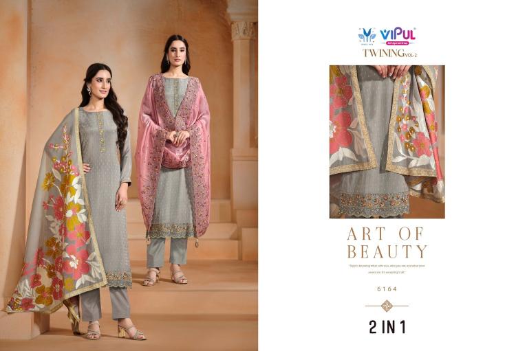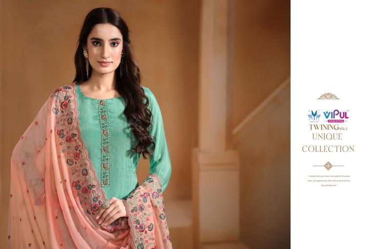 Looking for twining vol 2 by vipul fashion embroidery chinon chiffon unique suits Full Catalouge at Best Price? Buy Now twining vol 2 by vipul fashion embroidery chinon chiffon unique suits at Wholesale Rate of Rs 15096 with Total 6 Pcs from authroized dealer and supplier of Vipul Fashion Brand. Cost of Each piece is just only Rs 2516 which is very low and affordable price to resale the product in your retail store. rrgandhi is Surat based Wholesale Supplier & Dealer of Vipul Fashion Brand. Click on Brand name to Know more about Brand's products.