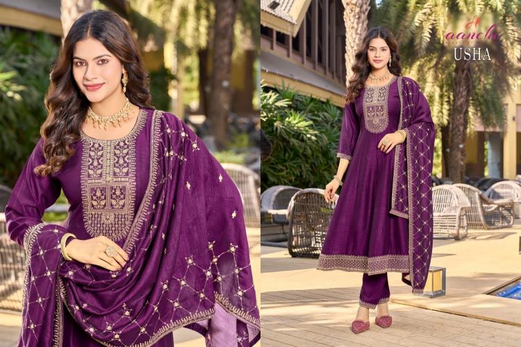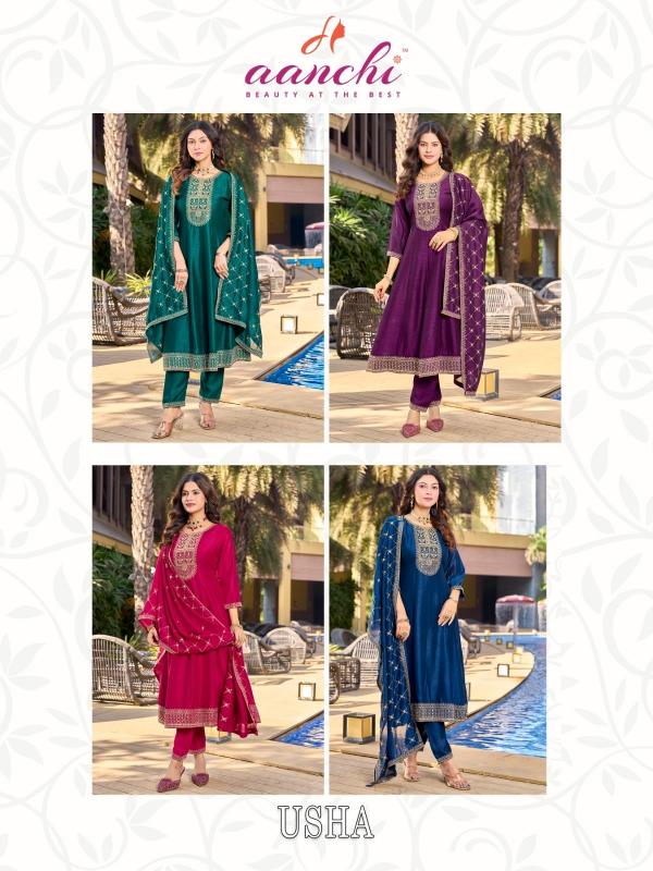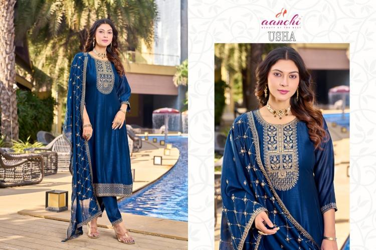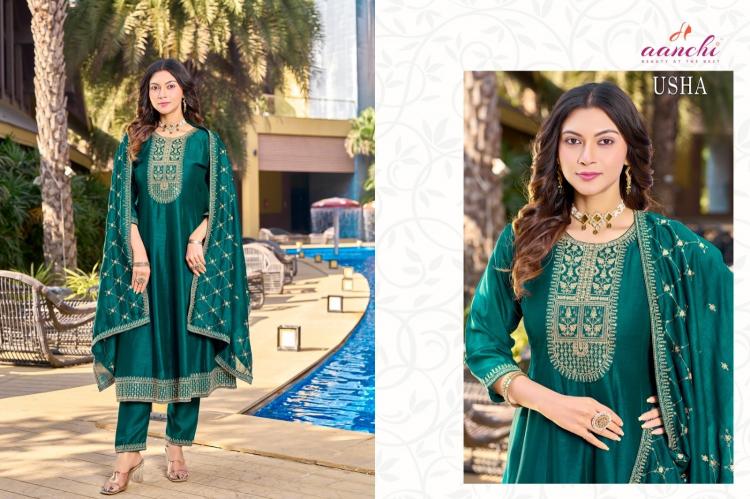 Looking for usha by aanchi readymade vichitra silk good salwar suits online Full Catalouge at Best Price? Buy Now usha by aanchi readymade vichitra silk good salwar suits online at Wholesale Rate of Rs 4920 with Total 4 Pcs from authroized dealer and supplier of Aanchi Brand. Cost of Each piece is just only Rs 1230 which is very low and affordable price to resale the product in your retail store. rrgandhi is Surat based Wholesale Supplier & Dealer of Aanchi Brand. Click on Brand name to Know more about Brand's products.