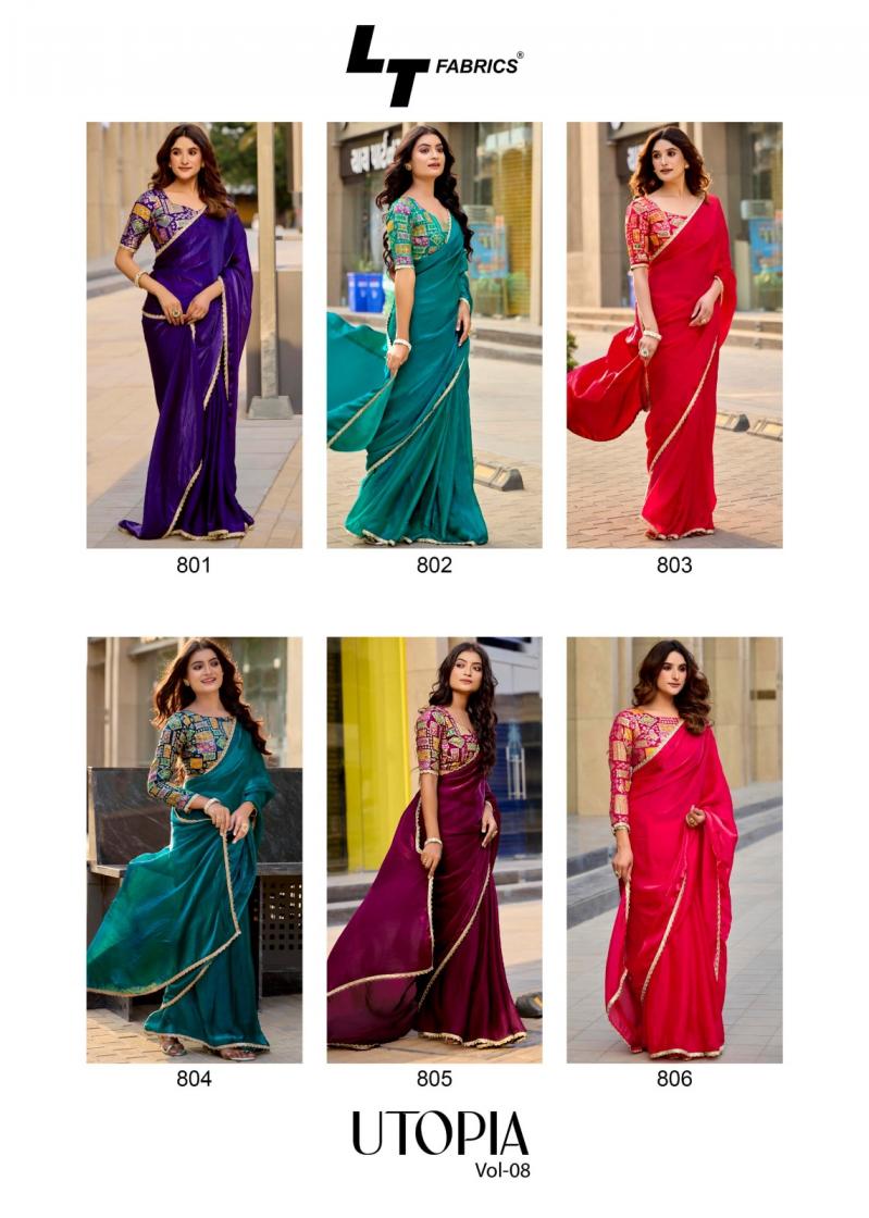 Looking for UTOPIA VOL 8 BY L.T.FASHION PARTY WEAR SAREE Full Catalouge at Best Price? Buy Now UTOPIA VOL 8 BY L.T.FASHION PARTY WEAR SAREE at Wholesale Rate of Rs 6150 with Total 6 Pcs from authroized dealer and supplier of LT Fashions Brand. Cost of Each piece is just only Rs 1025 which is very low and affordable price to resale the product in your retail store. rrgandhi is Surat based Wholesale Supplier & Dealer of LT Fashions Brand. Click on Brand name to Know more about Brand's products.
