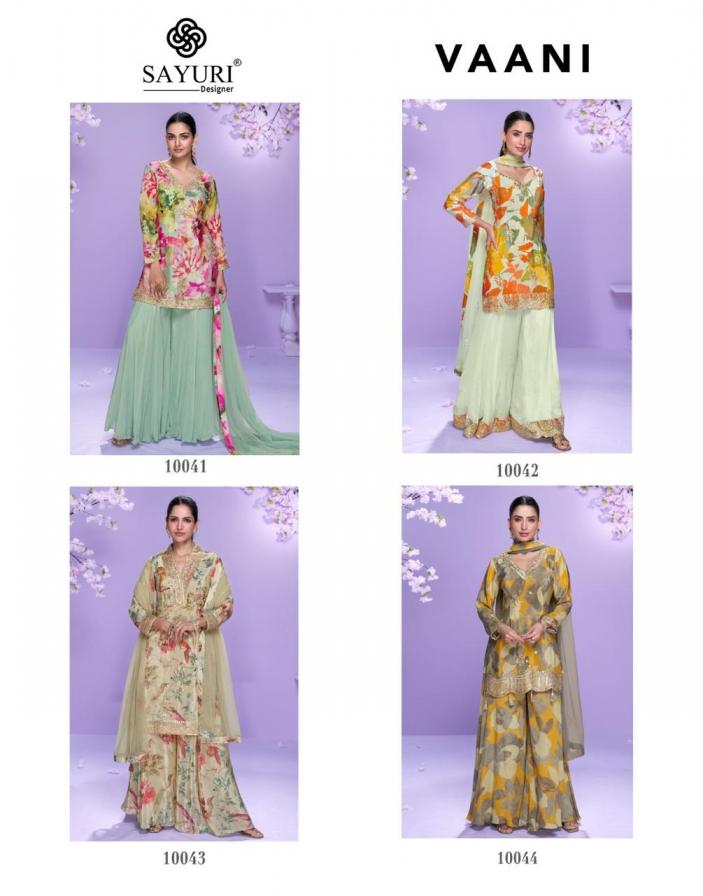 Looking for VAANI BY SAYURI DESIGNER CHINON SILK READYMADE PLAZZO 3PCS DRESS Full Catalouge at Best Price? Buy Now VAANI BY SAYURI DESIGNER CHINON SILK READYMADE PLAZZO 3PCS DRESS at Wholesale Rate of Rs 7996 with Total 4 Pcs from authroized dealer and supplier of Sayuri Designer Brand. Cost of Each piece is just only Rs 1999 which is very low and affordable price to resale the product in your retail store. rrgandhi is Surat based Wholesale Supplier & Dealer of Sayuri Designer Brand. Click on Brand name to Know more about Brand's products.