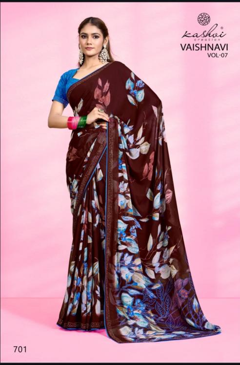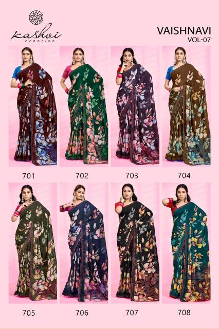 Looking for vaishnavi vol 7 by kashvi creation summer wear printed classic saree online Full Catalouge at Best Price? Buy Now vaishnavi vol 7 by kashvi creation summer wear printed classic saree online at Wholesale Rate of Rs 4840 with Total 8 Pcs from authroized dealer and supplier of Kashvi Creation Brand. Cost of Each piece is just only Rs 605 which is very low and affordable price to resale the product in your retail store. rrgandhi is Surat based Wholesale Supplier & Dealer of Kashvi Creation Brand. Click on Brand name to Know more about Brand's products.