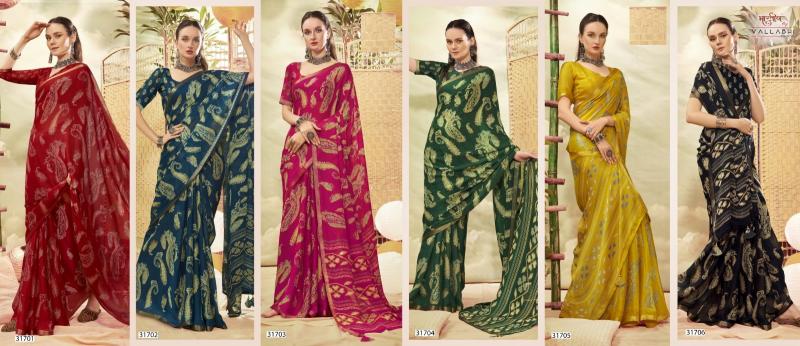Looking for vallabhi print shridha vol 3 georgette traditional wear sarees online Full Catalouge at Best Price? Buy Now vallabhi print shridha vol 3 georgette traditional wear sarees online at Wholesale Rate of Rs 4500 with Total 6 Pcs from authroized dealer and supplier of Vallabhi Prints Brand. Cost of Each piece is just only Rs 750 which is very low and affordable price to resale the product in your retail store. rrgandhi is Surat based Wholesale Supplier & Dealer of Vallabhi Prints Brand. Click on Brand name to Know more about Brand's products.