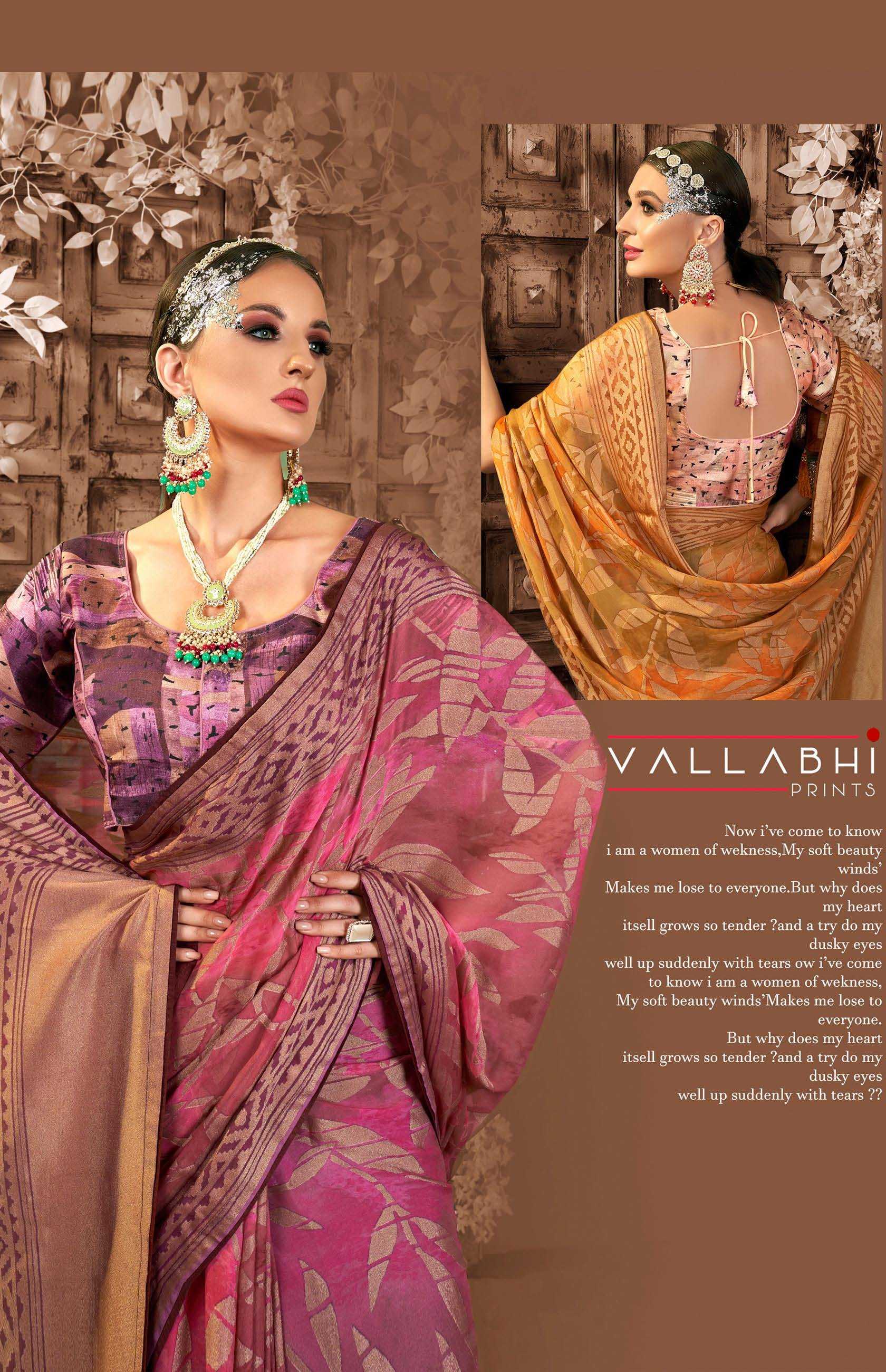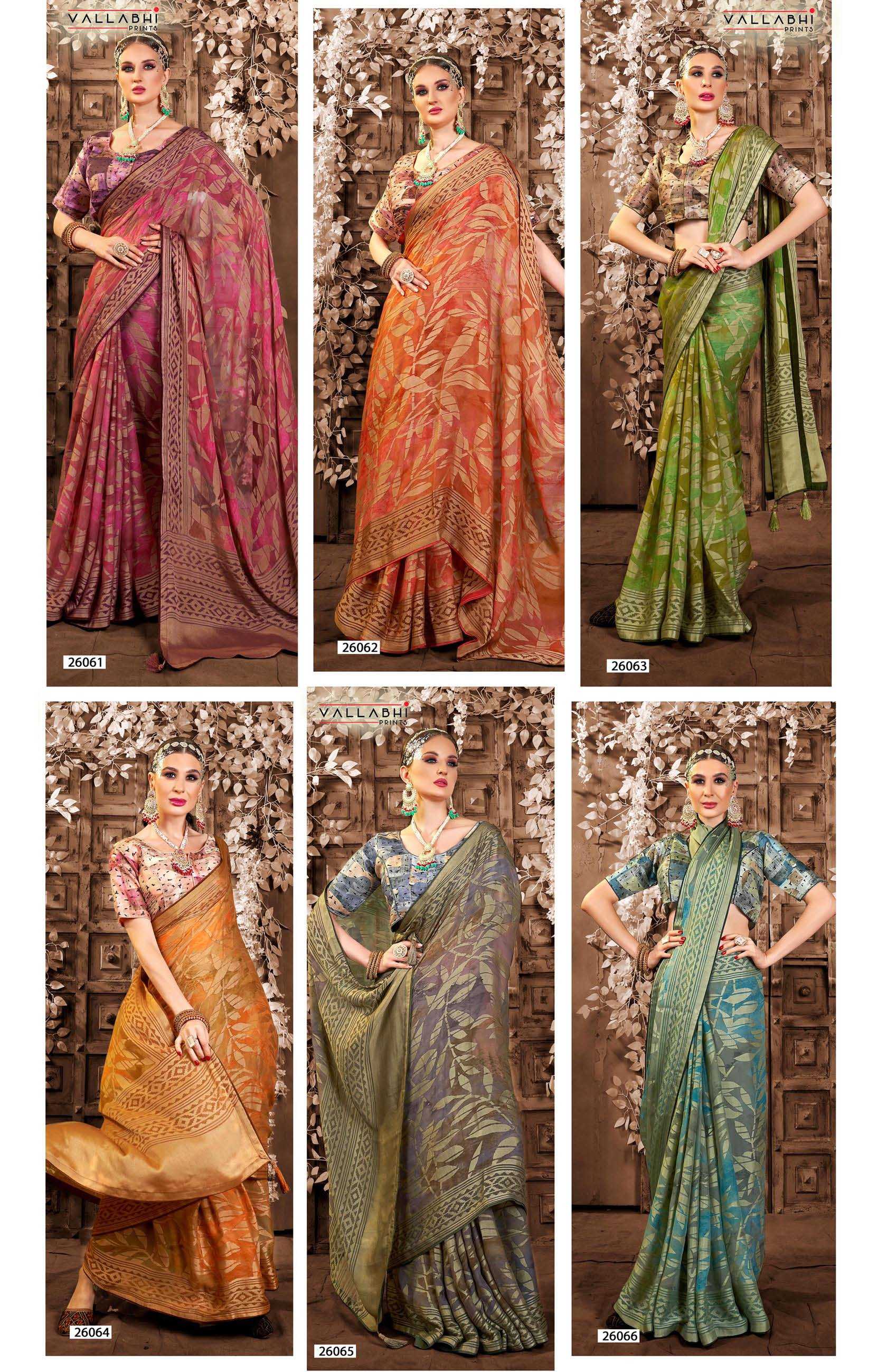 Looking for vallabhi prints amyra stylish party wear brasso saree wholesaler & exports Full Catalouge at Best Price? Buy Now vallabhi prints amyra stylish party wear brasso saree wholesaler & exports at Wholesale Rate of Rs 6630 with Total 6 Pcs from authroized dealer and supplier of Vallabhi Prints Brand. Cost of Each piece is just only Rs 1105 which is very low and affordable price to resale the product in your retail store. rrgandhi is Surat based Wholesale Supplier & Dealer of Vallabhi Prints Brand. Click on Brand name to Know more about Brand's products.