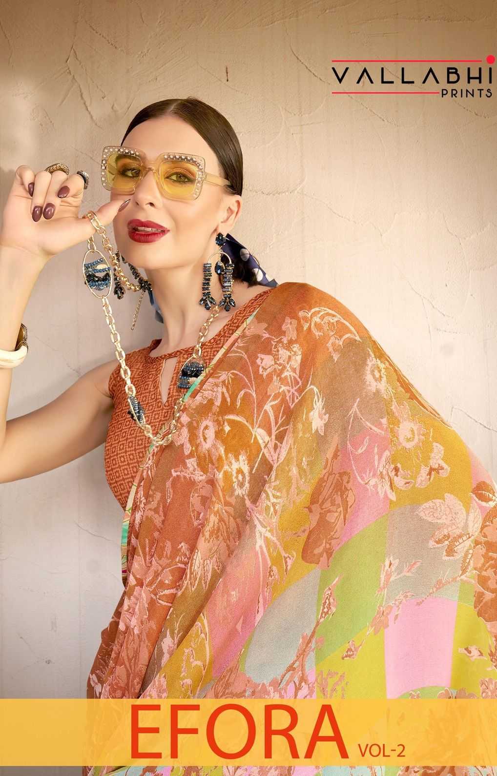 Looking for vallabhi prints efora vol 2 georgette fancy printed ethnic design saree Full Catalouge at Best Price? Buy Now vallabhi prints efora vol 2 georgette fancy printed ethnic design saree at Wholesale Rate of Rs 3450 with Total 6 Pcs from authroized dealer and supplier of Vallabhi Prints Brand. Cost of Each piece is just only Rs 575 which is very low and affordable price to resale the product in your retail store. rrgandhi is Surat based Wholesale Supplier & Dealer of Vallabhi Prints Brand. Click on Brand name to Know more about Brand's products.