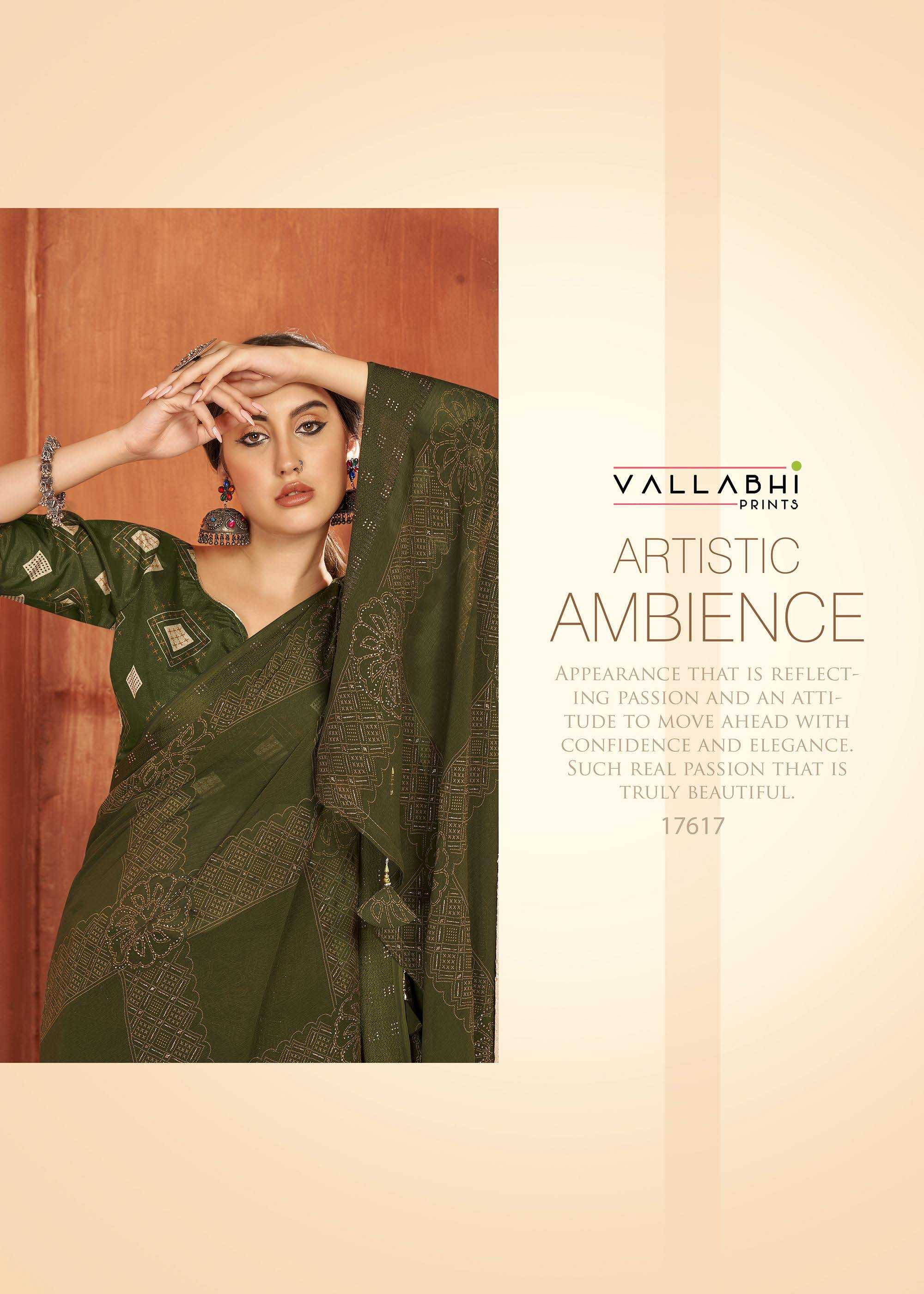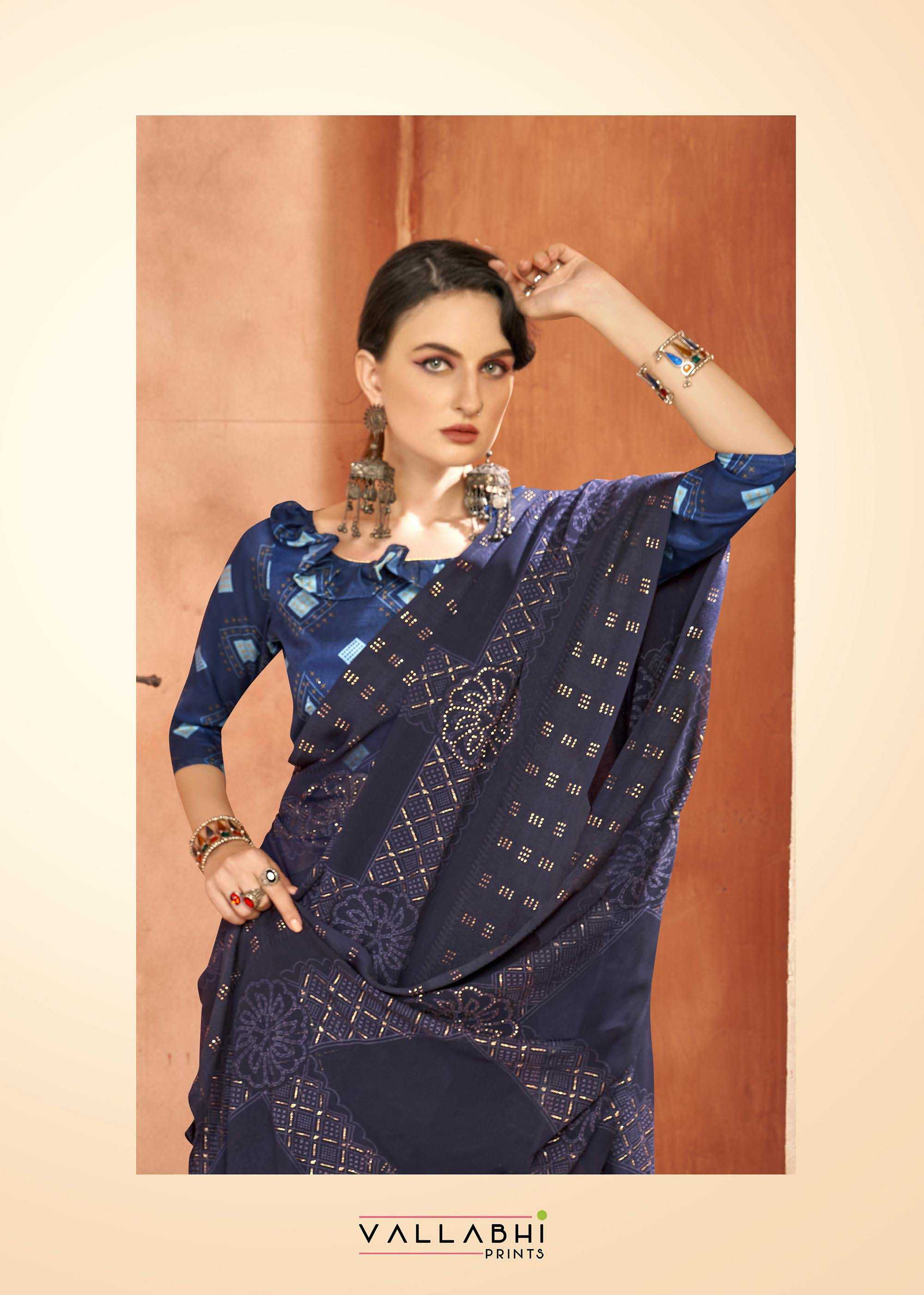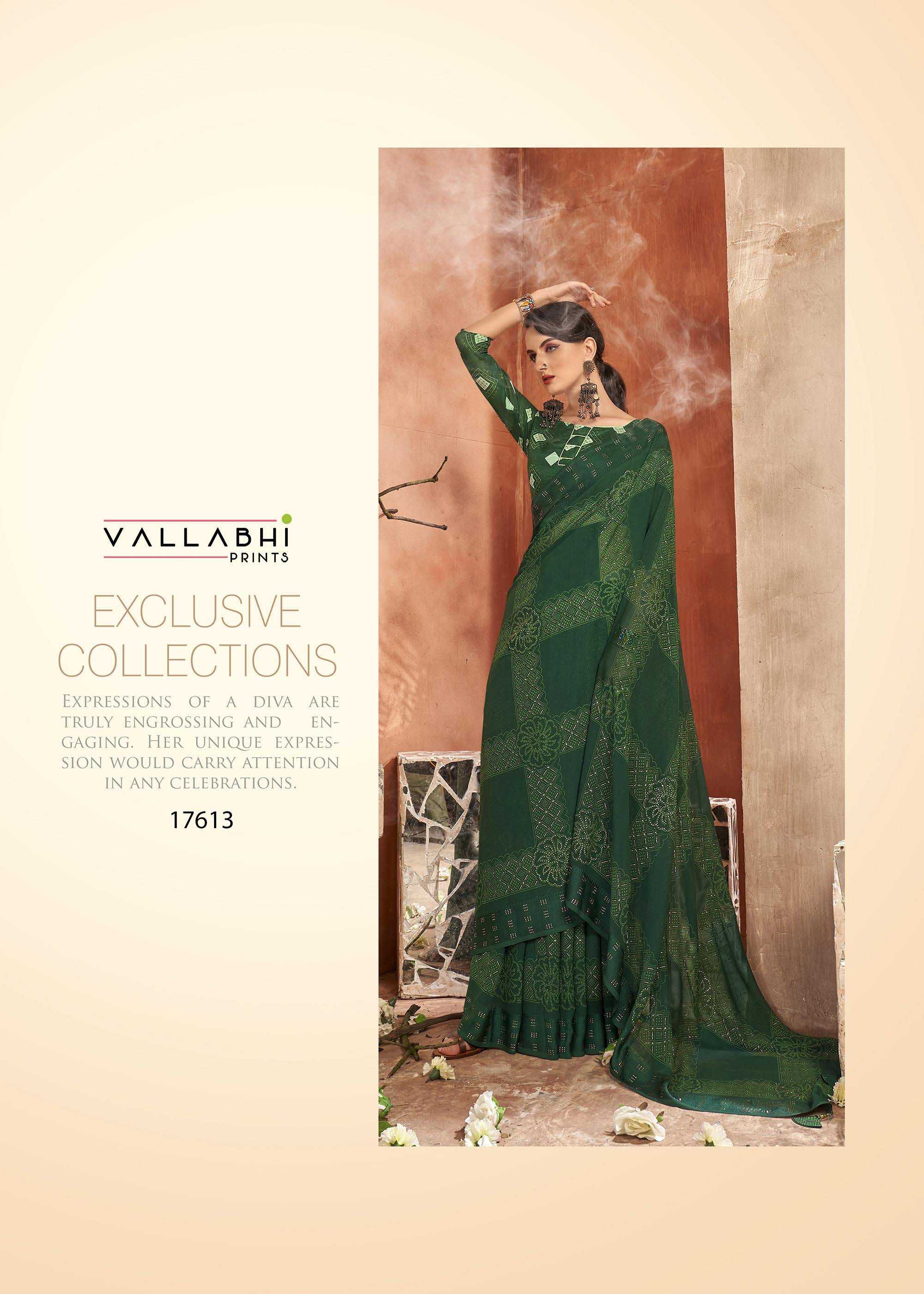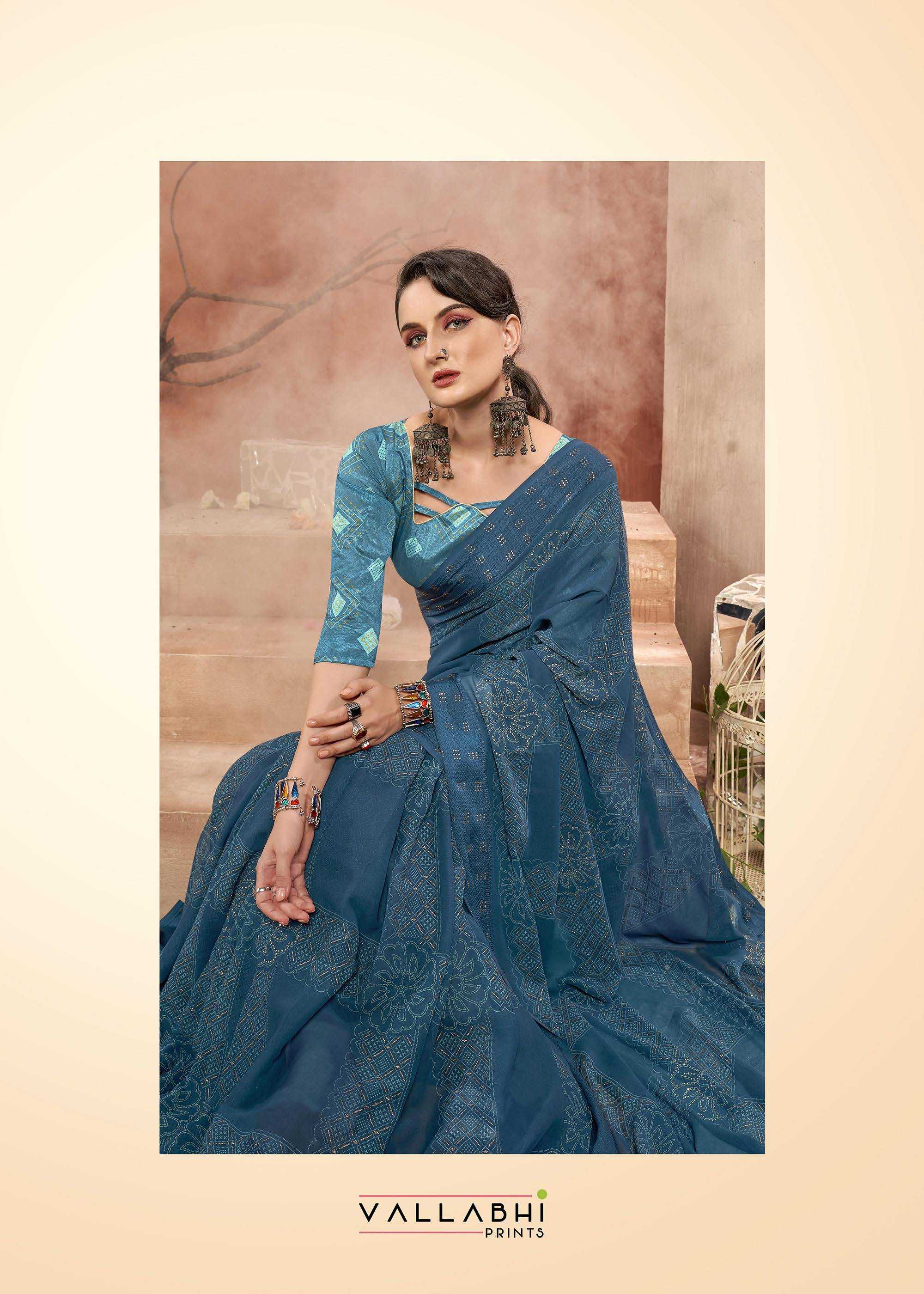Looking for vallabhi prints fragaria 17611-17618 launching amazing georgette saree exports Full Catalouge at Best Price? Buy Now vallabhi prints fragaria 17611-17618 launching amazing georgette saree exports at Wholesale Rate of Rs 7640 with Total 8 Pcs from authroized dealer and supplier of Vallabhi Prints Brand. Cost of Each piece is just only Rs 955 which is very low and affordable price to resale the product in your retail store. rrgandhi is Surat based Wholesale Supplier & Dealer of Vallabhi Prints Brand. Click on Brand name to Know more about Brand's products.