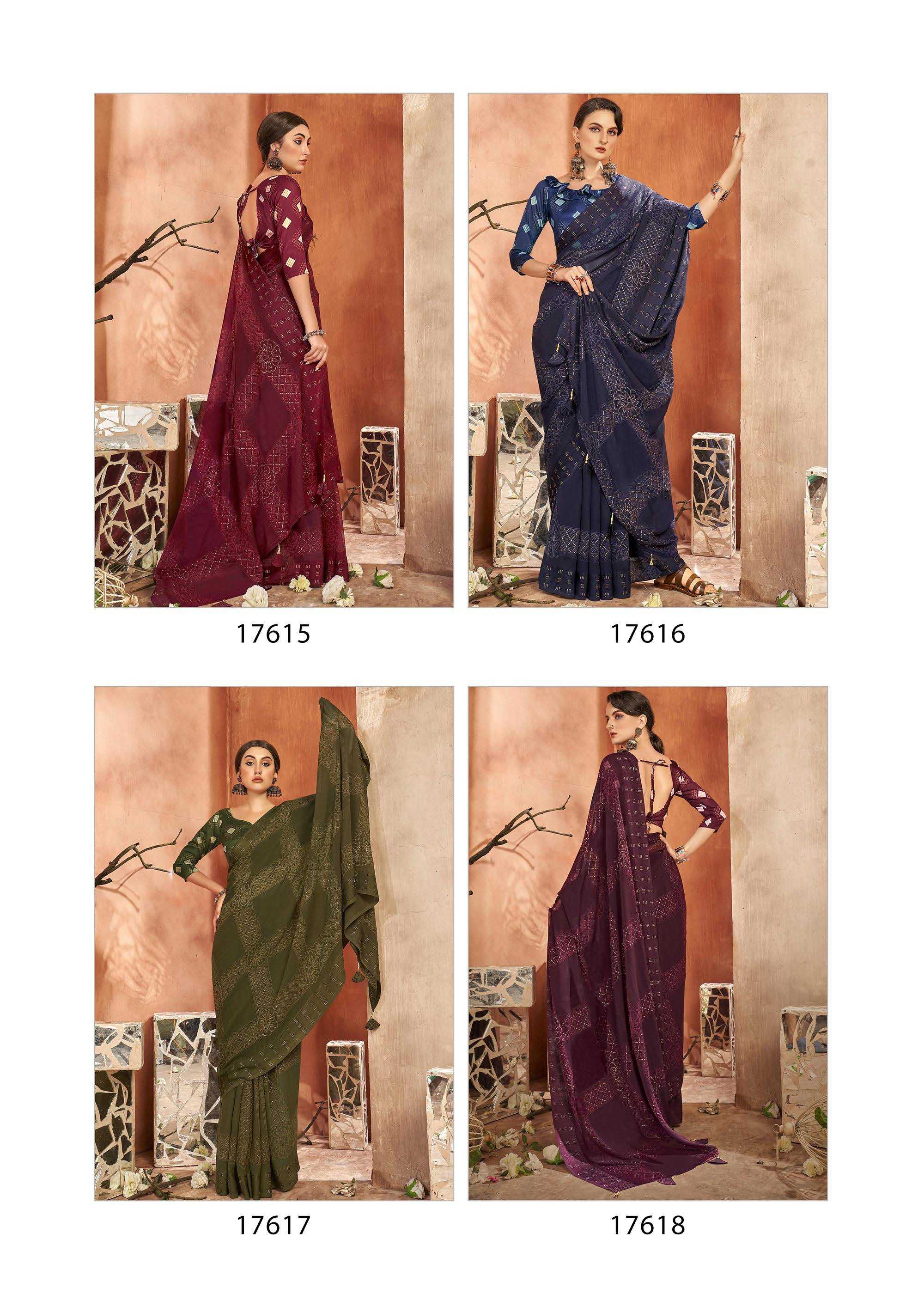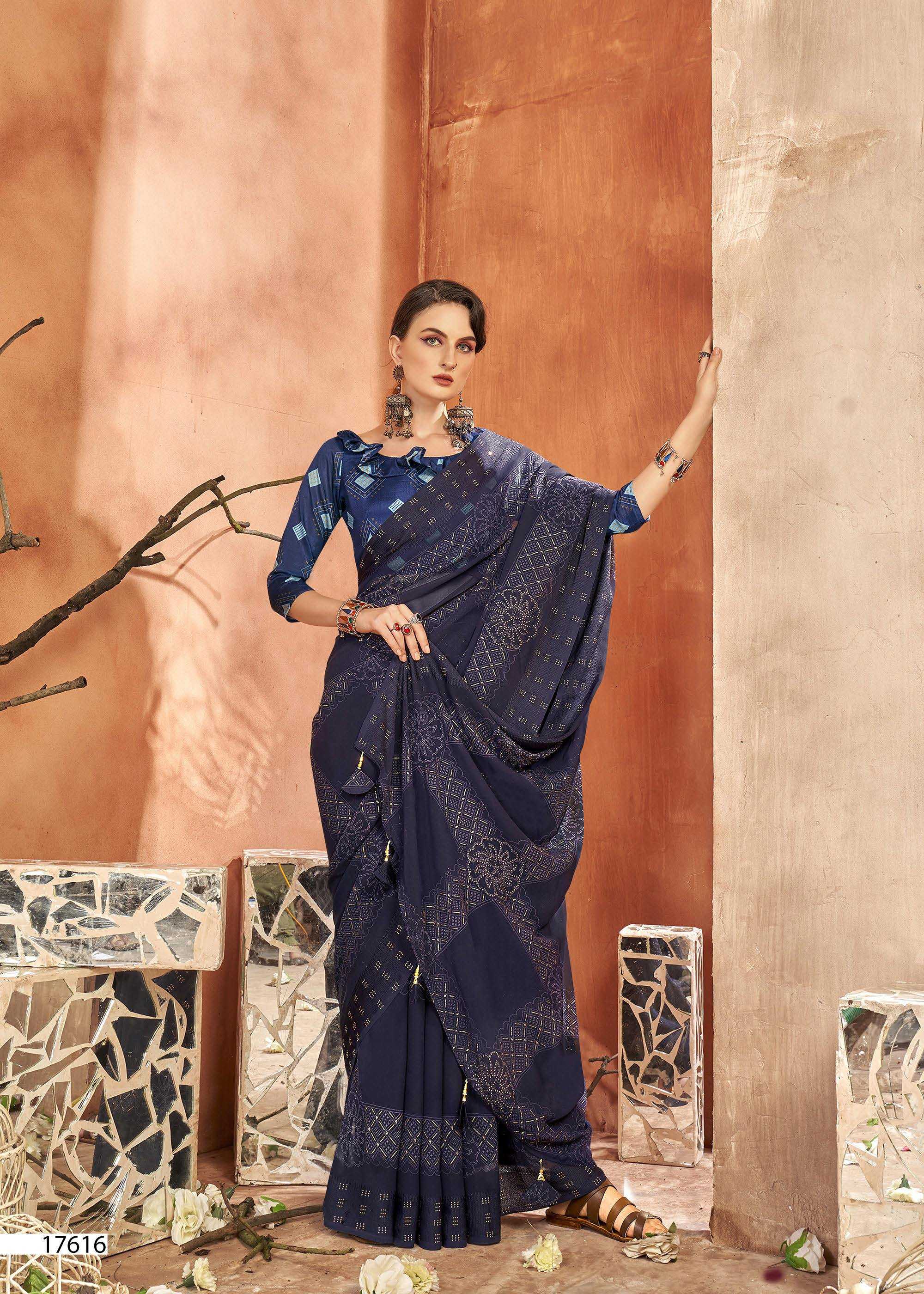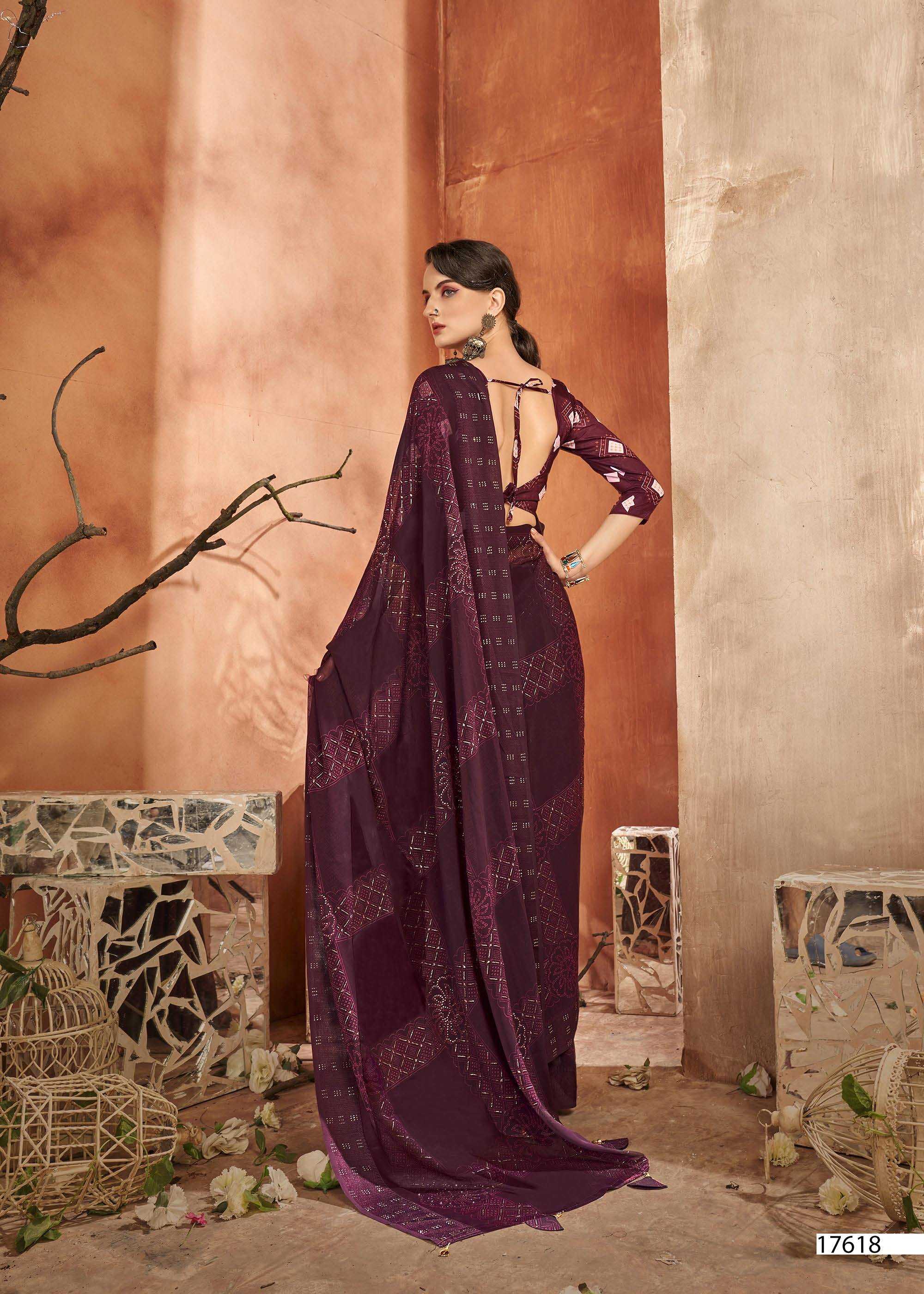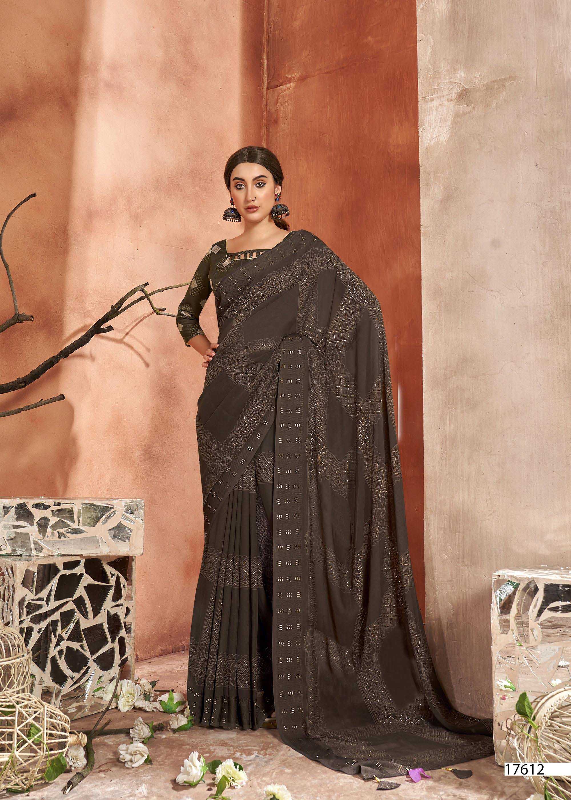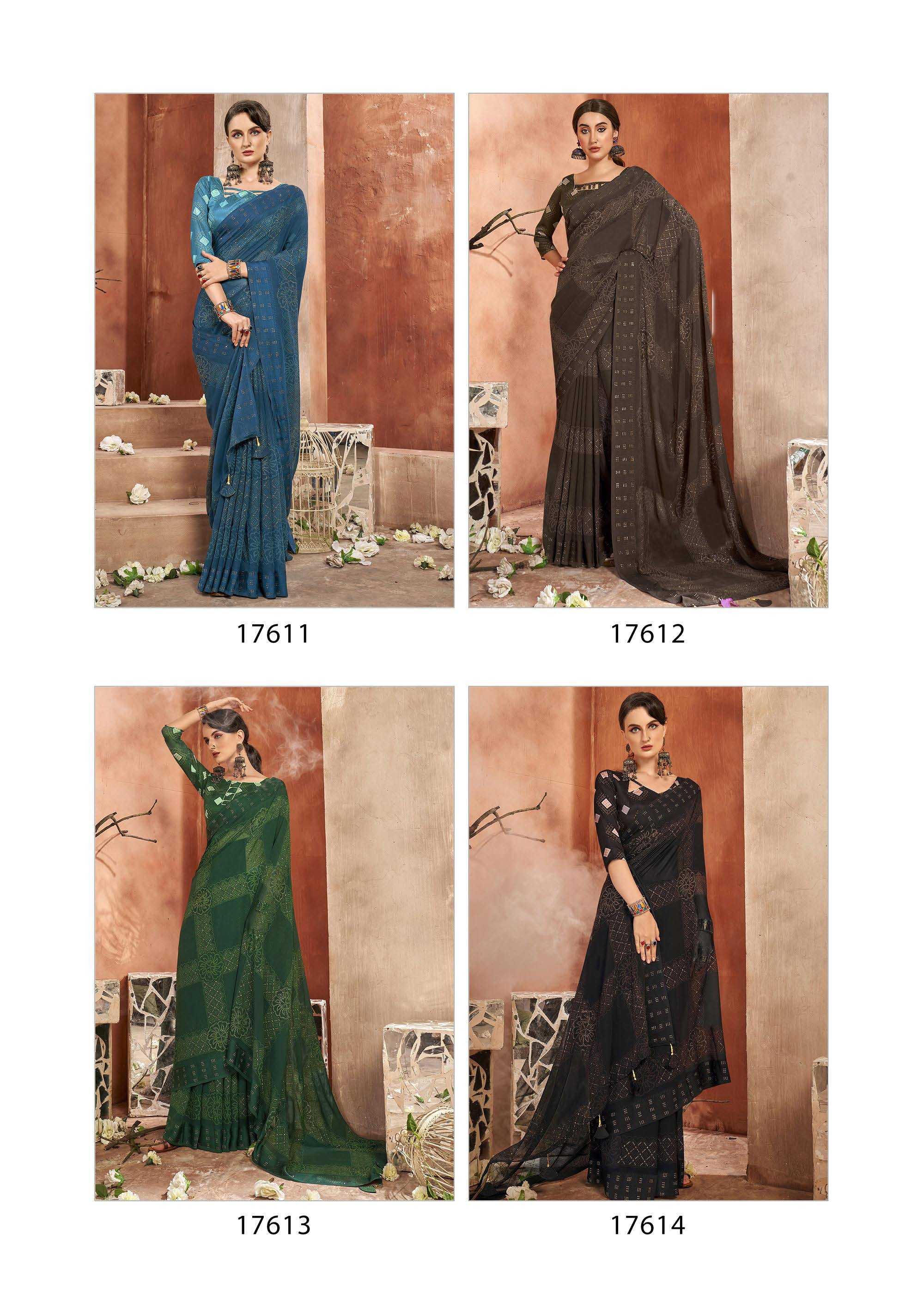 Looking for vallabhi prints fragaria 17611-17618 launching amazing georgette saree exports Full Catalouge at Best Price? Buy Now vallabhi prints fragaria 17611-17618 launching amazing georgette saree exports at Wholesale Rate of Rs 7640 with Total 8 Pcs from authroized dealer and supplier of Vallabhi Prints Brand. Cost of Each piece is just only Rs 955 which is very low and affordable price to resale the product in your retail store. rrgandhi is Surat based Wholesale Supplier & Dealer of Vallabhi Prints Brand. Click on Brand name to Know more about Brand's products.