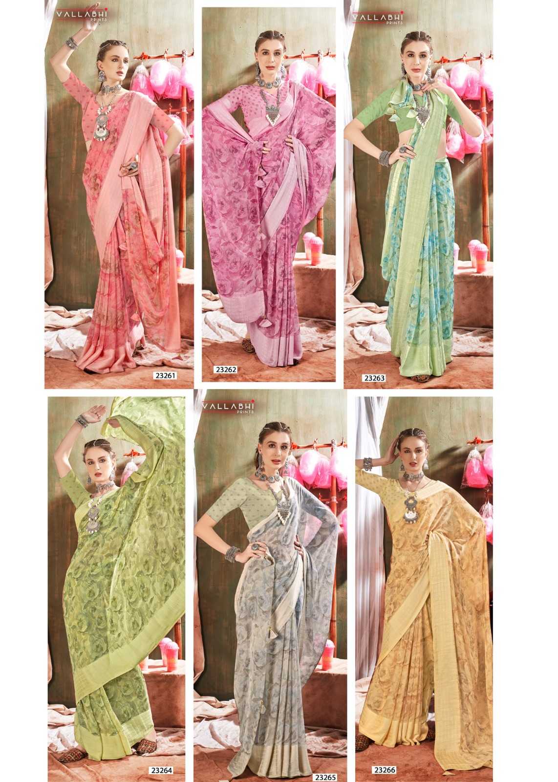 Looking for vallabhi prints kavyanshi vol 1 georgette beautiful saree with blouse Full Catalouge at Best Price? Buy Now vallabhi prints kavyanshi vol 1 georgette beautiful saree with blouse at Wholesale Rate of Rs 4290 with Total 6 Pcs from authroized dealer and supplier of Vallabhi Prints Brand. Cost of Each piece is just only Rs 715 which is very low and affordable price to resale the product in your retail store. rrgandhi is Surat based Wholesale Supplier & Dealer of Vallabhi Prints Brand. Click on Brand name to Know more about Brand's products.