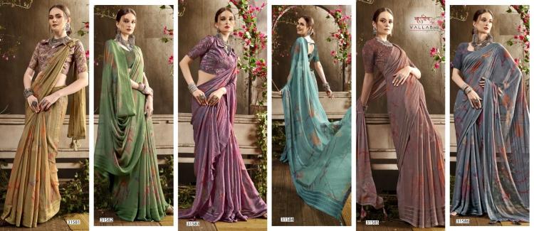 Looking for vallabhi prints kizza vol 11 shimmer georgette popular design saree exports Full Catalouge at Best Price? Buy Now vallabhi prints kizza vol 11 shimmer georgette popular design saree exports at Wholesale Rate of Rs 4890 with Total 6 Pcs from authroized dealer and supplier of Vallabhi Prints Brand. Cost of Each piece is just only Rs 815 which is very low and affordable price to resale the product in your retail store. rrgandhi is Surat based Wholesale Supplier & Dealer of Vallabhi Prints Brand. Click on Brand name to Know more about Brand's products.