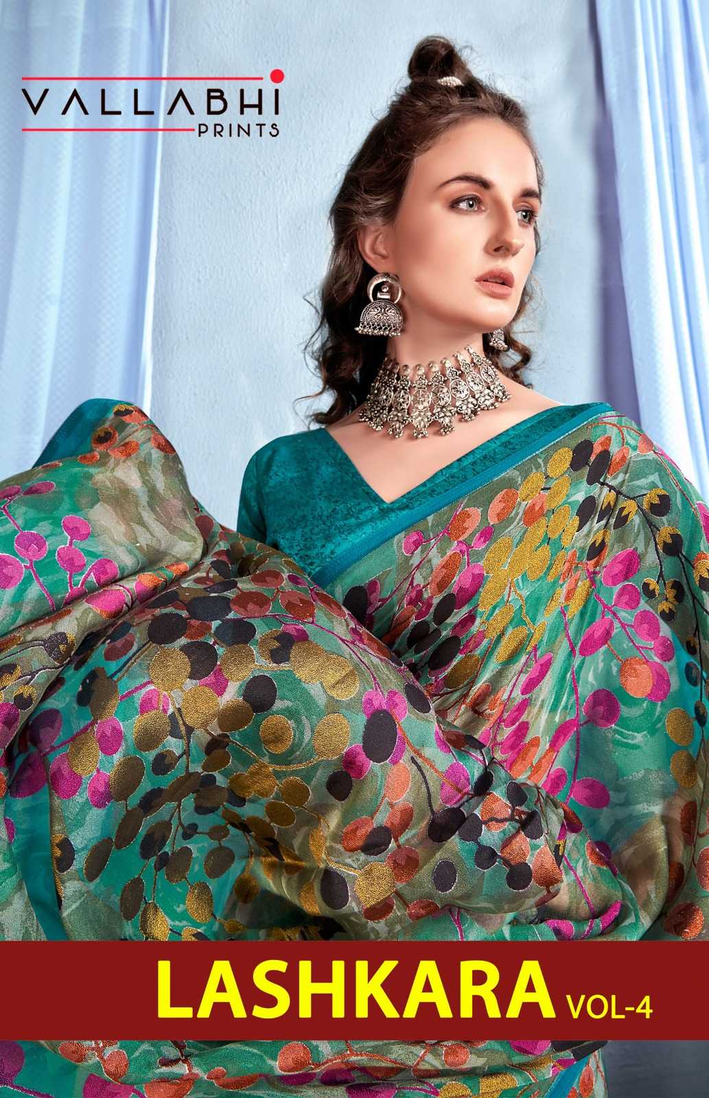 Looking for vallabhi prints lashkara vol 4 occasion wear brasso saree Full Catalouge at Best Price? Buy Now vallabhi prints lashkara vol 4 occasion wear brasso saree at Wholesale Rate of Rs 6420 with Total 6 Pcs from authroized dealer and supplier of Vallabhi Prints Brand. Cost of Each piece is just only Rs 1070 which is very low and affordable price to resale the product in your retail store. rrgandhi is Surat based Wholesale Supplier & Dealer of Vallabhi Prints Brand. Click on Brand name to Know more about Brand's products.