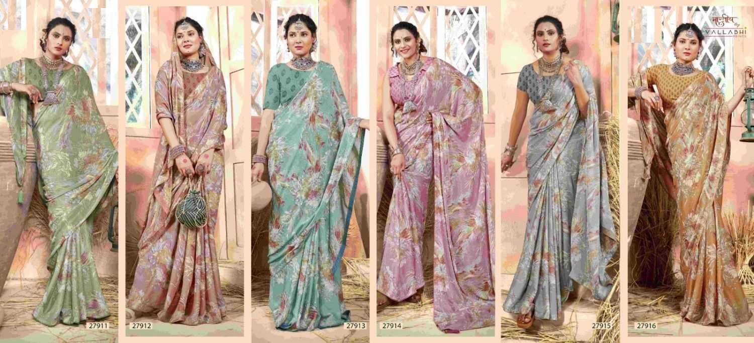 Looking for vallabhi prints launch tithi vol 3 fancy georgette colours addition saree Full Catalouge at Best Price? Buy Now vallabhi prints launch tithi vol 3 fancy georgette colours addition saree at Wholesale Rate of Rs 4290 with Total 6 Pcs from authroized dealer and supplier of Vallabhi Prints Brand. Cost of Each piece is just only Rs 715 which is very low and affordable price to resale the product in your retail store. rrgandhi is Surat based Wholesale Supplier & Dealer of Vallabhi Prints Brand. Click on Brand name to Know more about Brand's products.