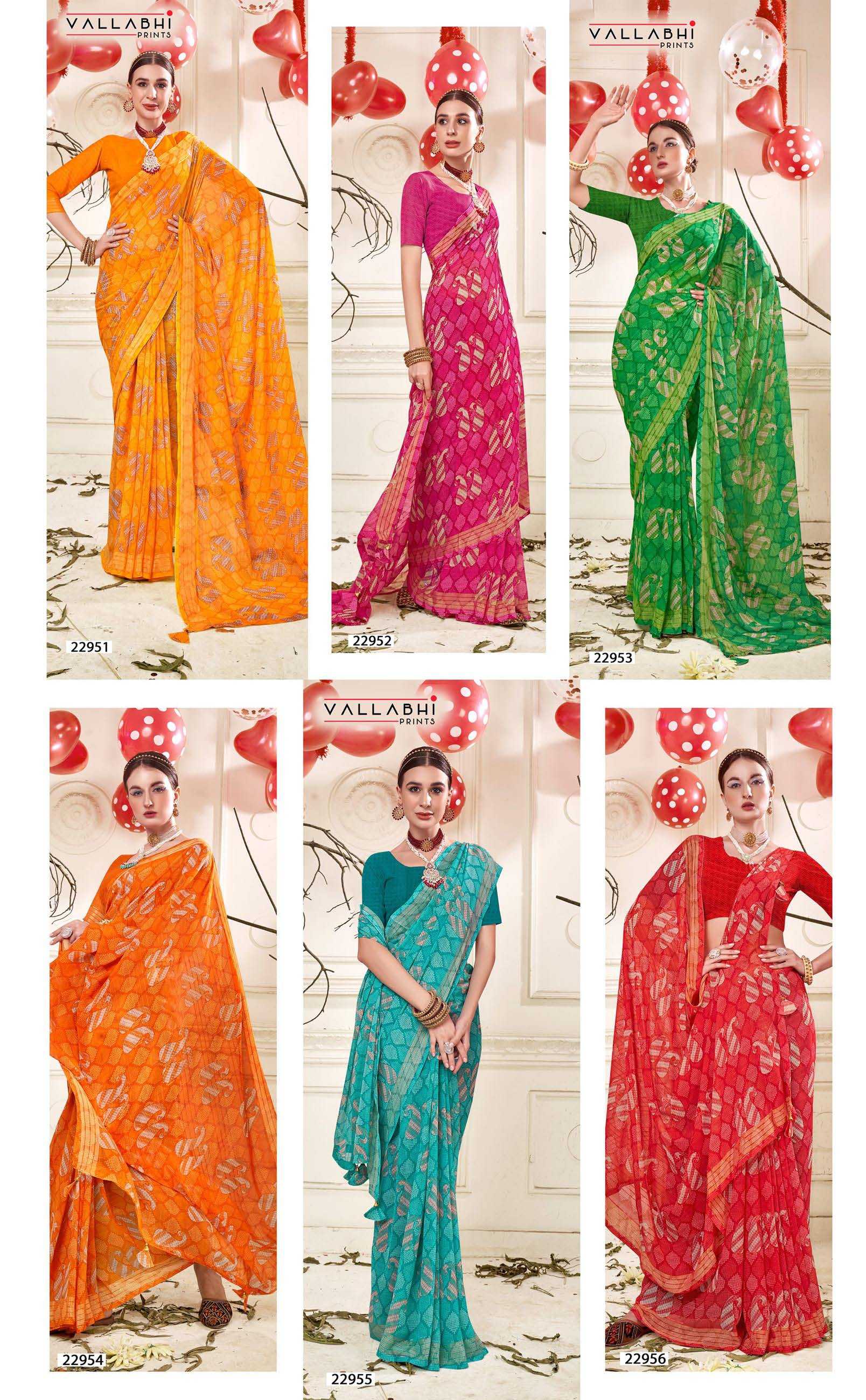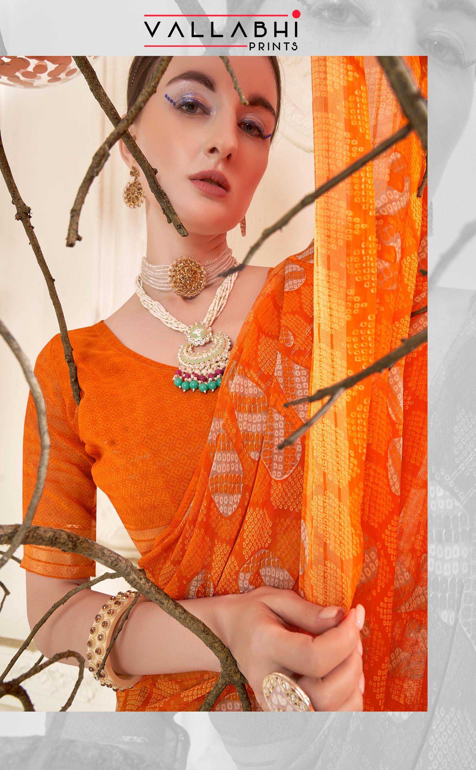Looking for vallabhi prints regina vol 5 stylish look georgette saree wholesaler & exports Full Catalouge at Best Price? Buy Now vallabhi prints regina vol 5 stylish look georgette saree wholesaler & exports at Wholesale Rate of Rs 4140 with Total 6 Pcs from authroized dealer and supplier of Vallabhi Prints Brand. Cost of Each piece is just only Rs 690 which is very low and affordable price to resale the product in your retail store. rrgandhi is Surat based Wholesale Supplier & Dealer of Vallabhi Prints Brand. Click on Brand name to Know more about Brand's products.