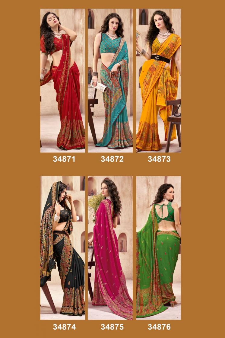 Looking for VALLABHI PRINTS SAJANIYA VOL 4 CASUAL MOSS GEORGETTE SAREES Full Catalouge at Best Price? Buy Now VALLABHI PRINTS SAJANIYA VOL 4 CASUAL MOSS GEORGETTE SAREES at Wholesale Rate of Rs 4890 with Total 6 Pcs from authroized dealer and supplier of Vallabhi Prints Brand. Cost of Each piece is just only Rs 815 which is very low and affordable price to resale the product in your retail store. rrgandhi is Surat based Wholesale Supplier & Dealer of Vallabhi Prints Brand. Click on Brand name to Know more about Brand's products.