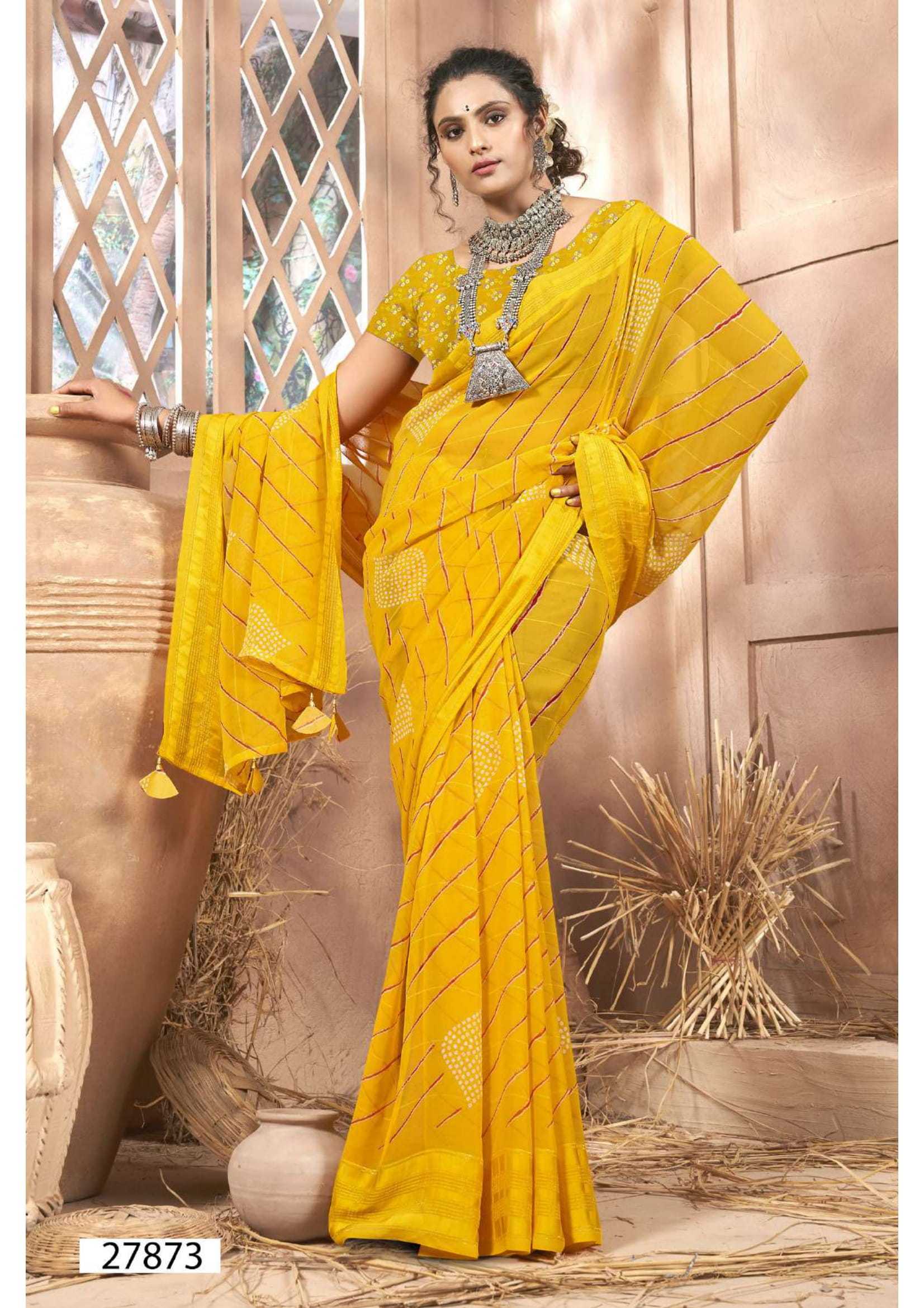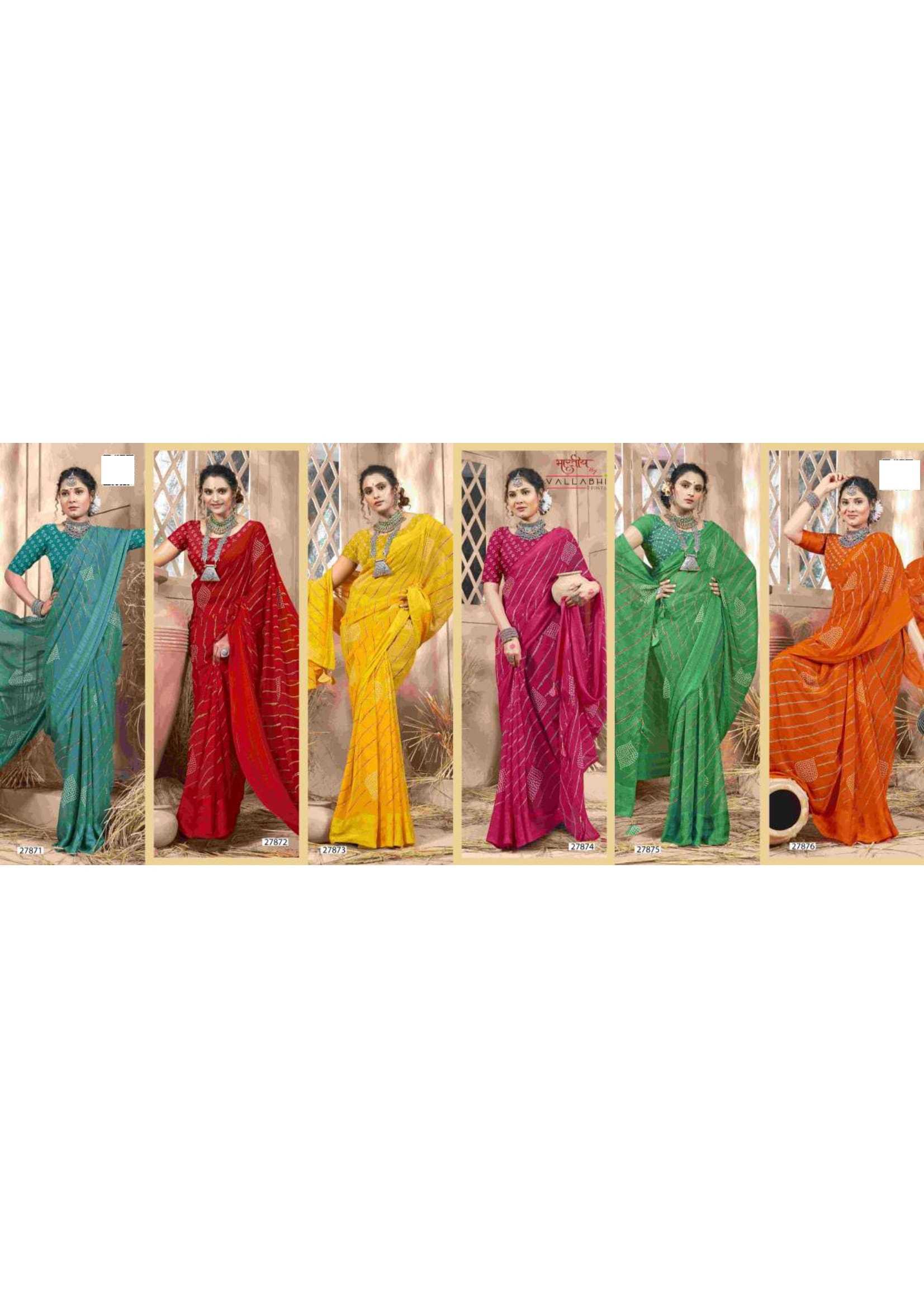 Looking for vallabhi prints sampreeti vol 7 new trendy georgette saree with blouse Full Catalouge at Best Price? Buy Now vallabhi prints sampreeti vol 7 new trendy georgette saree with blouse at Wholesale Rate of Rs 3960 with Total 6 Pcs from authroized dealer and supplier of Vallabhi Prints Brand. Cost of Each piece is just only Rs 660 which is very low and affordable price to resale the product in your retail store. rrgandhi is Surat based Wholesale Supplier & Dealer of Vallabhi Prints Brand. Click on Brand name to Know more about Brand's products.